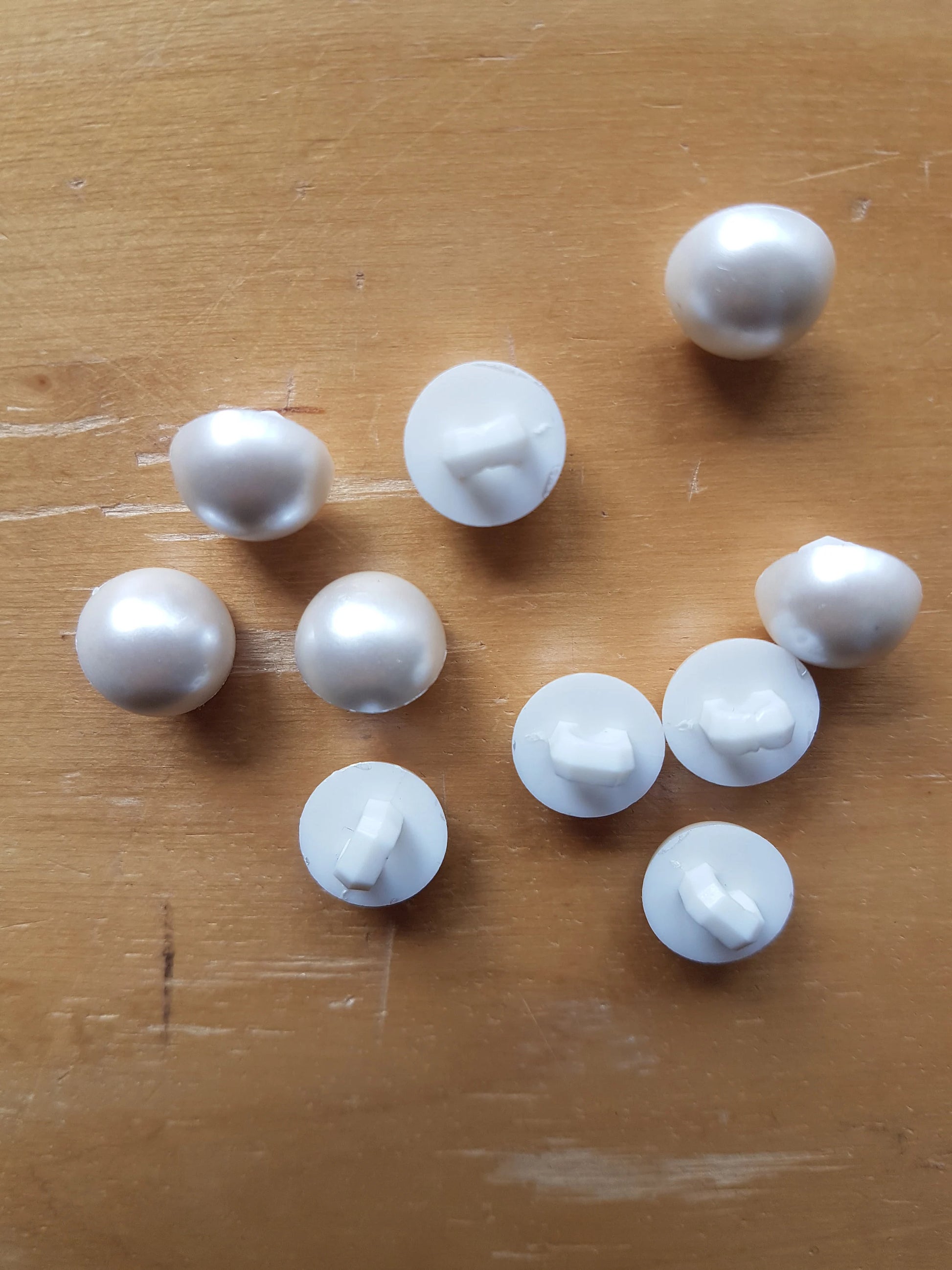Up for sale here are 10 domed plastic pearled ivory bridal buttons measuring 1cm.