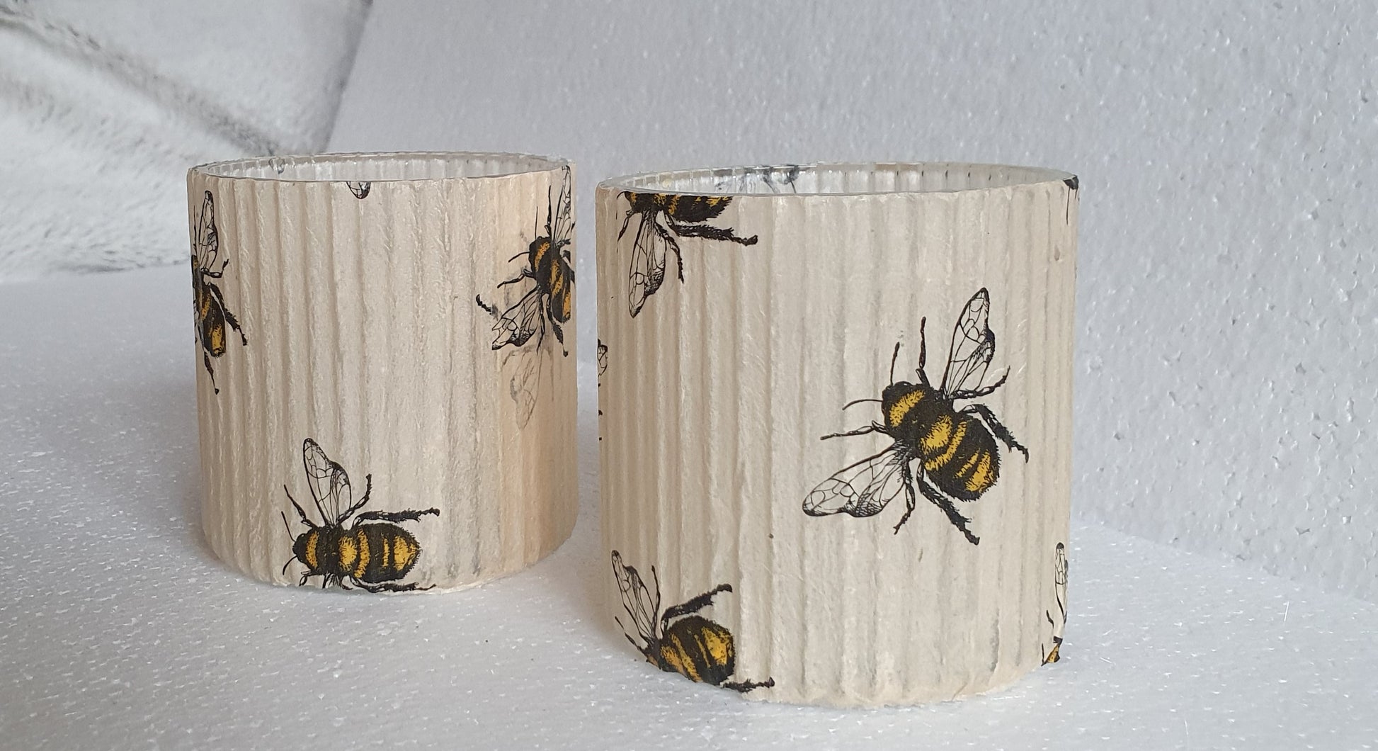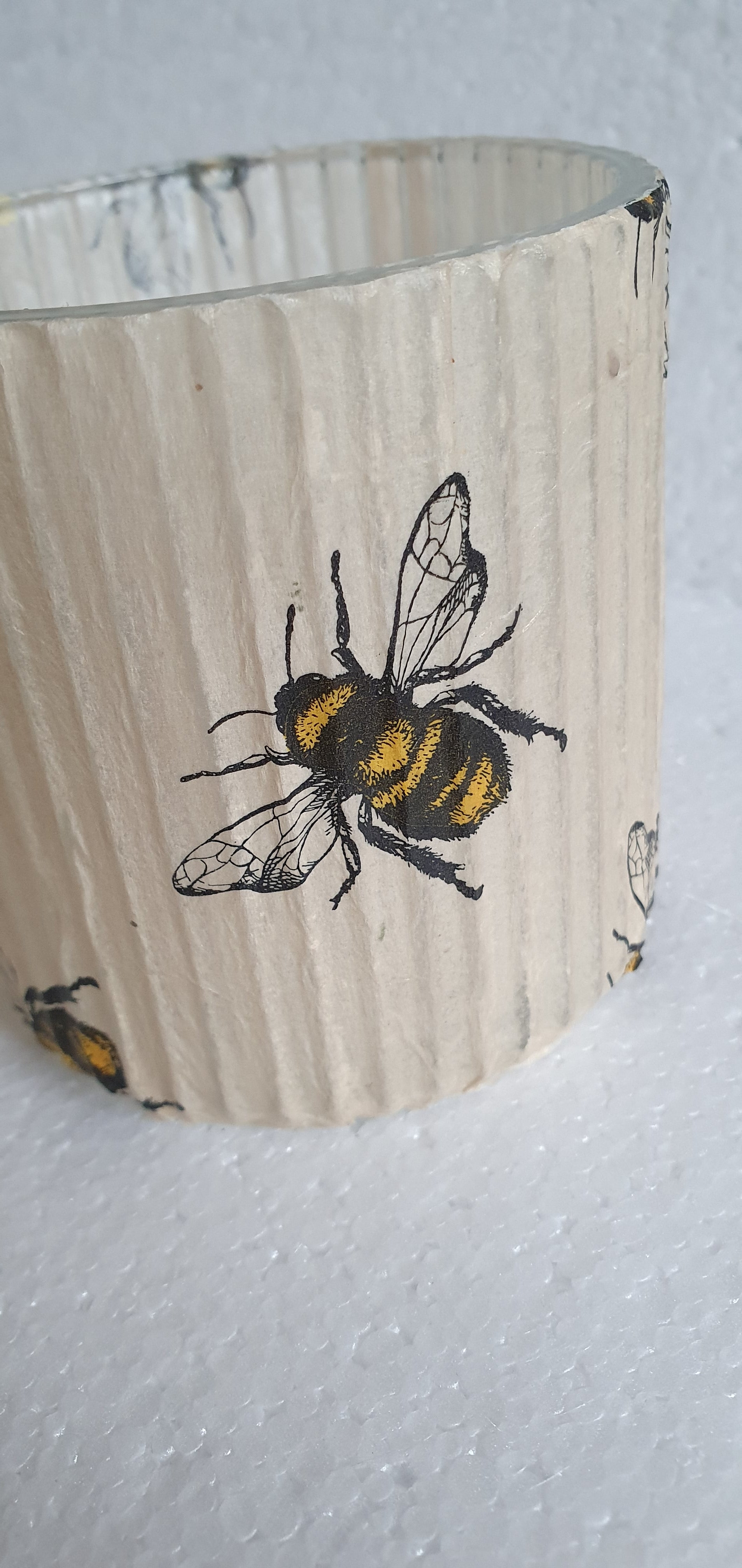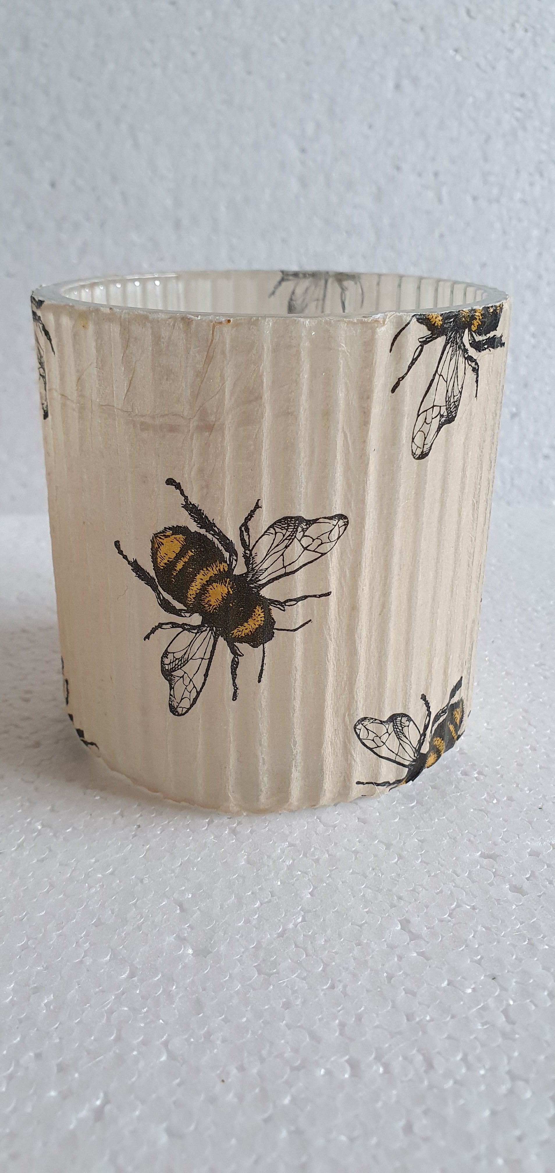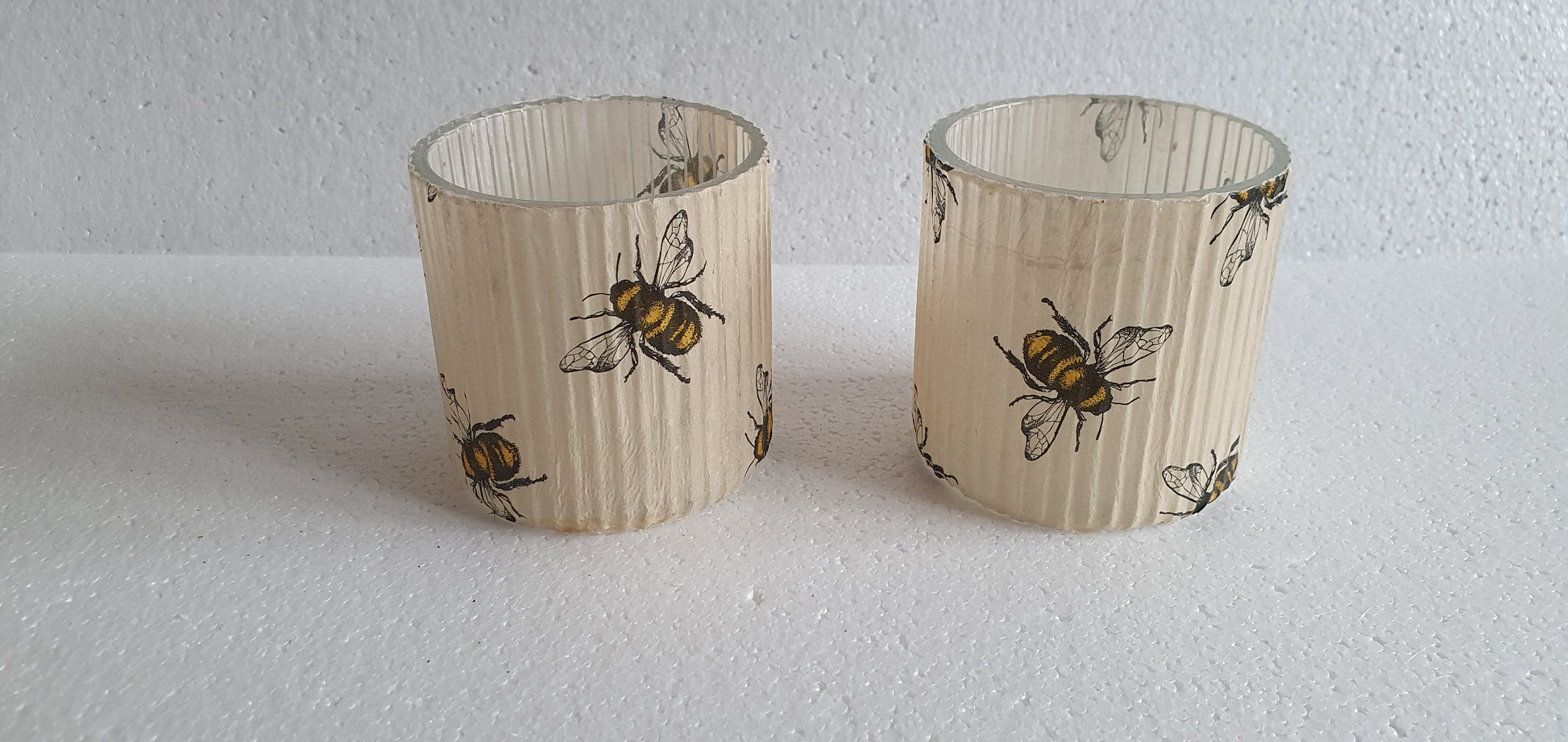 2 Bumble Bee Beige Hand Decorated Candle Tea Light Holders Home Decor Gift