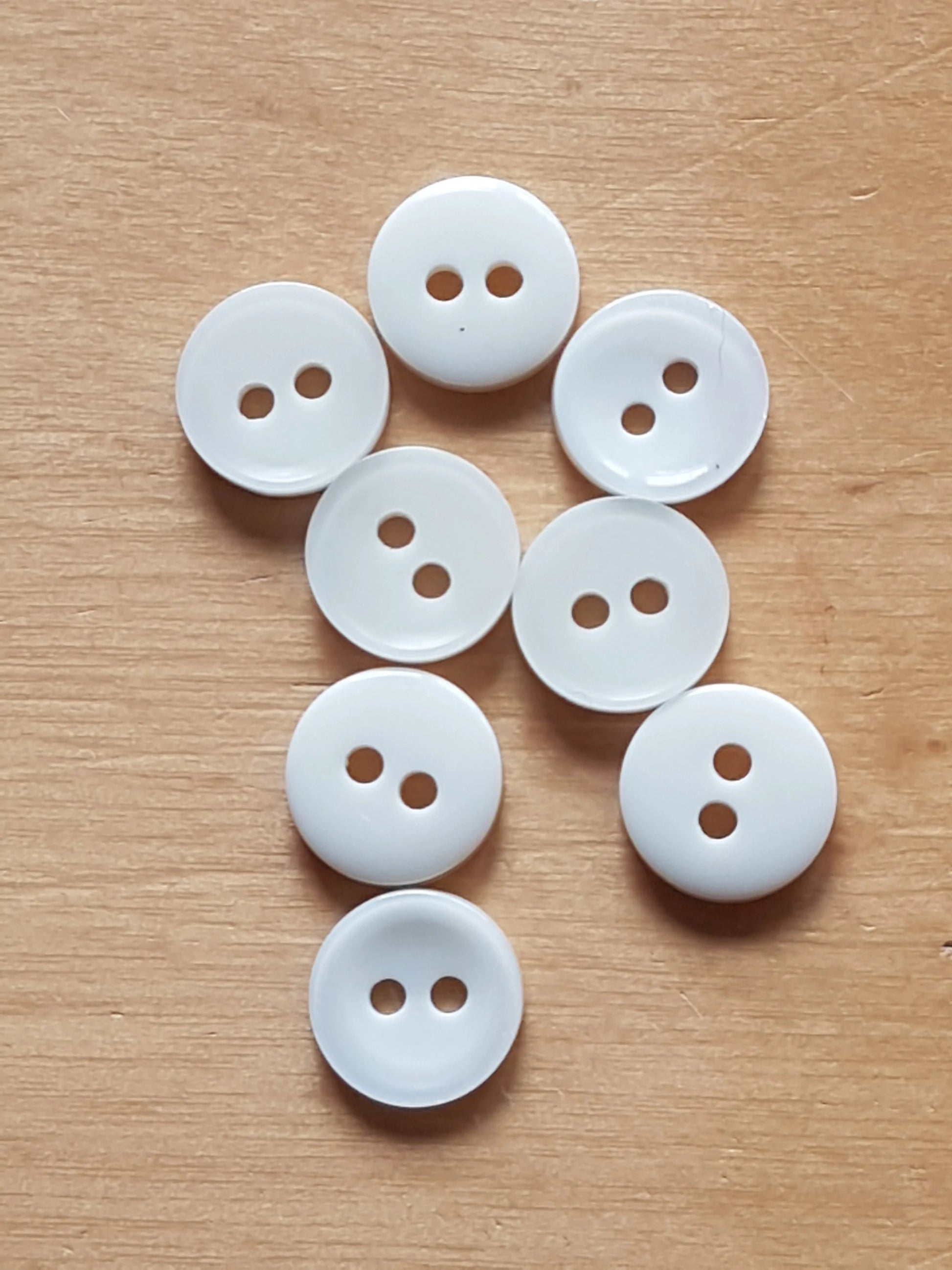 Up for sale here are 8 small round plastic cream buttons measuring 1cm.