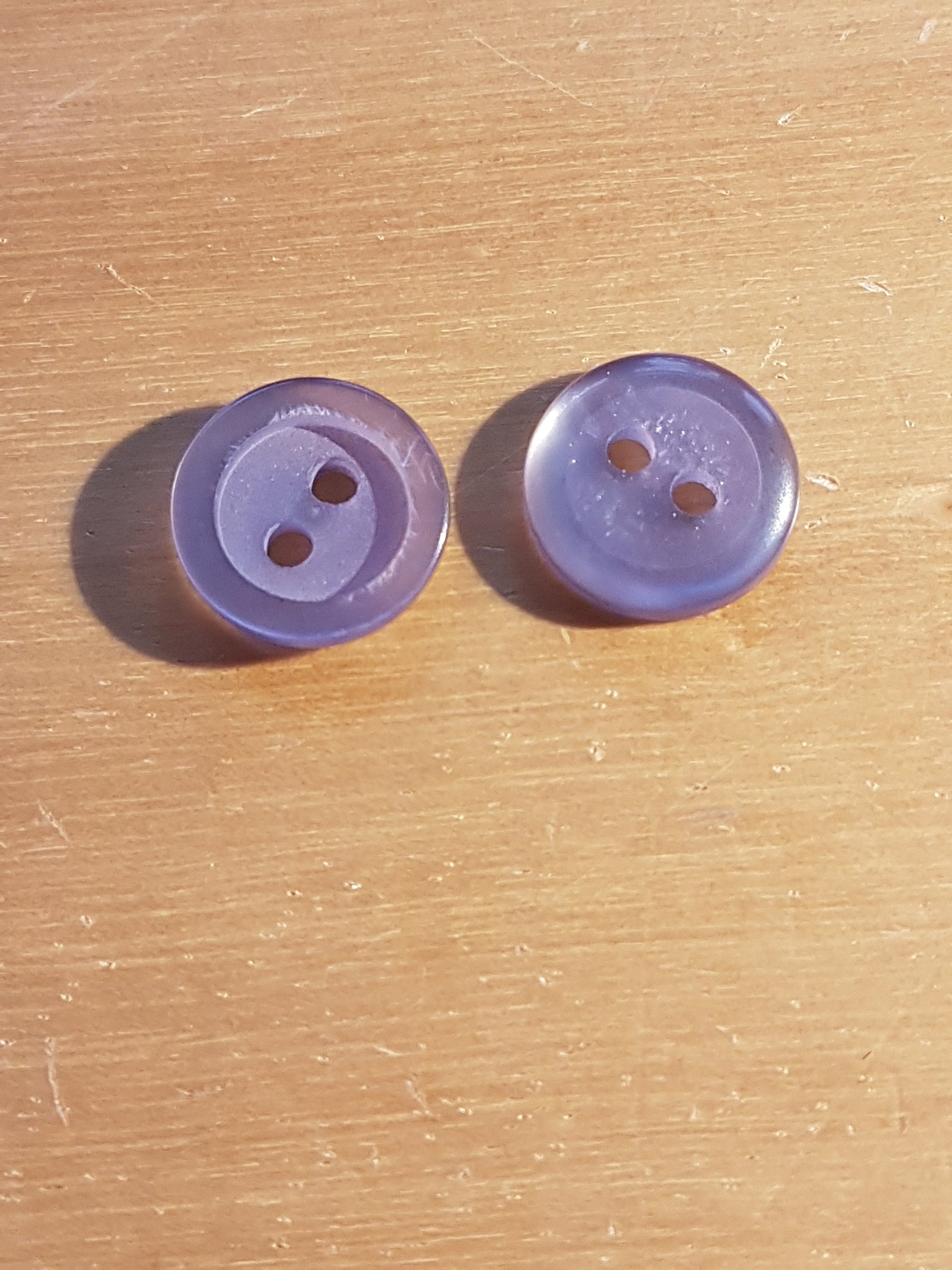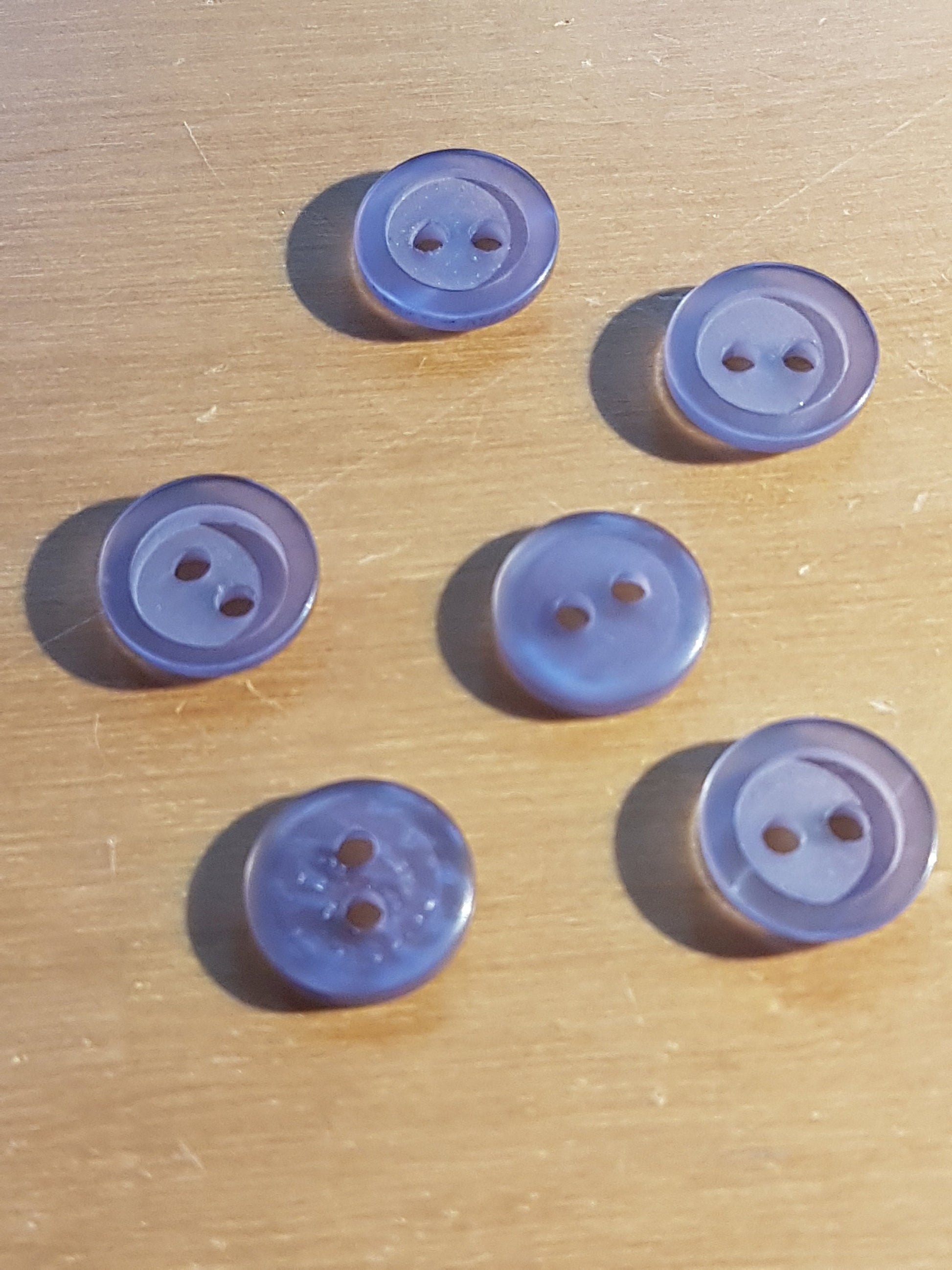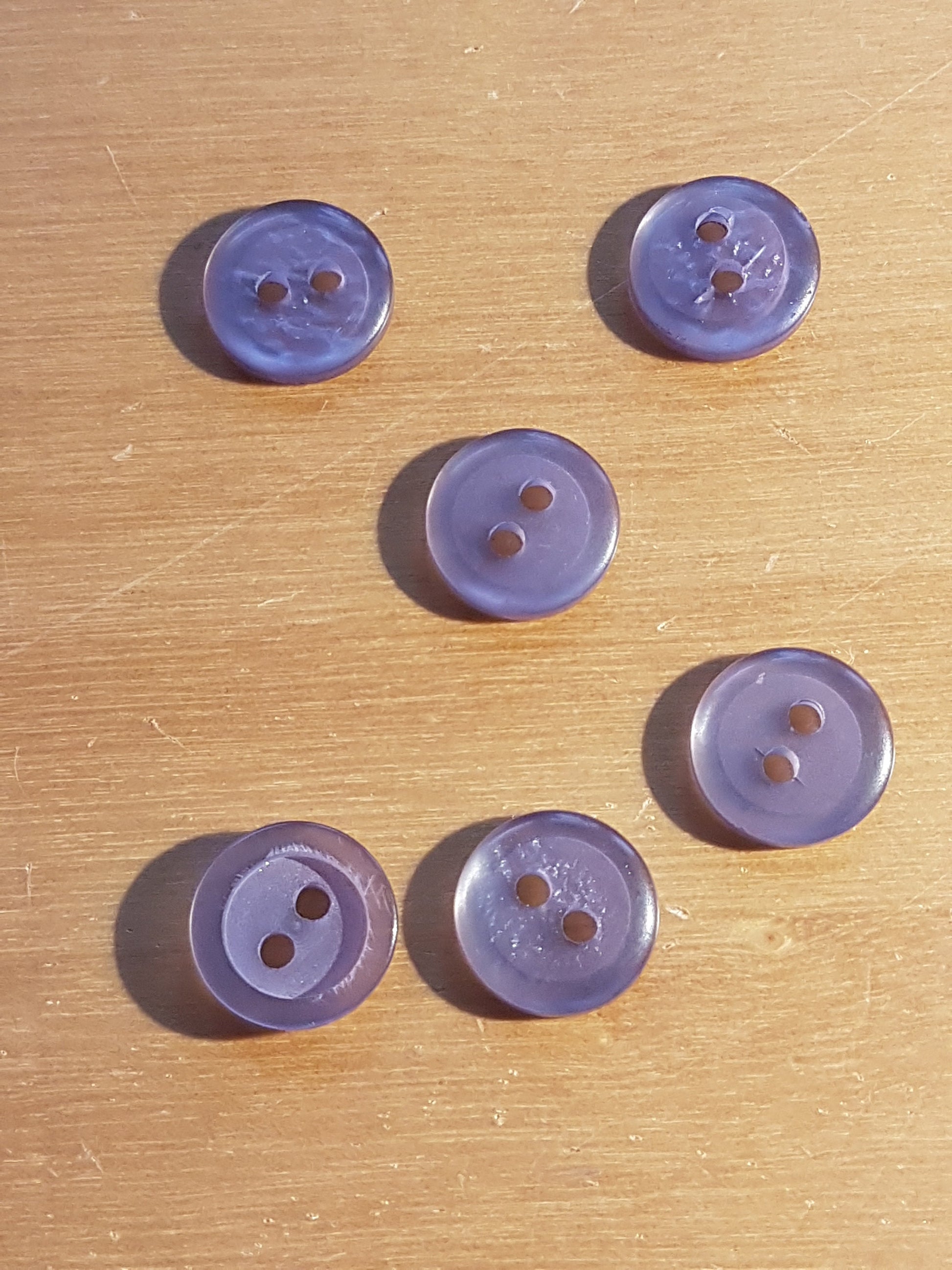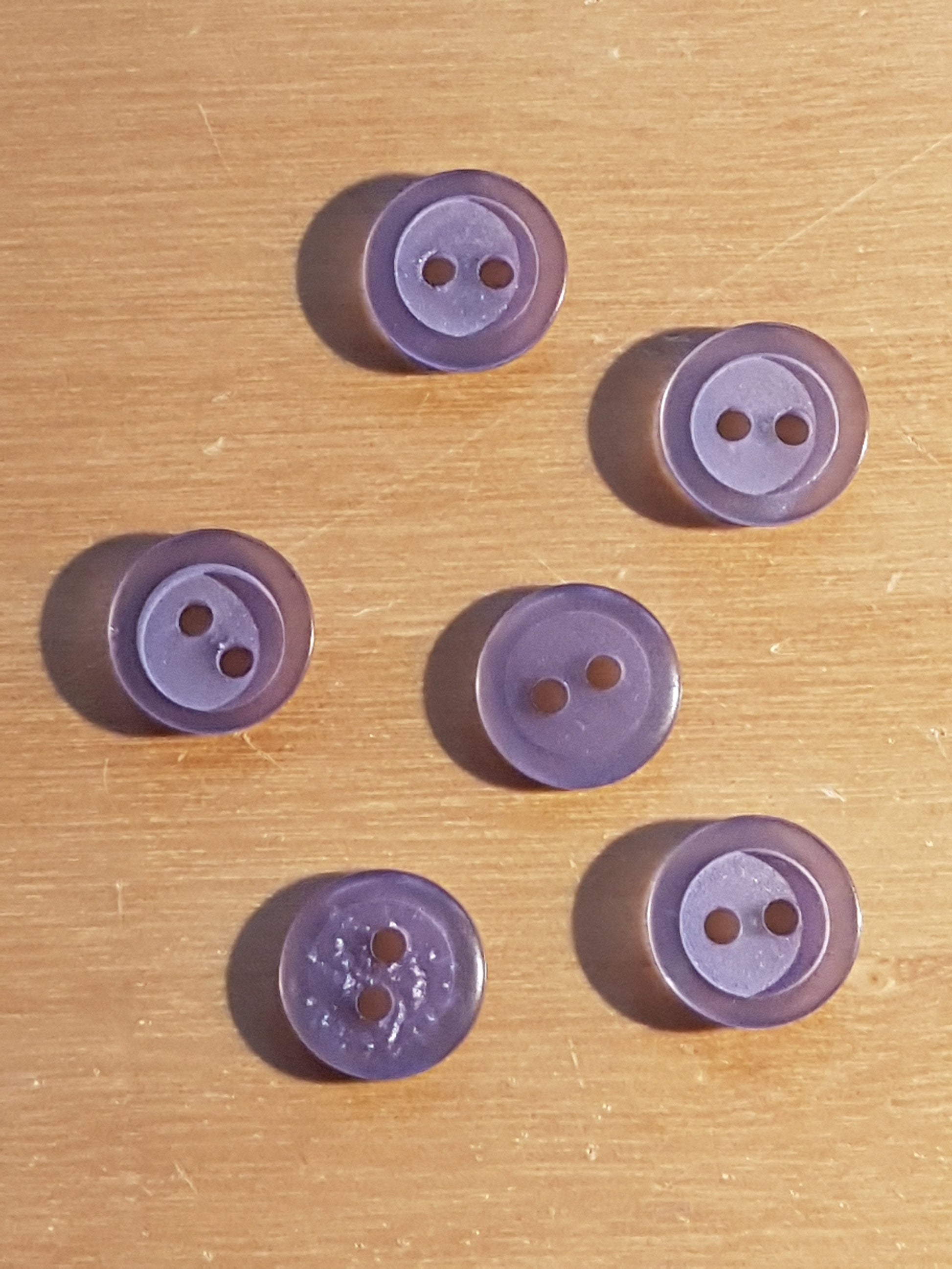 Up for sale here are 6 small round plastic lilac / lavender buttons measuring 1cm.