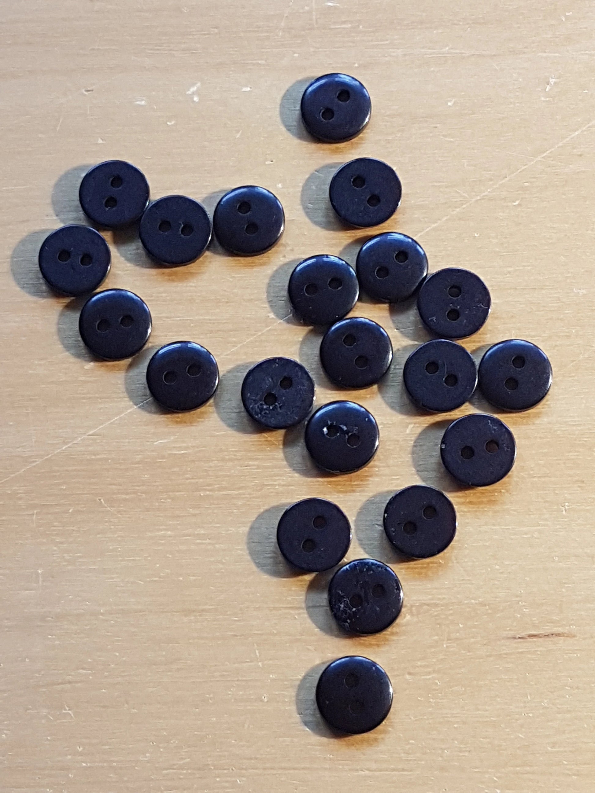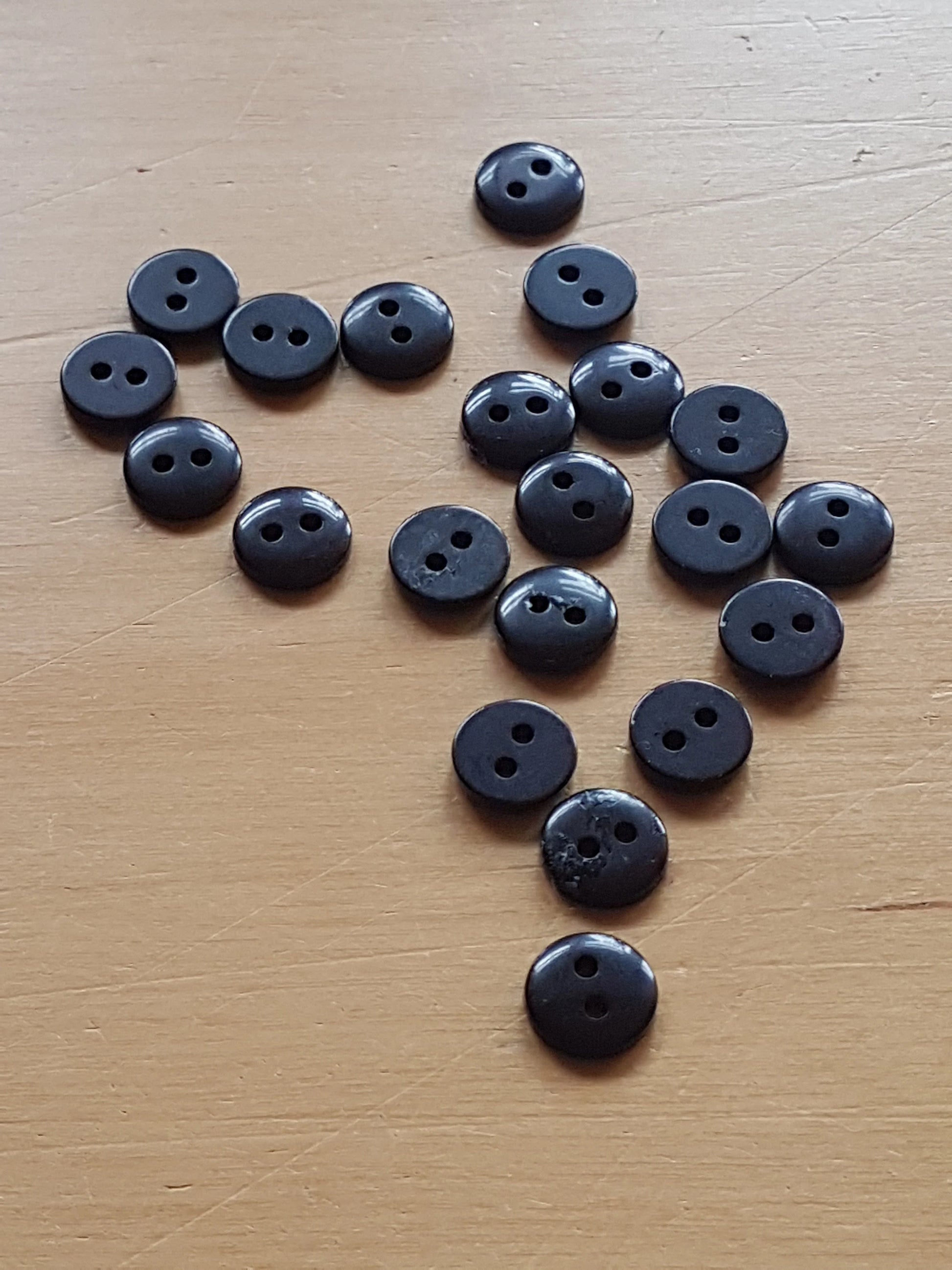 Up for sale here are 7 small round plastic black buttons measuring 0.75cm.