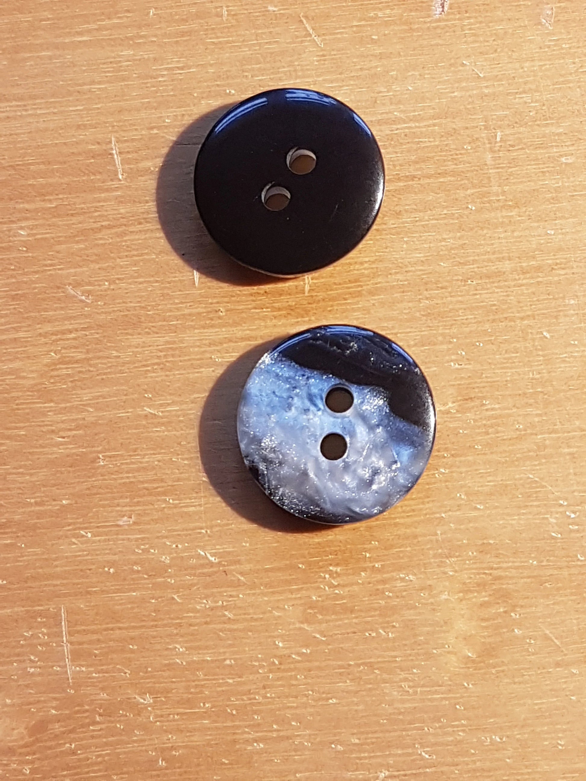 Up for sale here are 8 small round plastic grey/pearl/black buttons measuring 1.5cm.