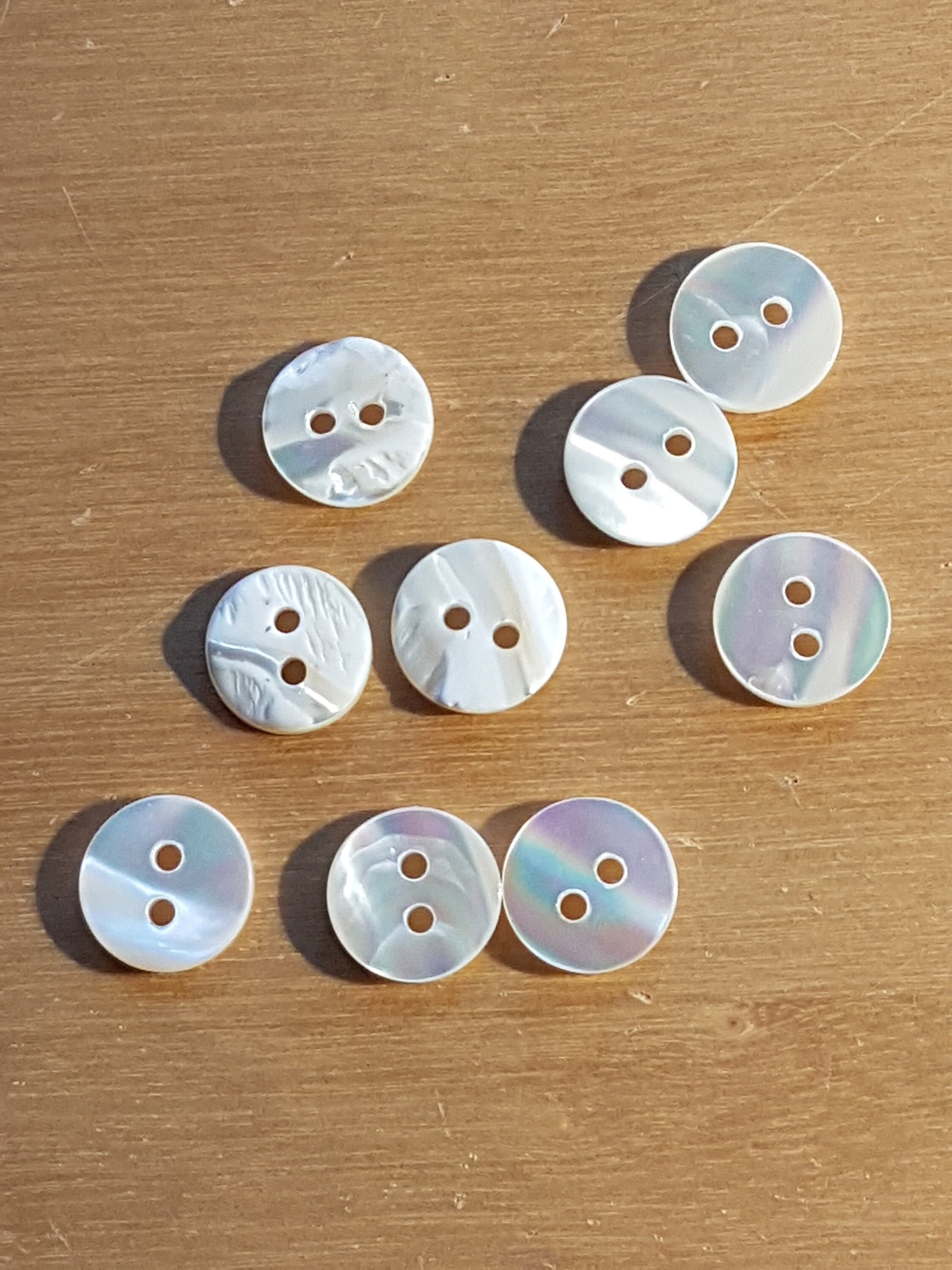Up for sale here are 9 small round plastic pearl buttons measuring 1cm.