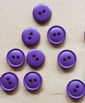 Up for sale here are 9 small round plastic purple buttons measuring 1.25cm.