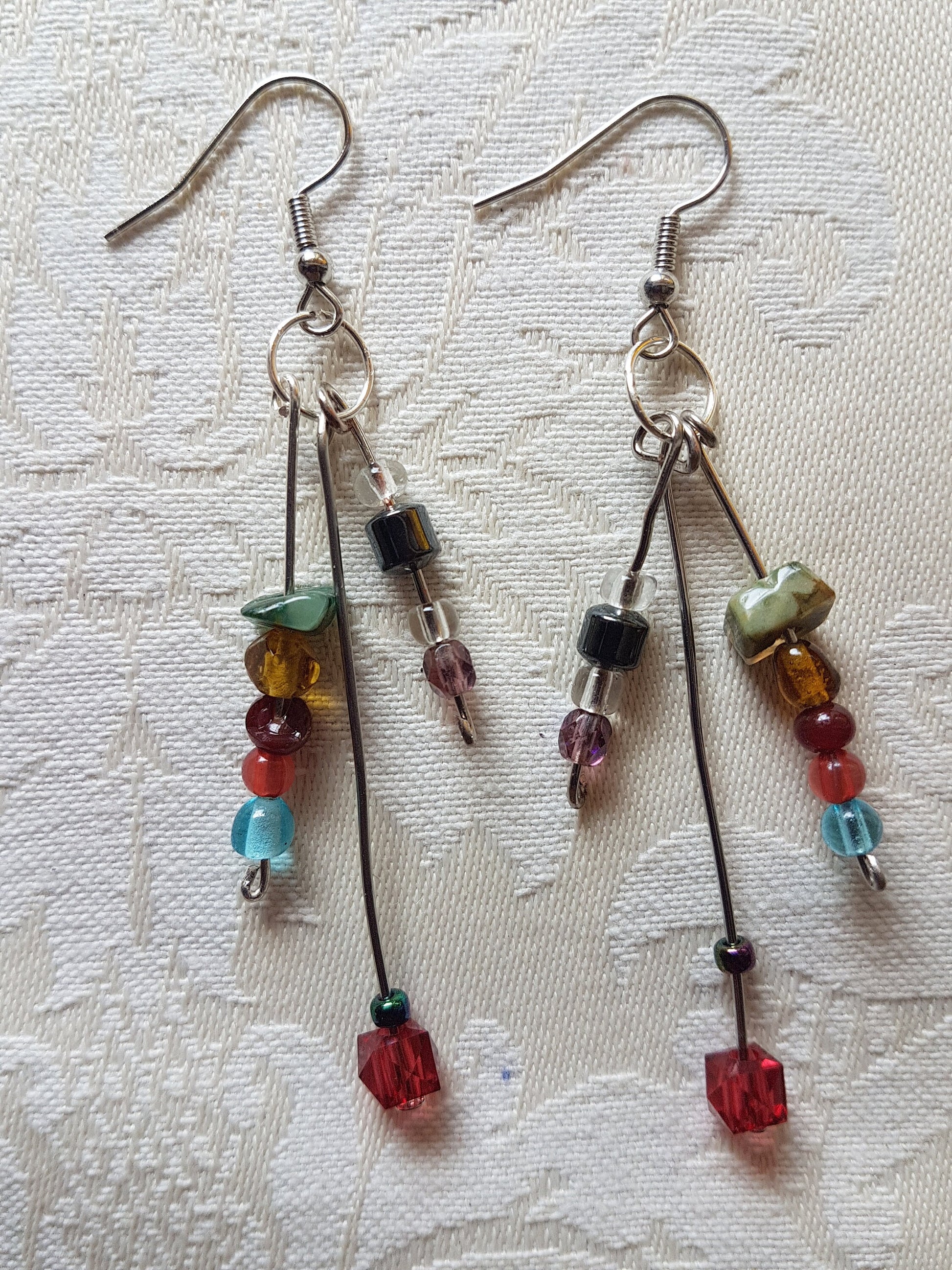 Each design has been made from rescued, unwanted and broken jewellery parts, vintage haberdashery and other findings to create a unique gift for friends, partners and make attractive accessories to any wardrobe. Each pair is a unique one off and cannot be repeated.