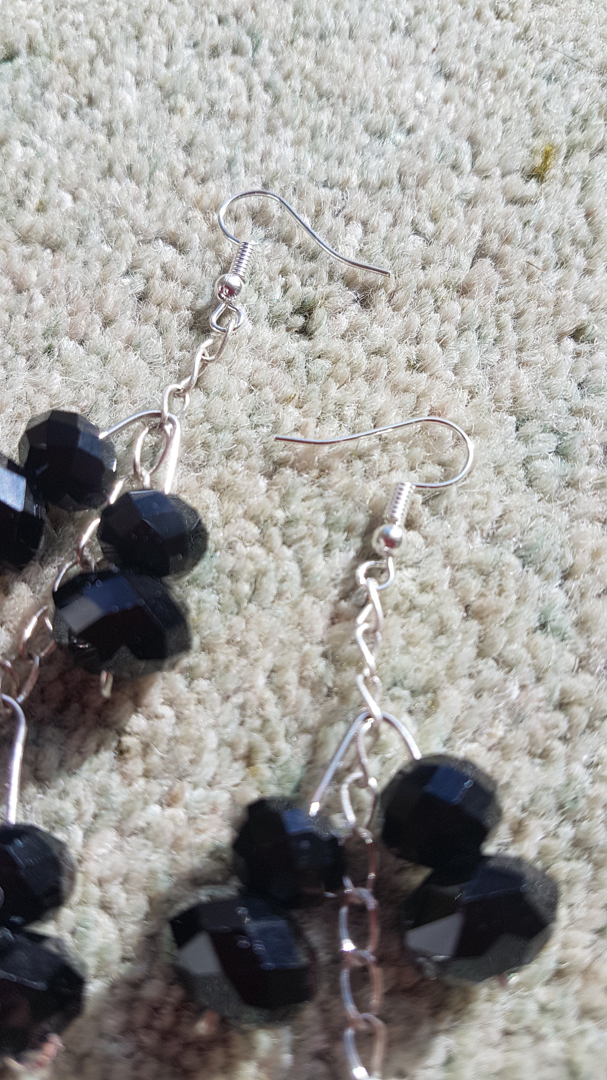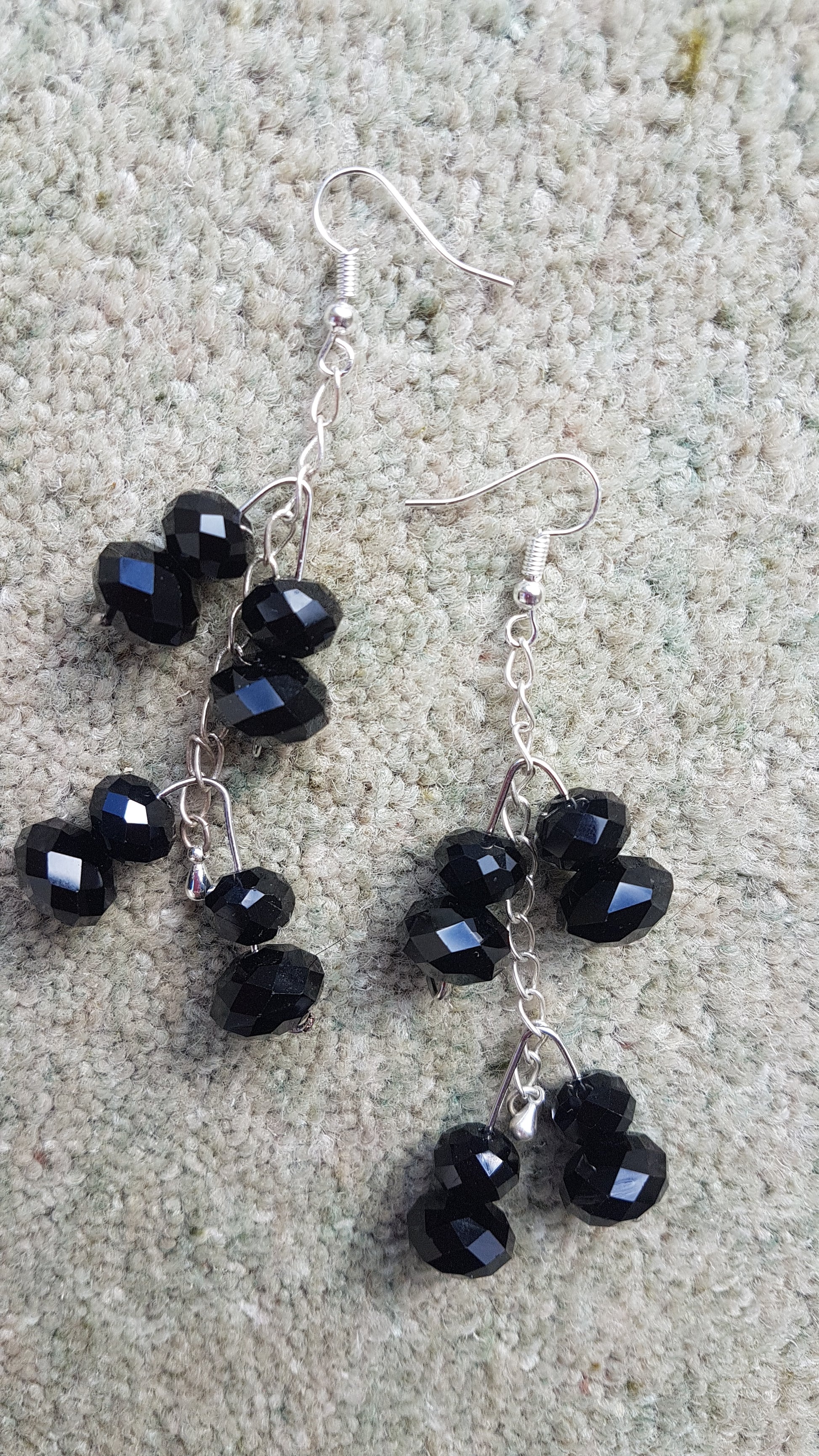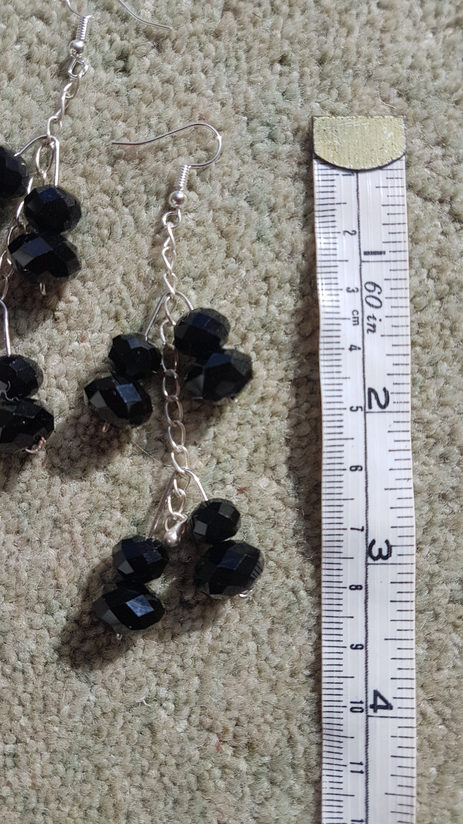 This pair have a length approx 3.5 inches and comprise a silver effect earring with black beads.
