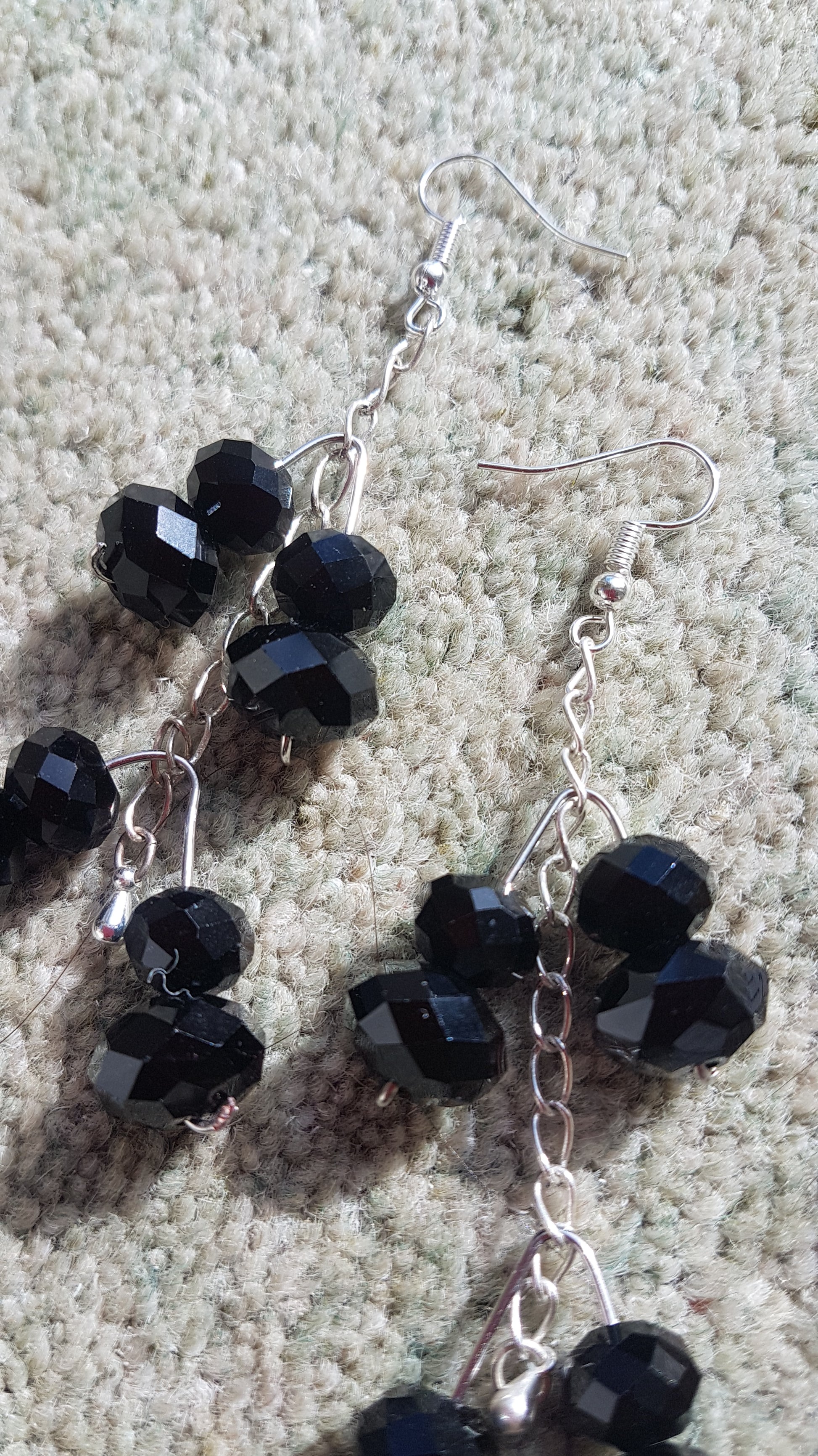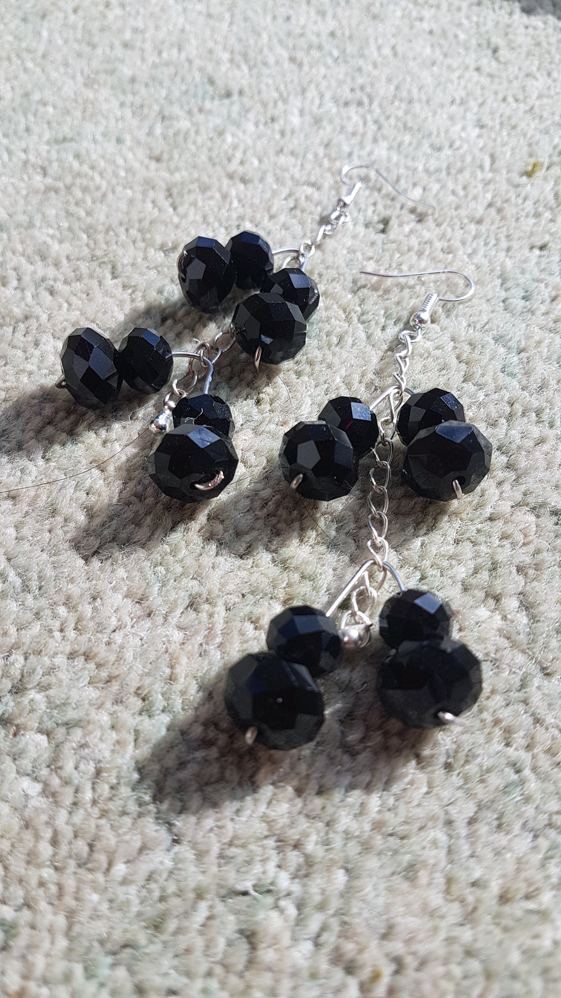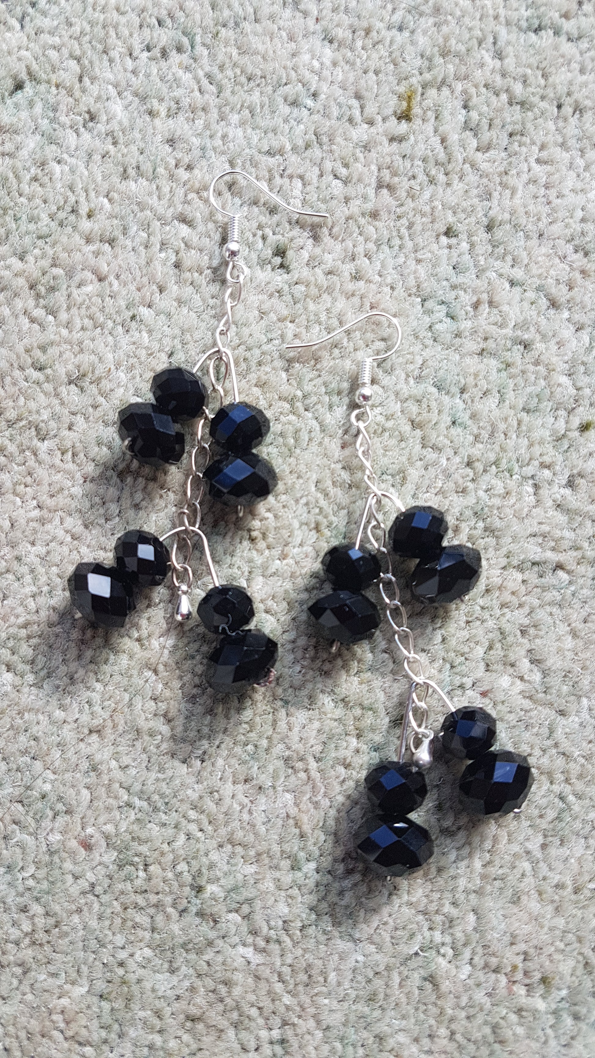 This pair have a length approx 3.5 inches and comprise a silver effect earring with black beads.