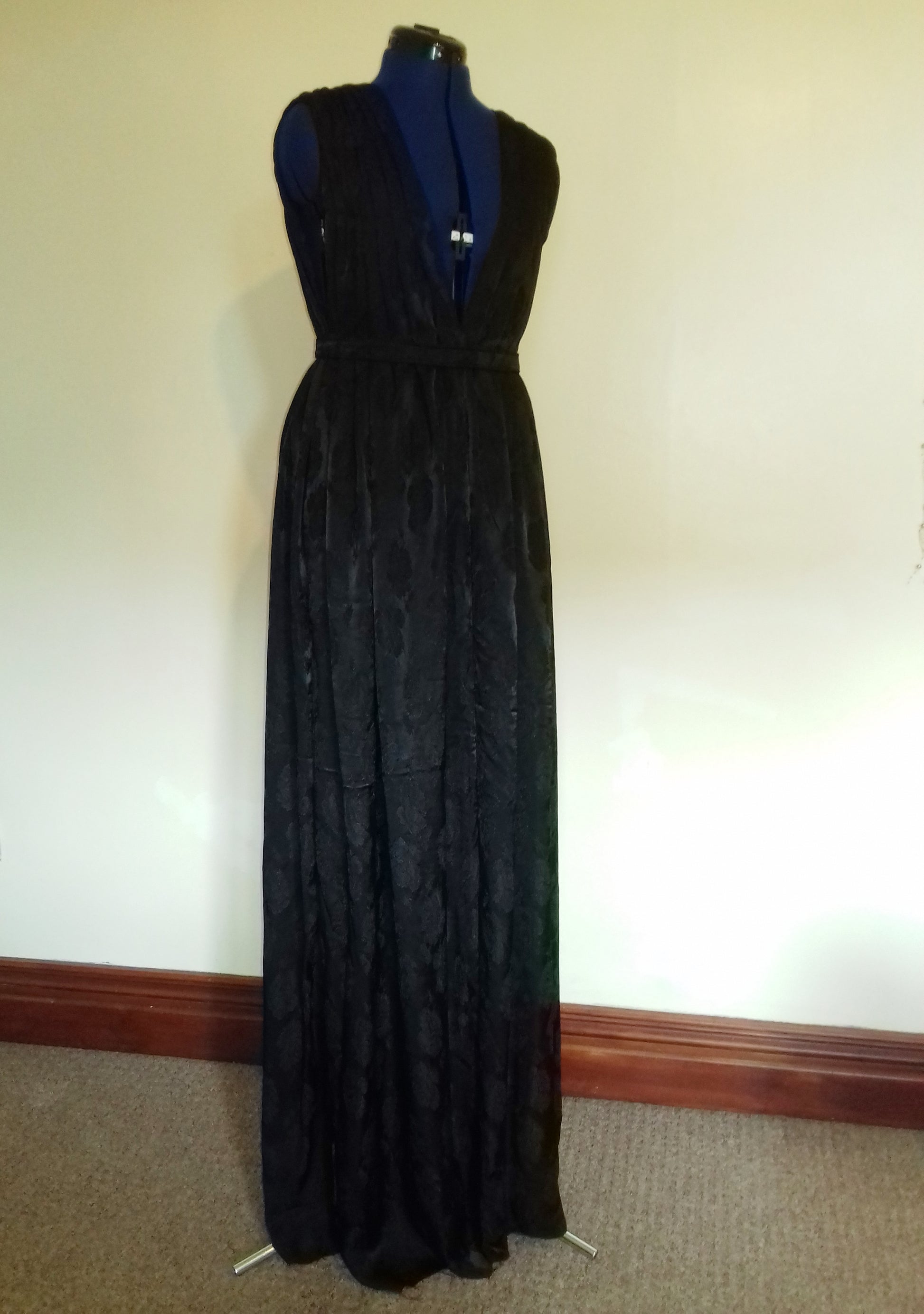 The design of the dress follows my classic plunge maxi dress design but is made in deep pleats from the shoulder to the waist that are hand-stitched into place.