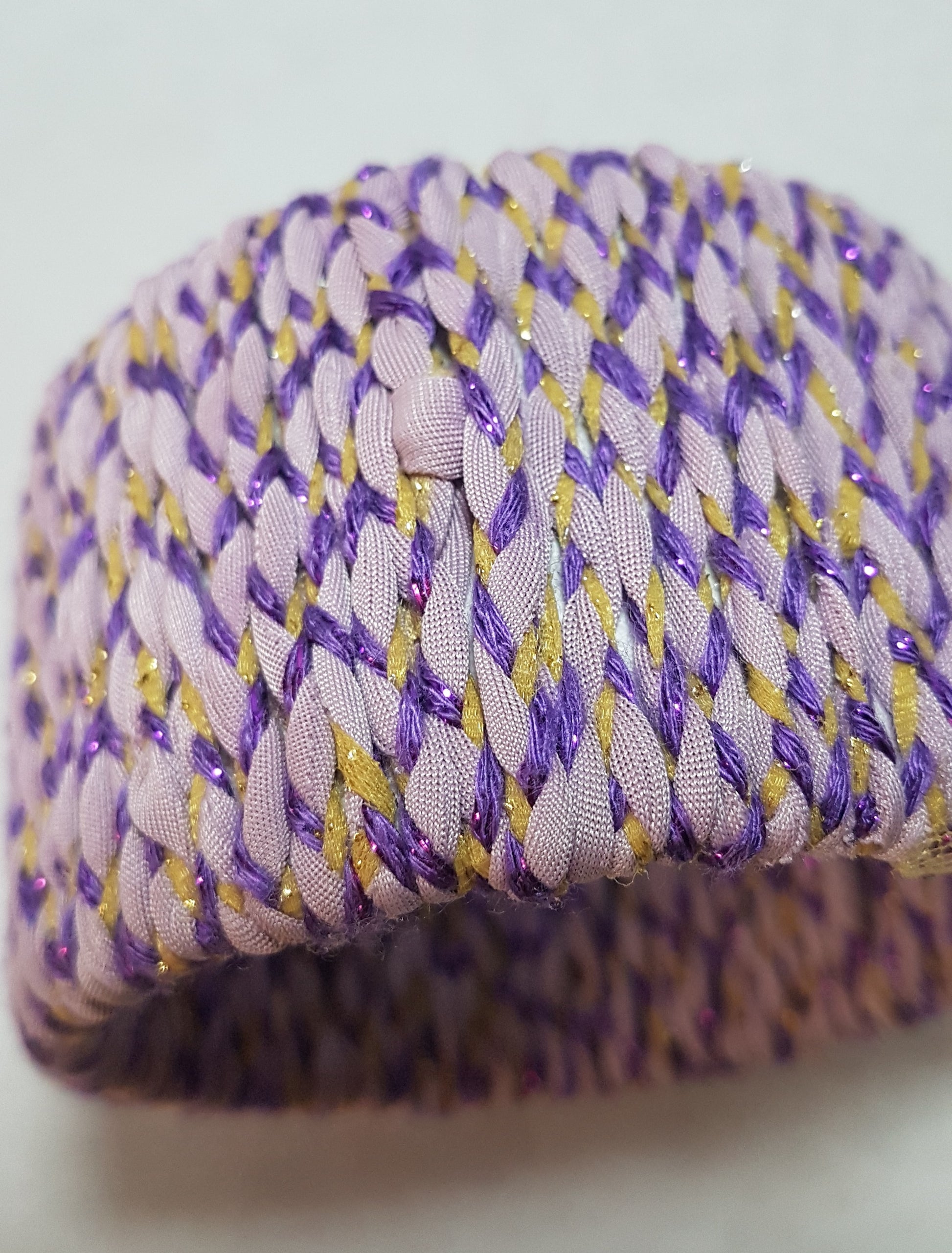 Dusky Pink Purple Yellow Braided Chunky Bangle LARGE