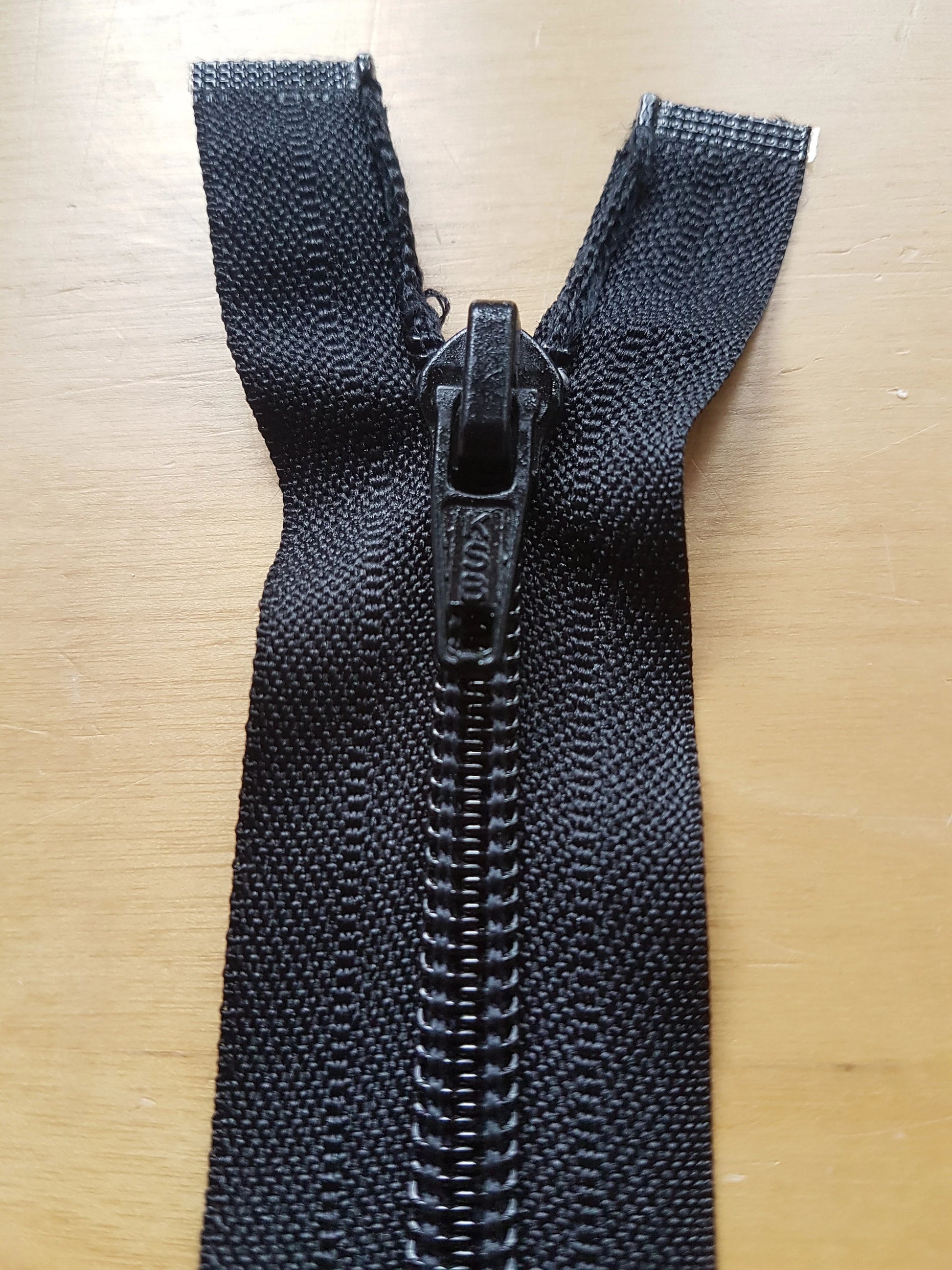 This zip is pre used but in perfect usable condition. See photos for details. This one is a black colour, 17 inches (zip part only), with nylon teeth and ends and metal zipper.