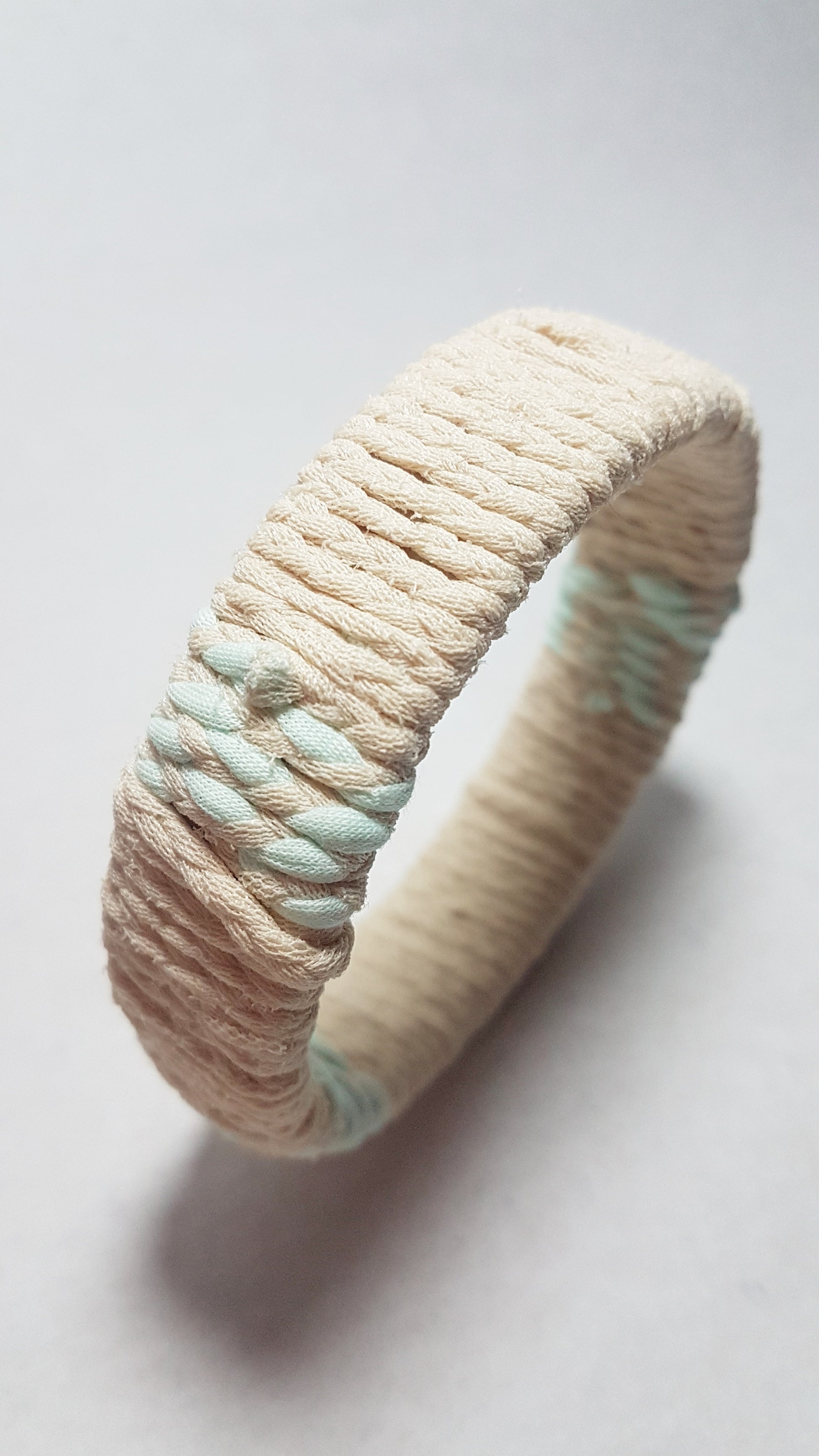 Cream Pastel Green Braided Chunky Bangle EXTRA SMALL
