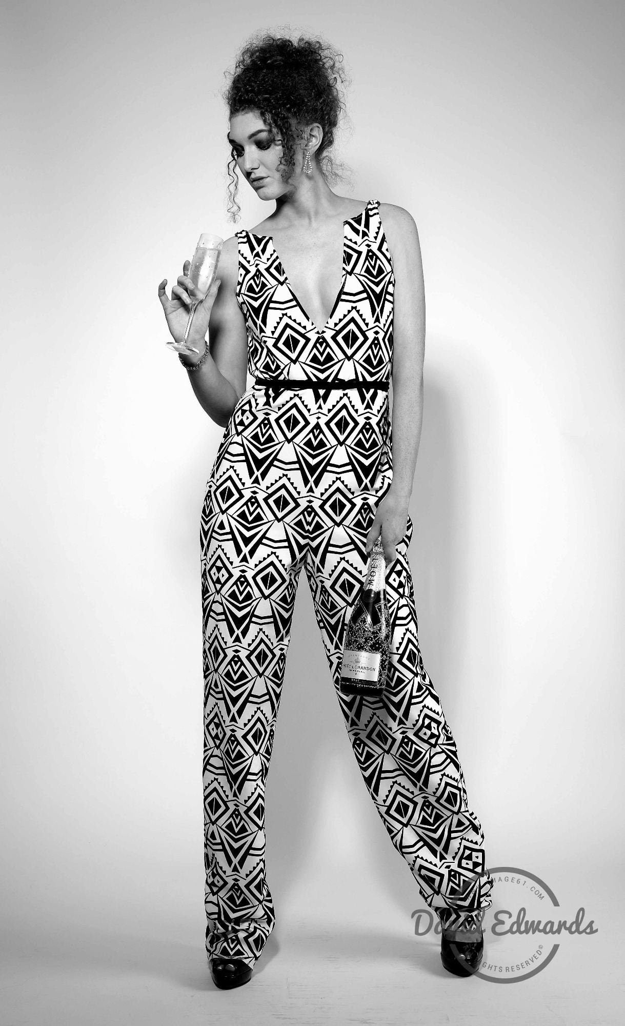 Black White Geometric Pattern Jumpsuit UK8/UK10