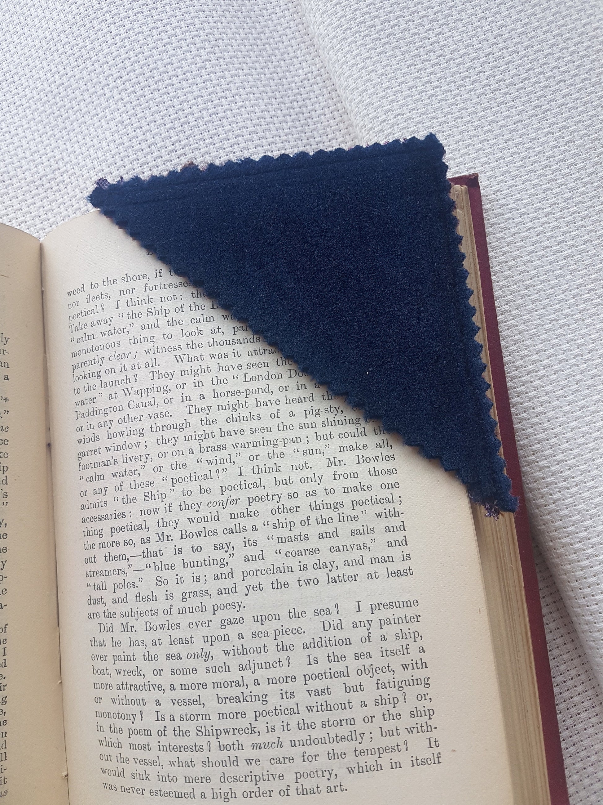Up for sale here is a single handmade bookmark. It is made from unwanted, deadstock, upcycled soft fabrics. Both sides are thick velvet. One side is a dark blue/navy, the other is aubergine/dark purple. The perfect stocking filler for the book lover in your life or as a personal touch to a book you are already gifting to someone.