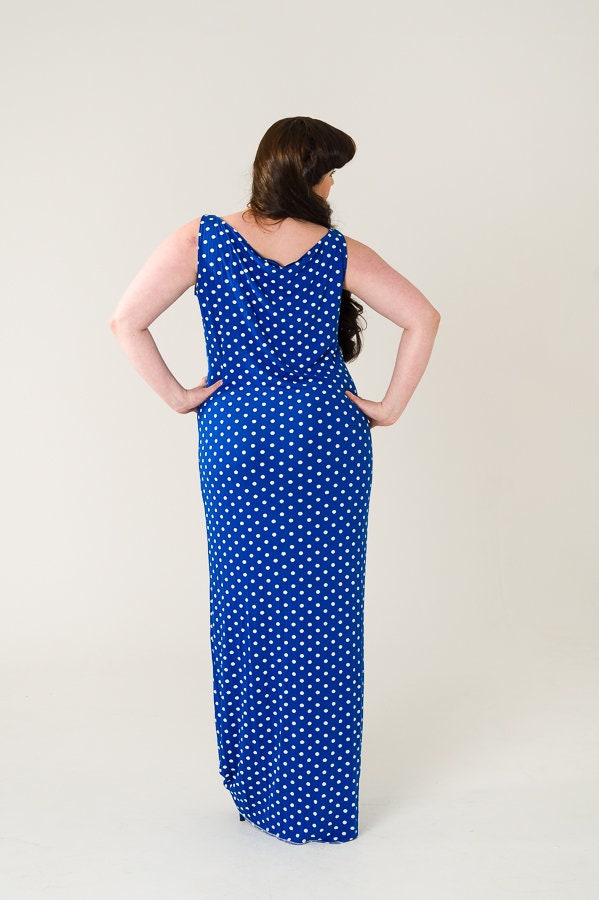 This fabulous long column dress is perfect for those who want a nod towards vintage in a modern style. It comes with a matching belt and is perfect for so many occasions.