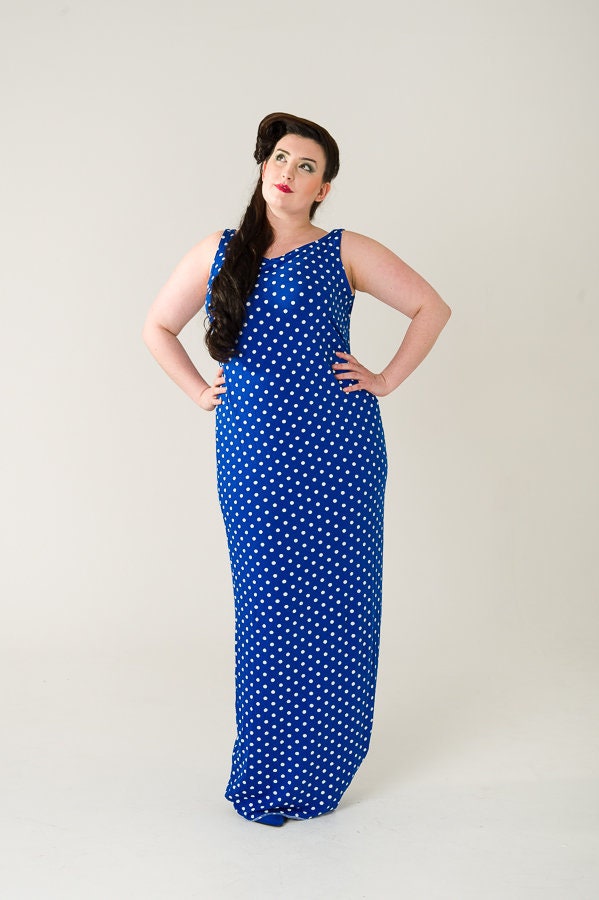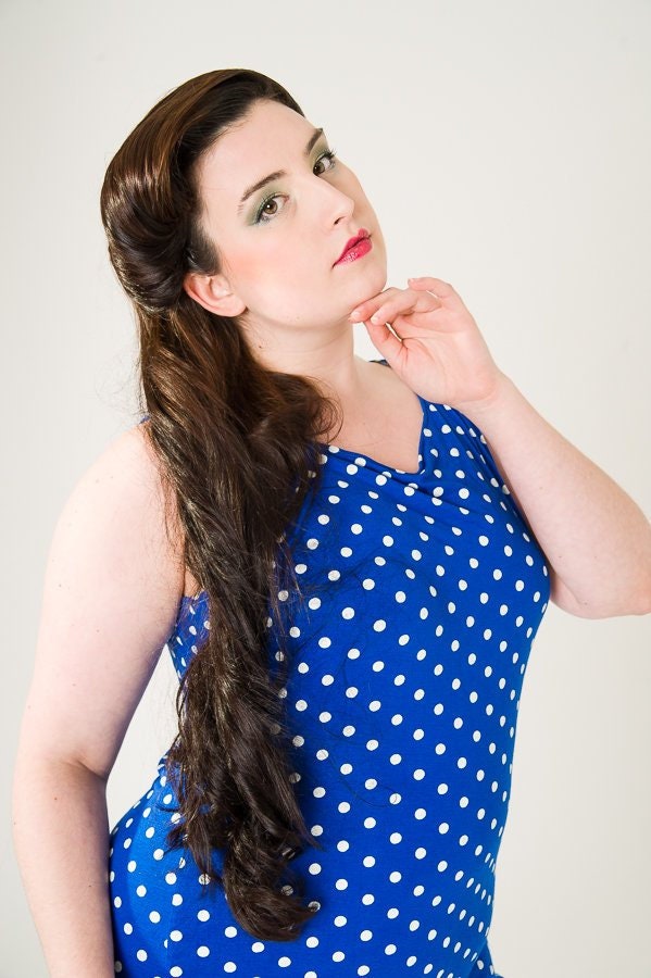 Blue Polka Dot Retro Jersey Dress Up To UK10