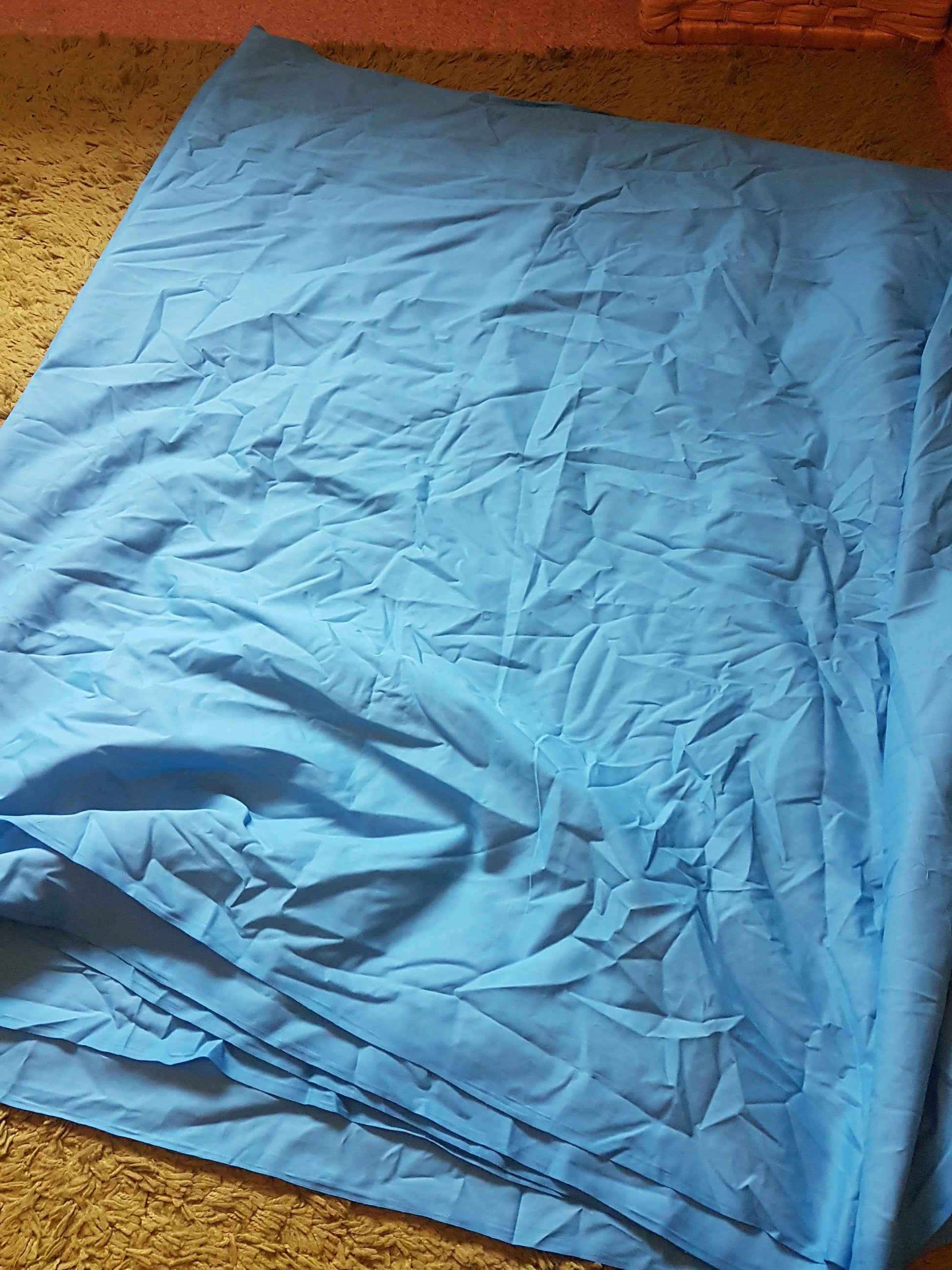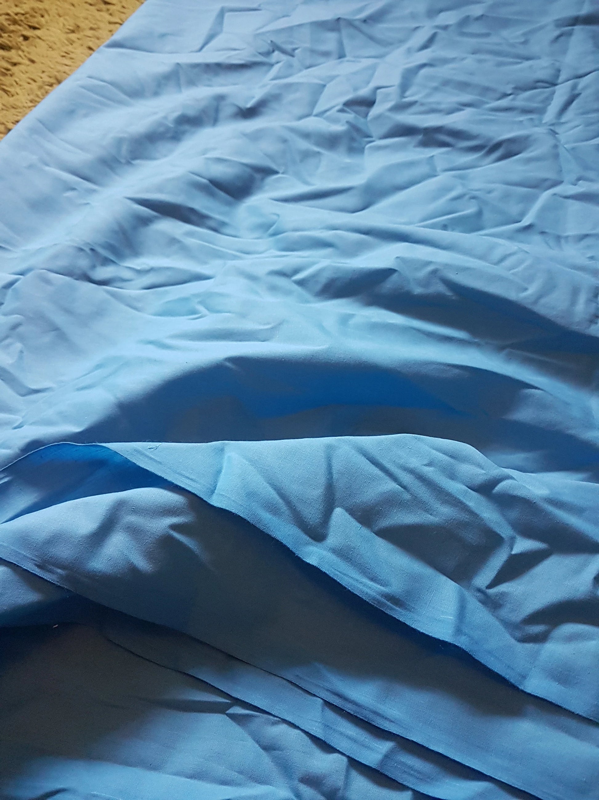 This is a cobalt blue broadcloth polyester/cotton blend, perfect for clothing or home decor projects. It is 112cm wide. Multiple lengths will be sent as one uncut length.
