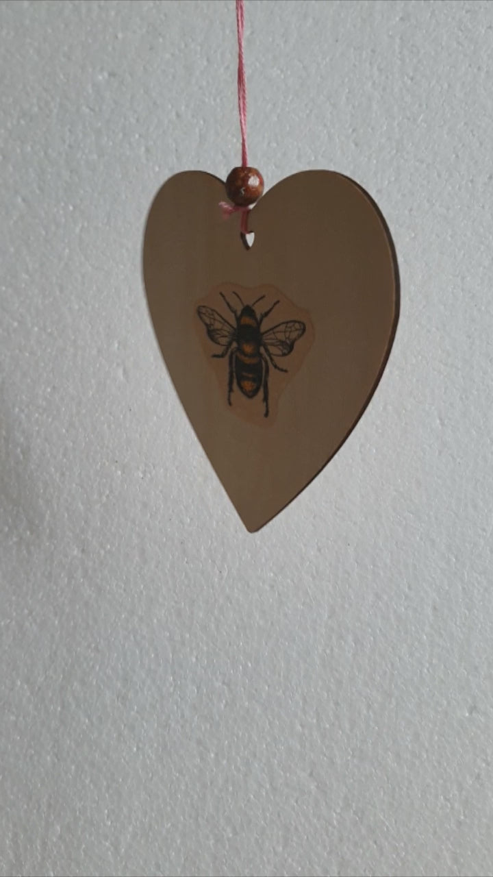 This window hanging is made from a wooden heart and has been hand decorated by me using decoupage in my studio using paper designs and then hung using embroidery thread and bead.