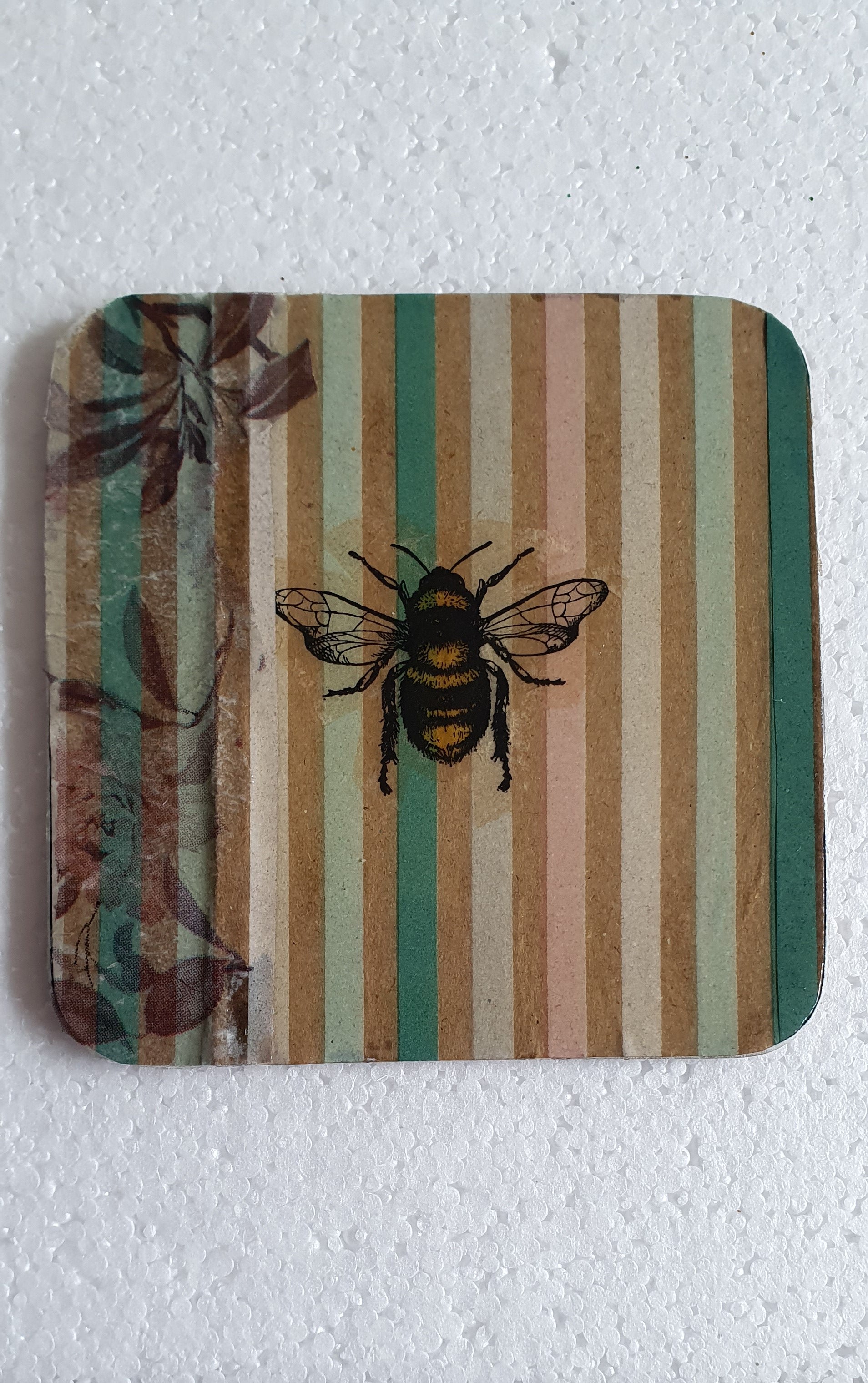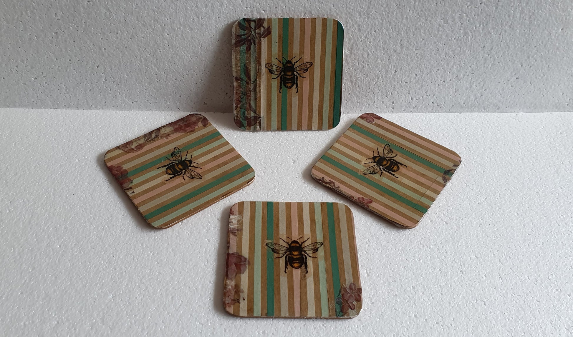 Decoupage Stripes Flowers and BumbleBee Coasters Set Of Four Home Decor Gift