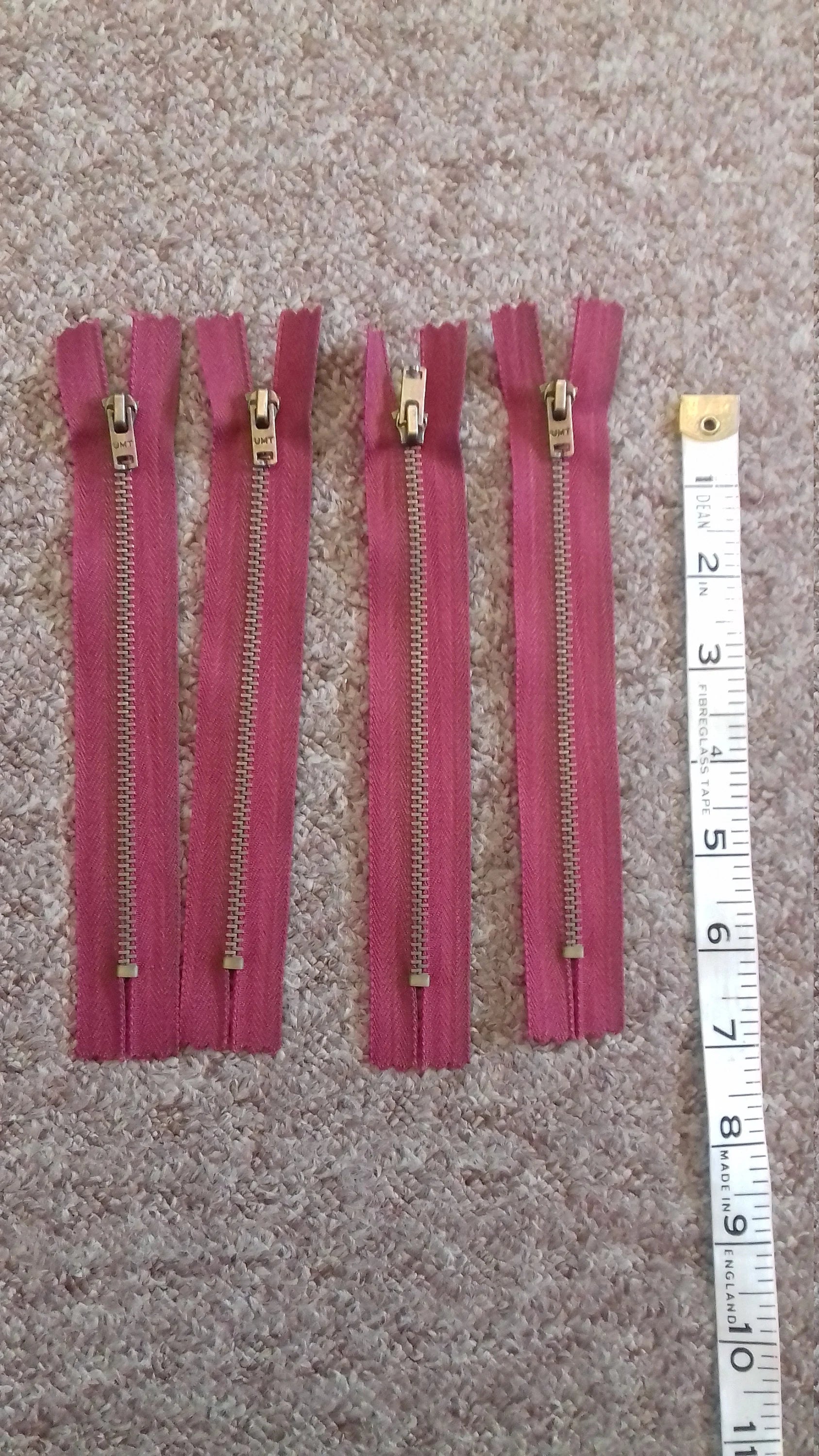 Deep raspberry zip red/burgundy large metal antique brass 6 inch (15cm) closed end Size 4.5