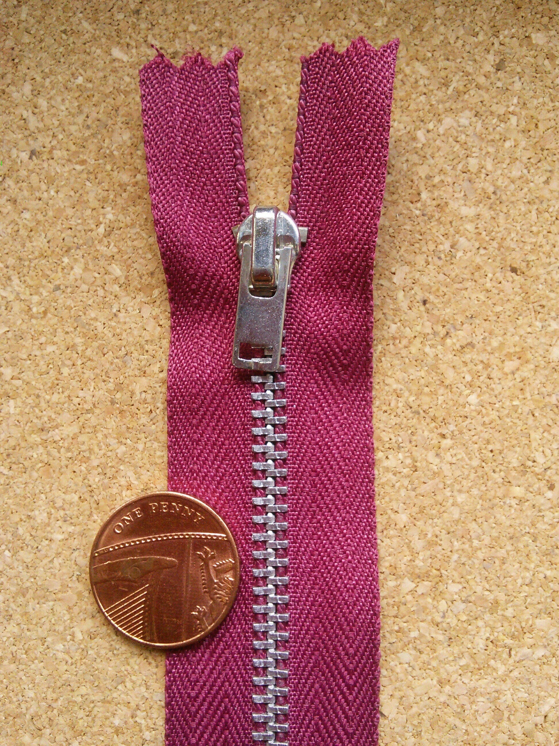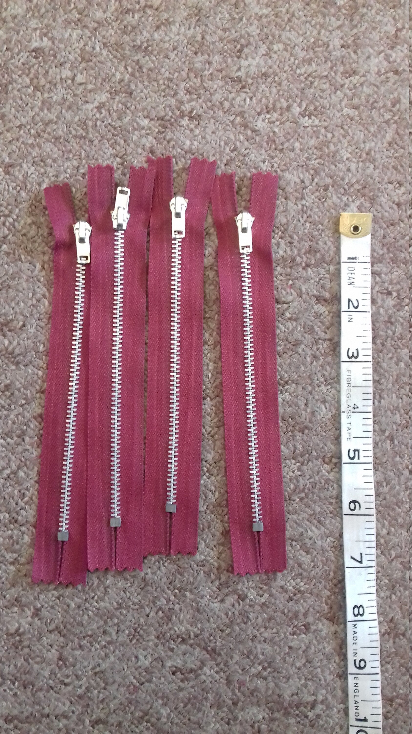 Deep raspberry zip red/burgundy large silver metal 6 inch (15cm) closed end Size 4.5 with large metal teeth and metal zipper.