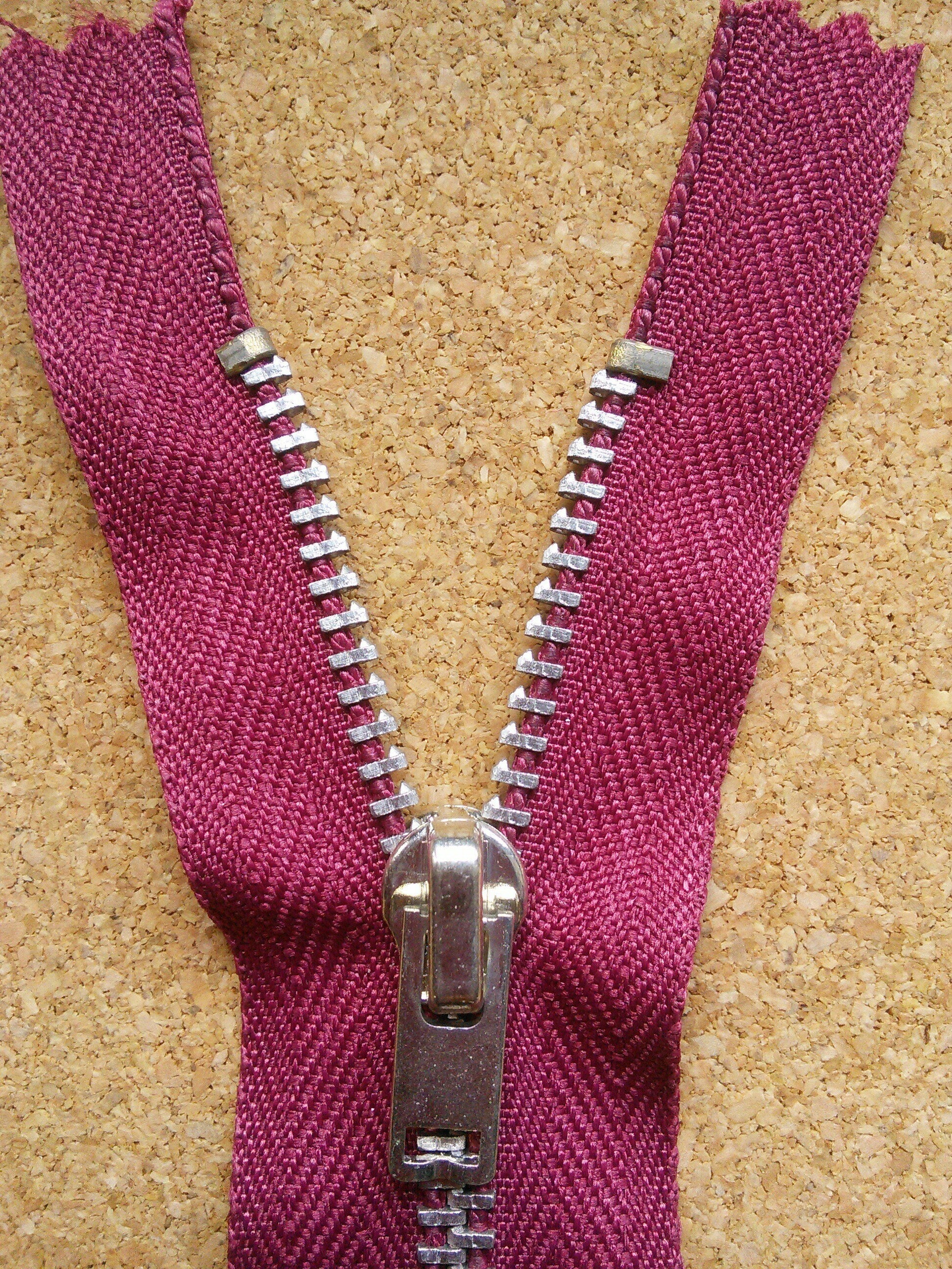 Deep raspberry zip red/burgundy large silver metal 6 inch (15cm) closed end Size 4.5 with large metal teeth and metal zipper.