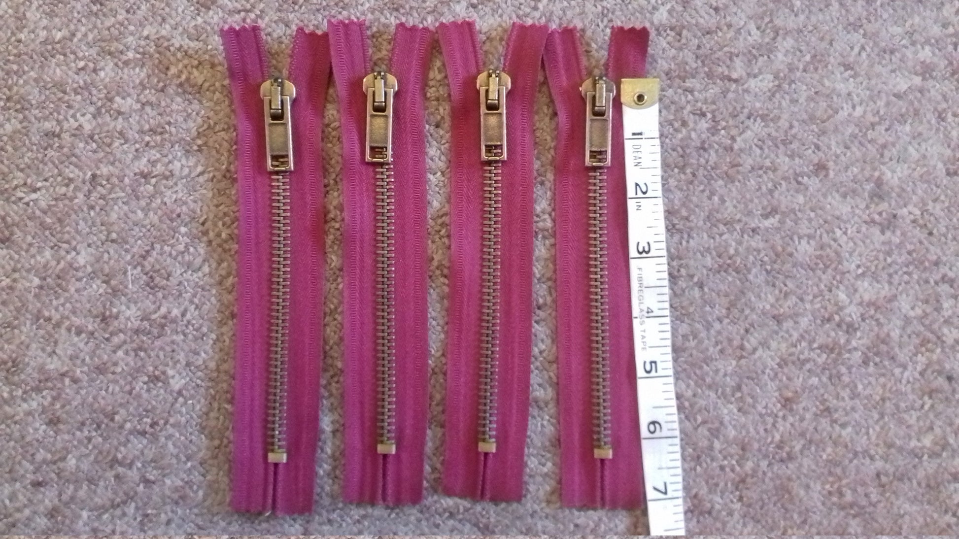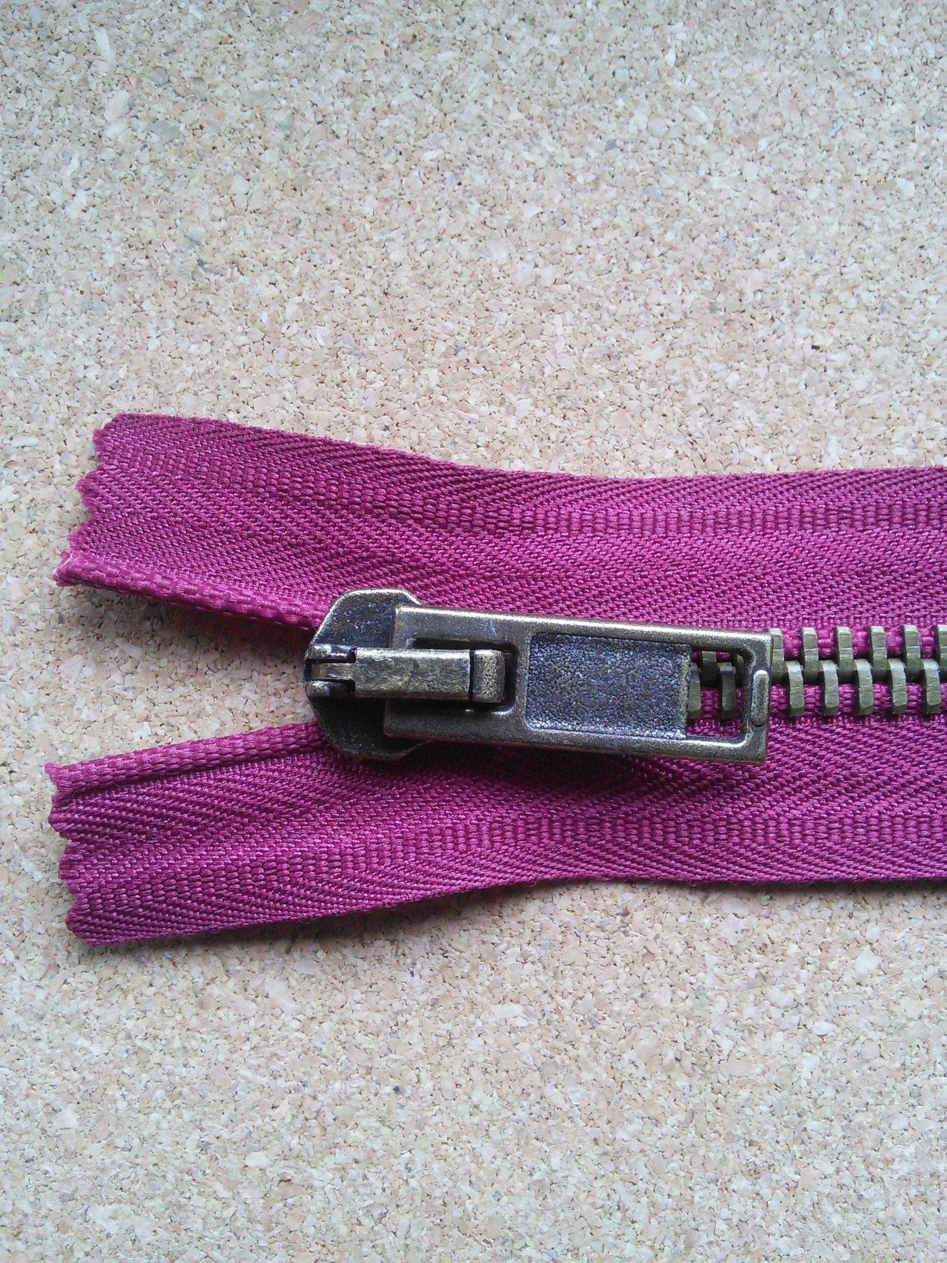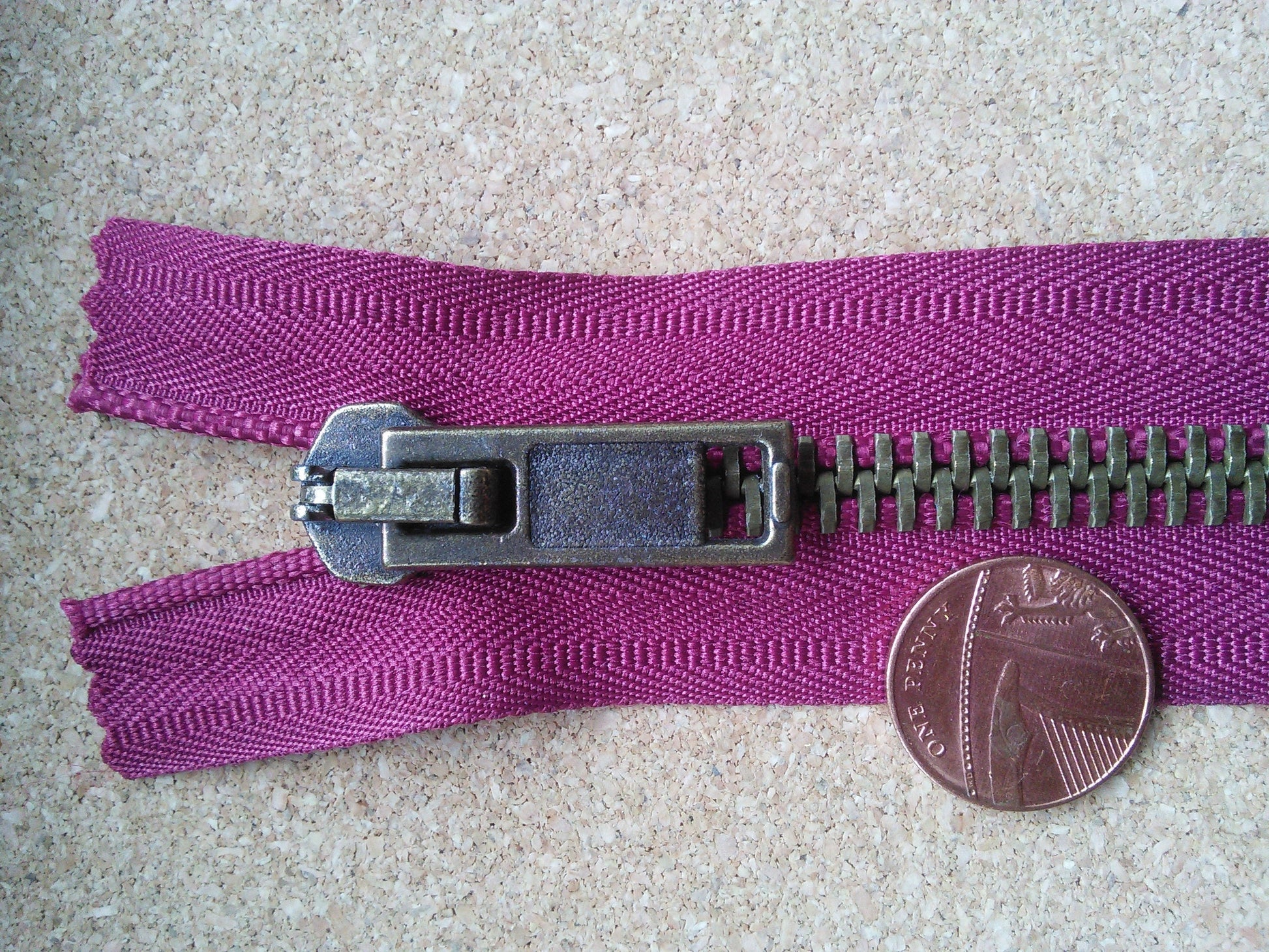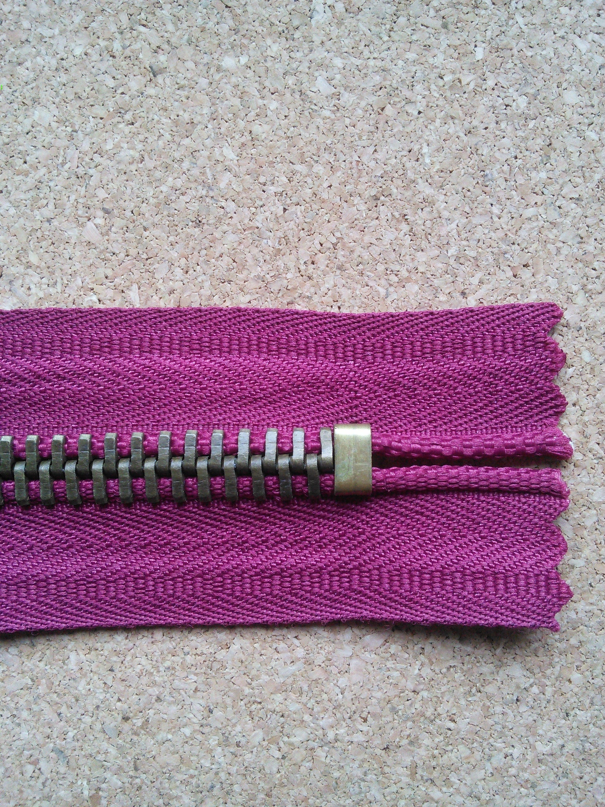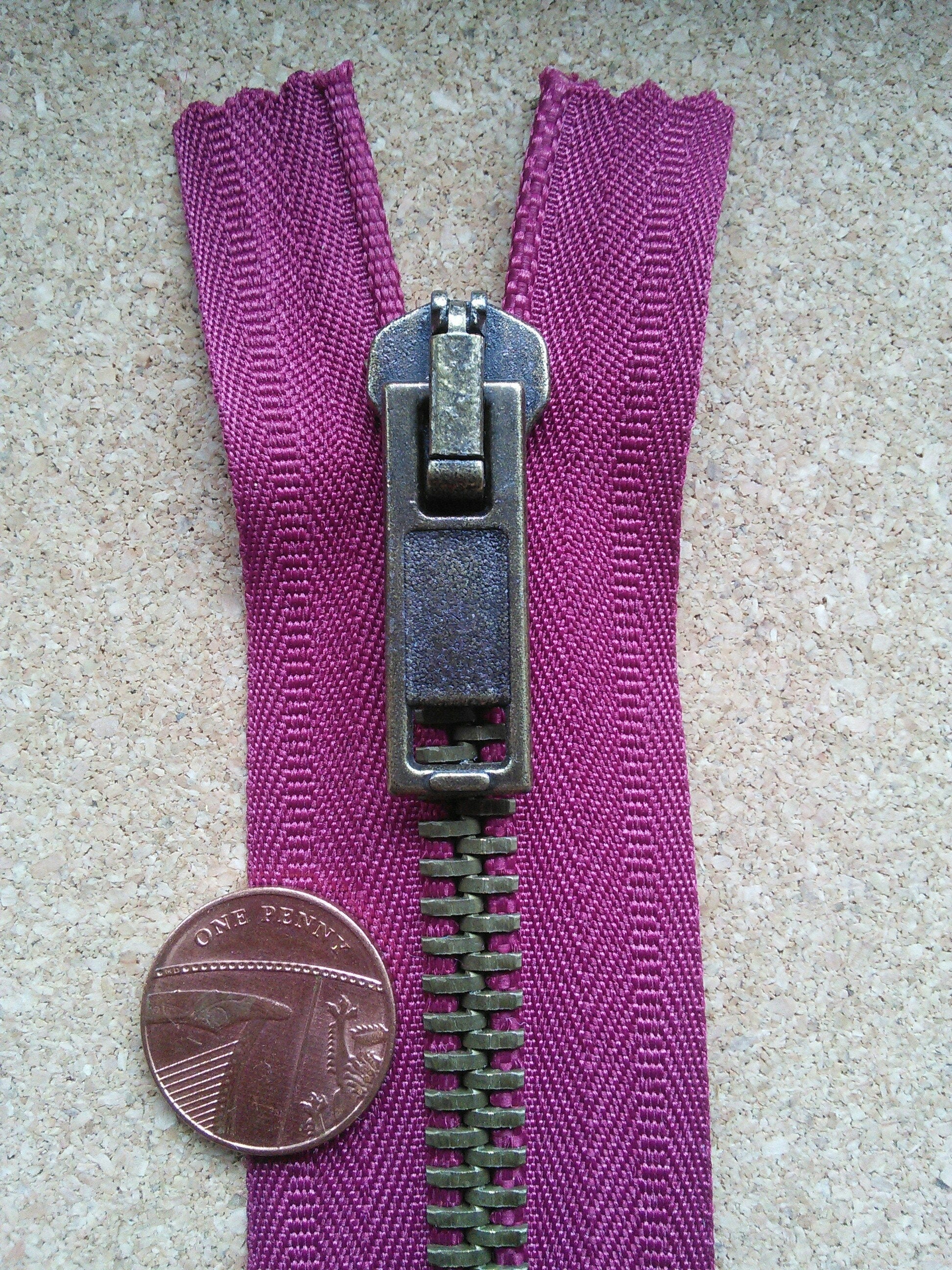 Deep raspberry zip red/burgundy very chunky heavy antique brass metal 6 inch (15cm) closed end Size 8