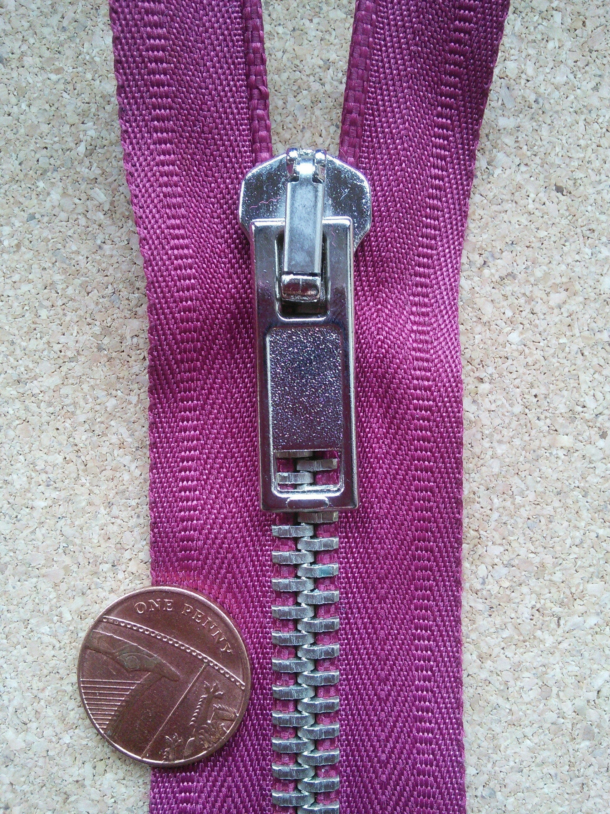 Deep raspberry zip red/burgundy very chunky heavy pale gold 6 inch (15cm) closed end Size 8