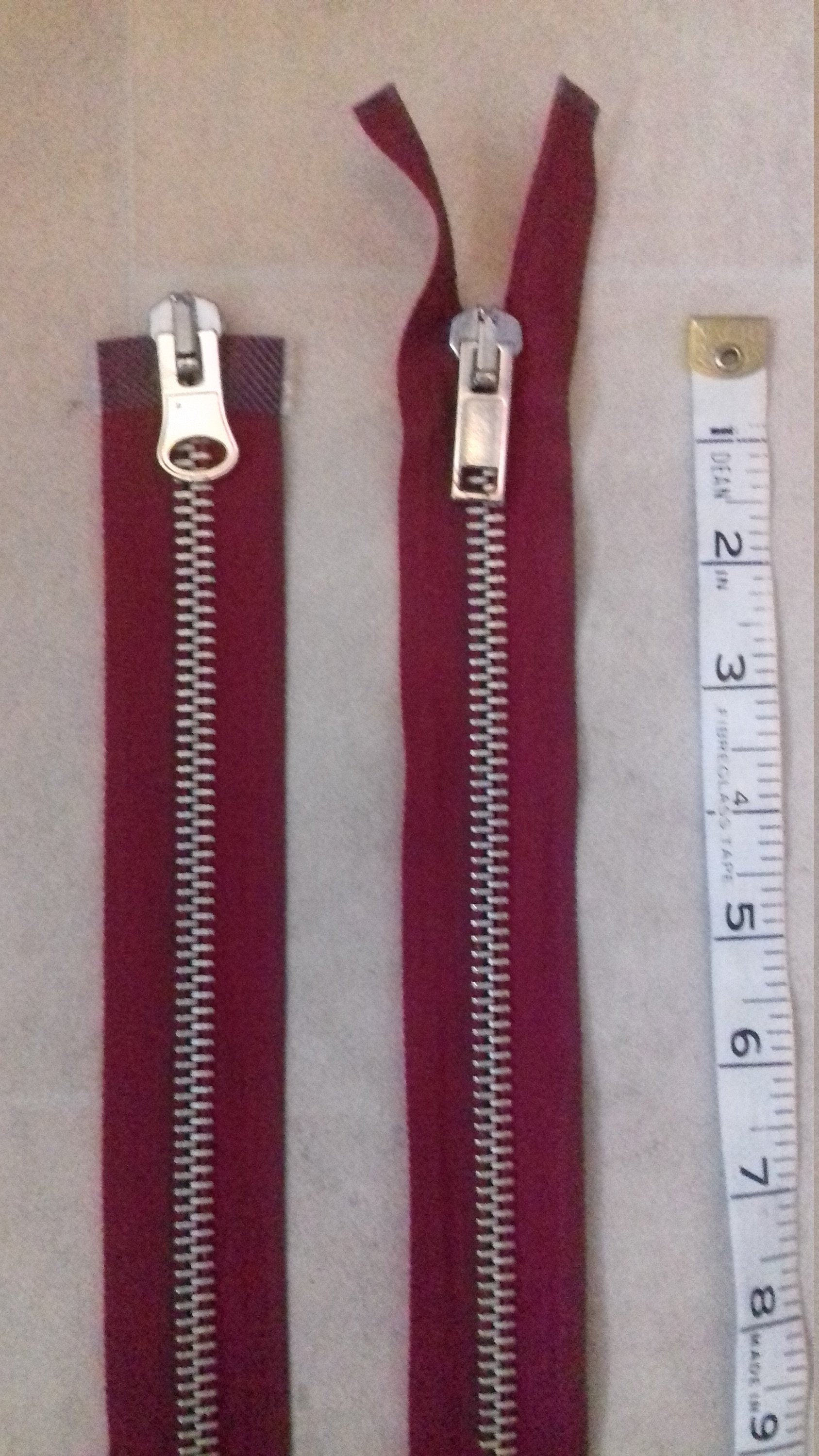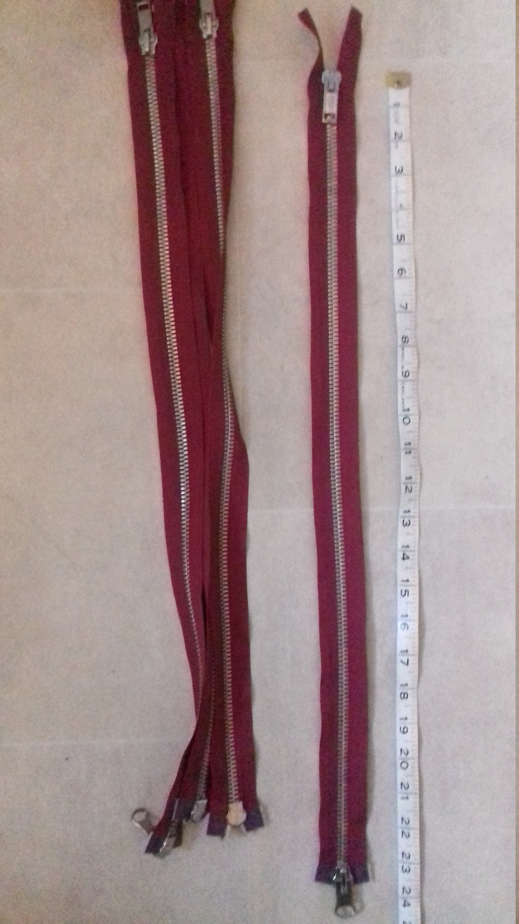 Deep raspberry zip red/burgundy very chunky heavy pale gold metal 23.5 inch (59.5cm) double ended Size 5