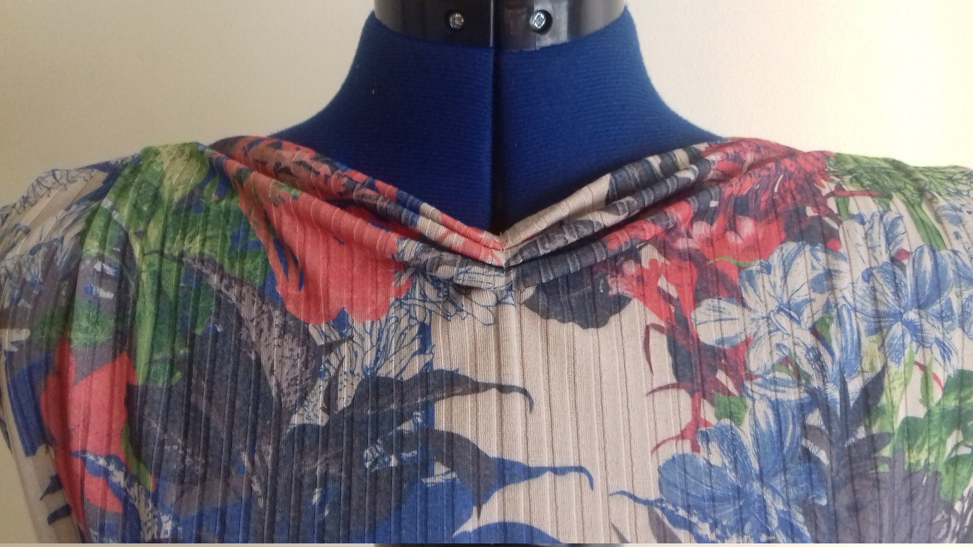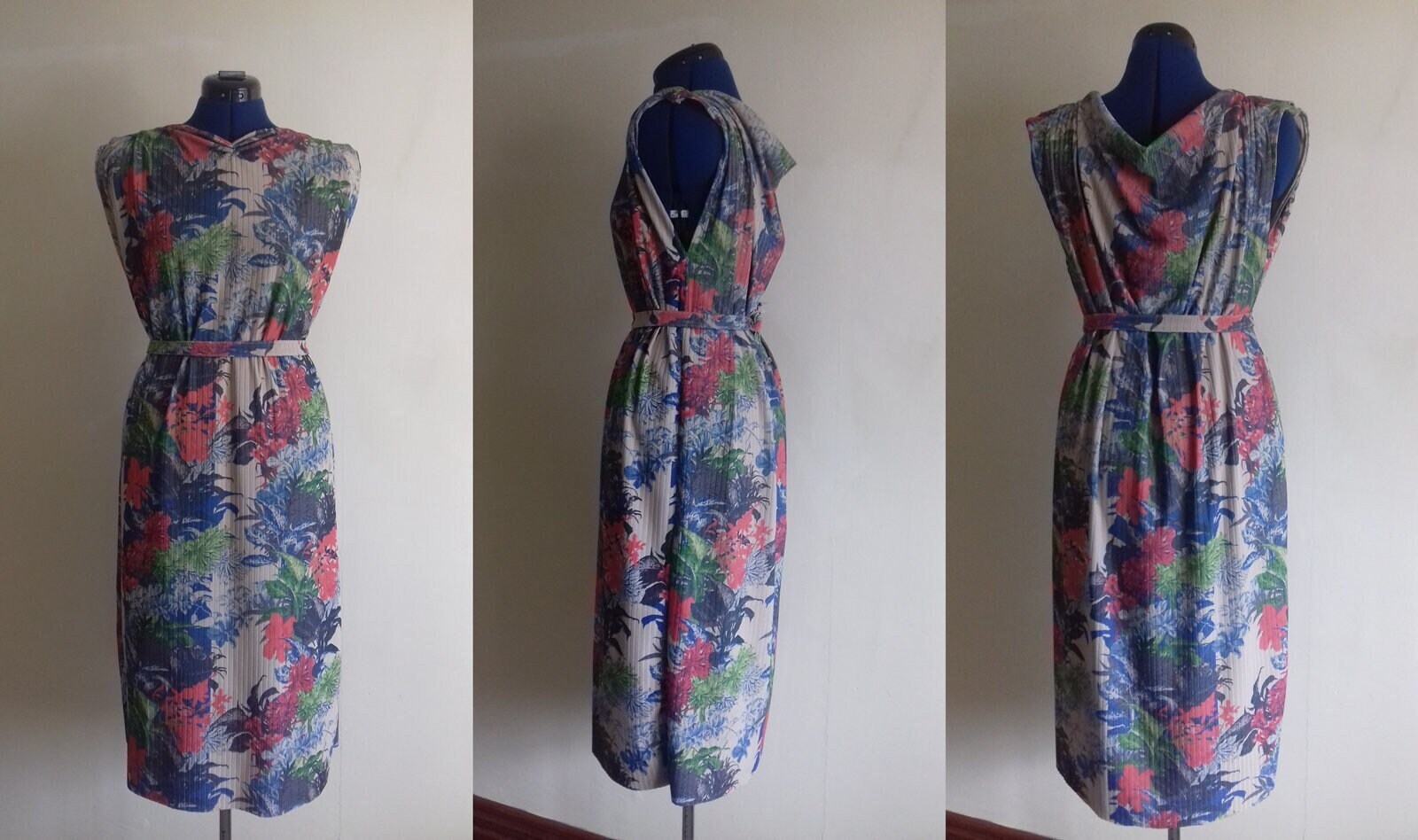 It comes with a matching belt which fixes with a hook and eye and will be finished to your waist measurement if required. This dress also features a pleated detail on the front neckline, a cowl back and pleated detailing on the front shoulder seam making it a beautiful unique evening or day dress.