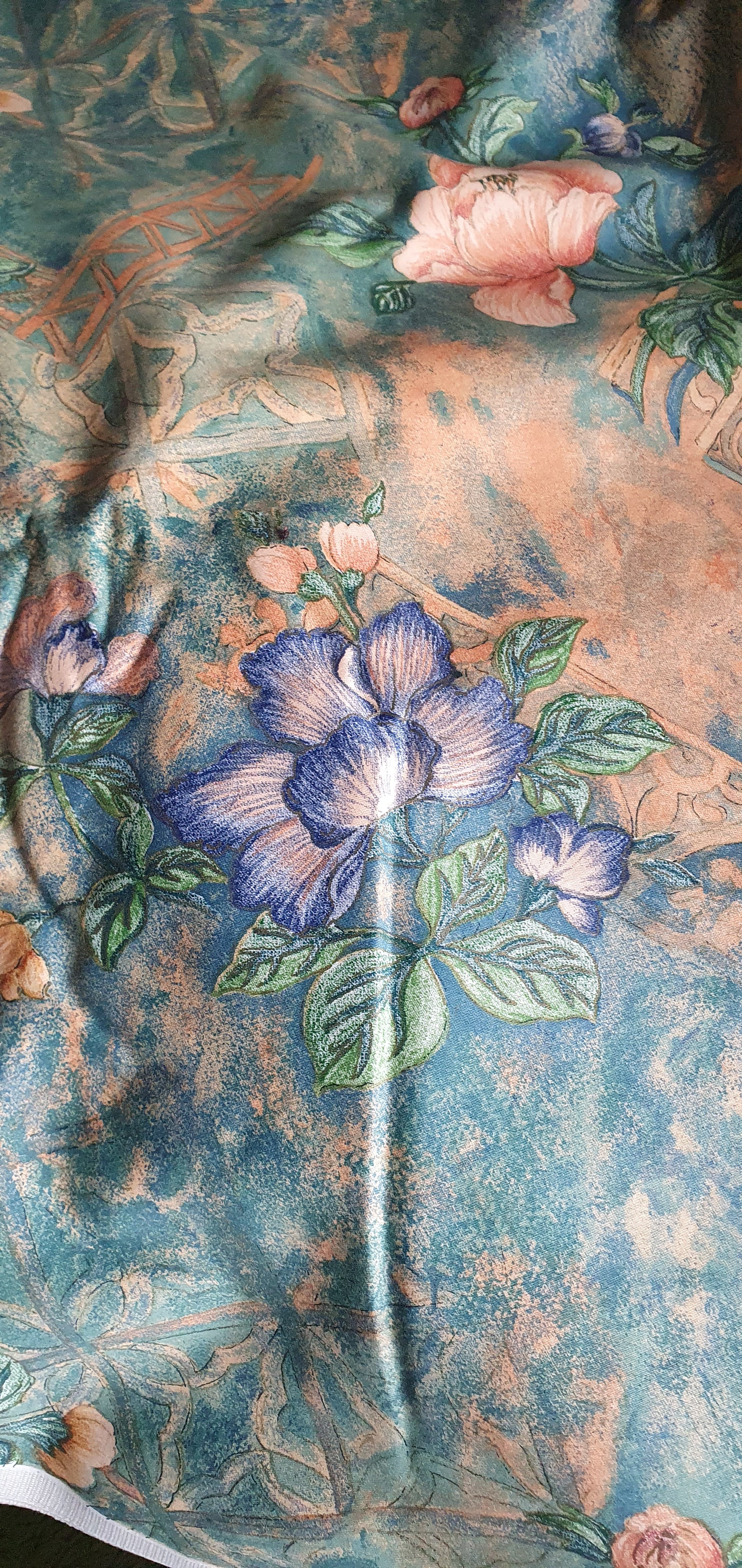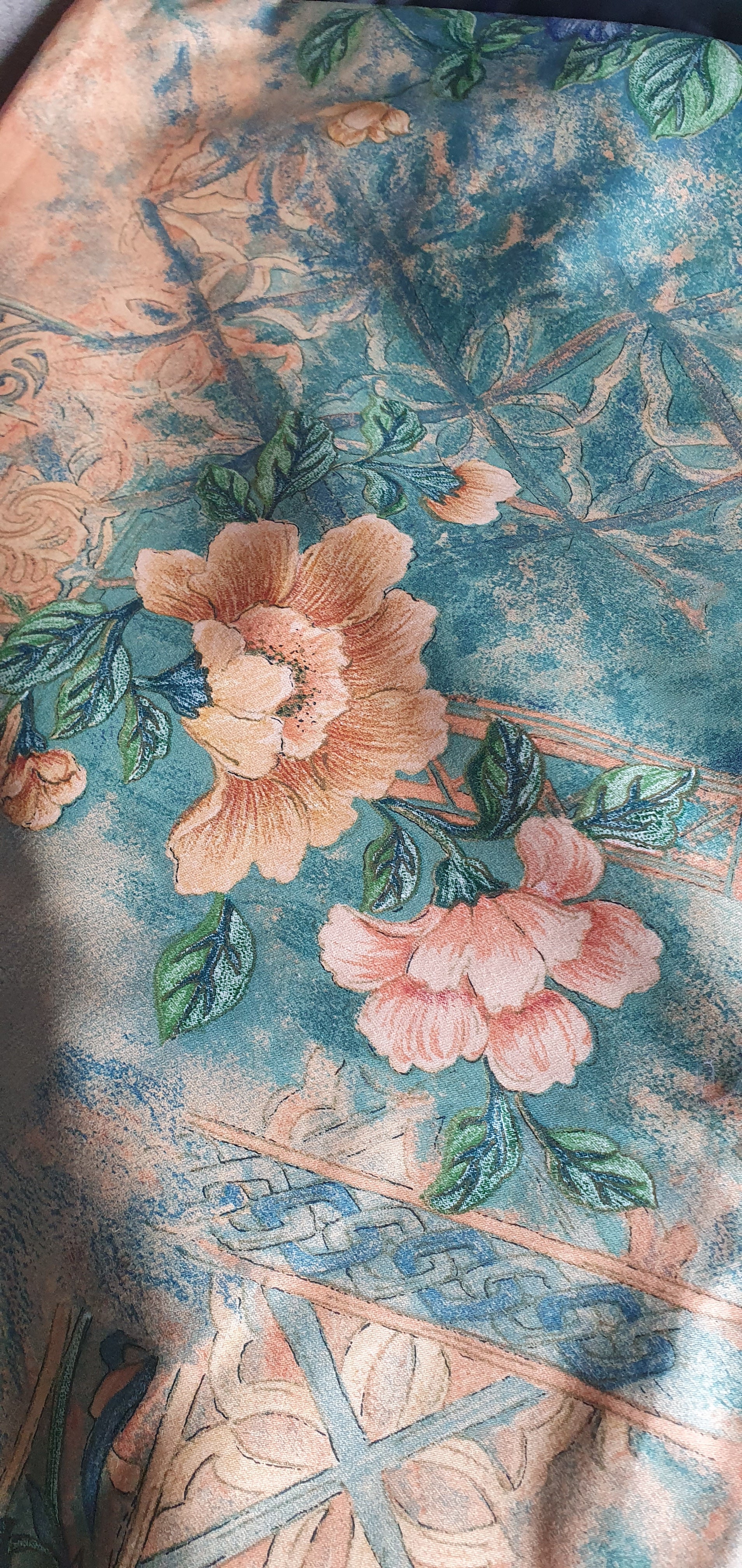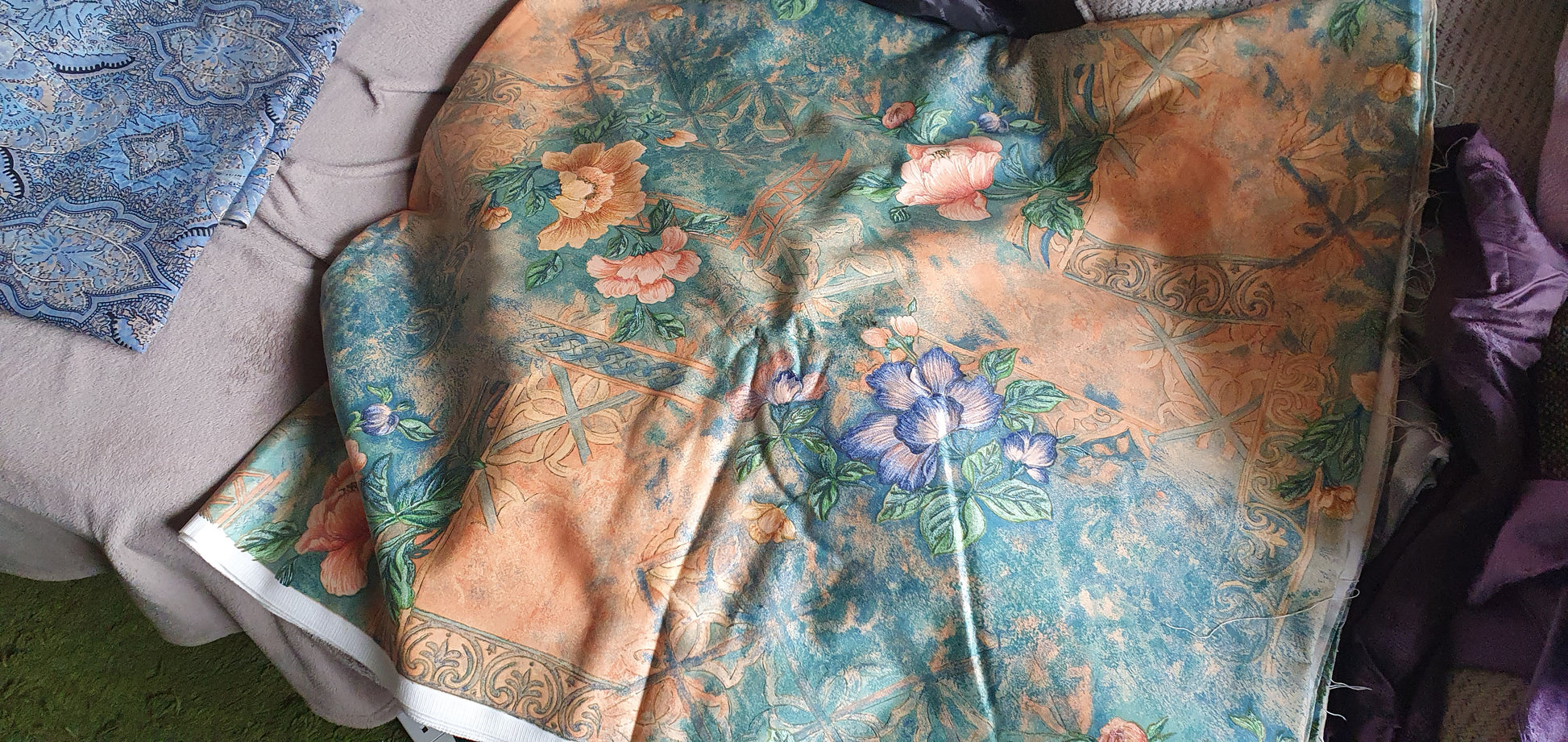 Floral Orange, Green, Blue Fabric Remnants Per Metre