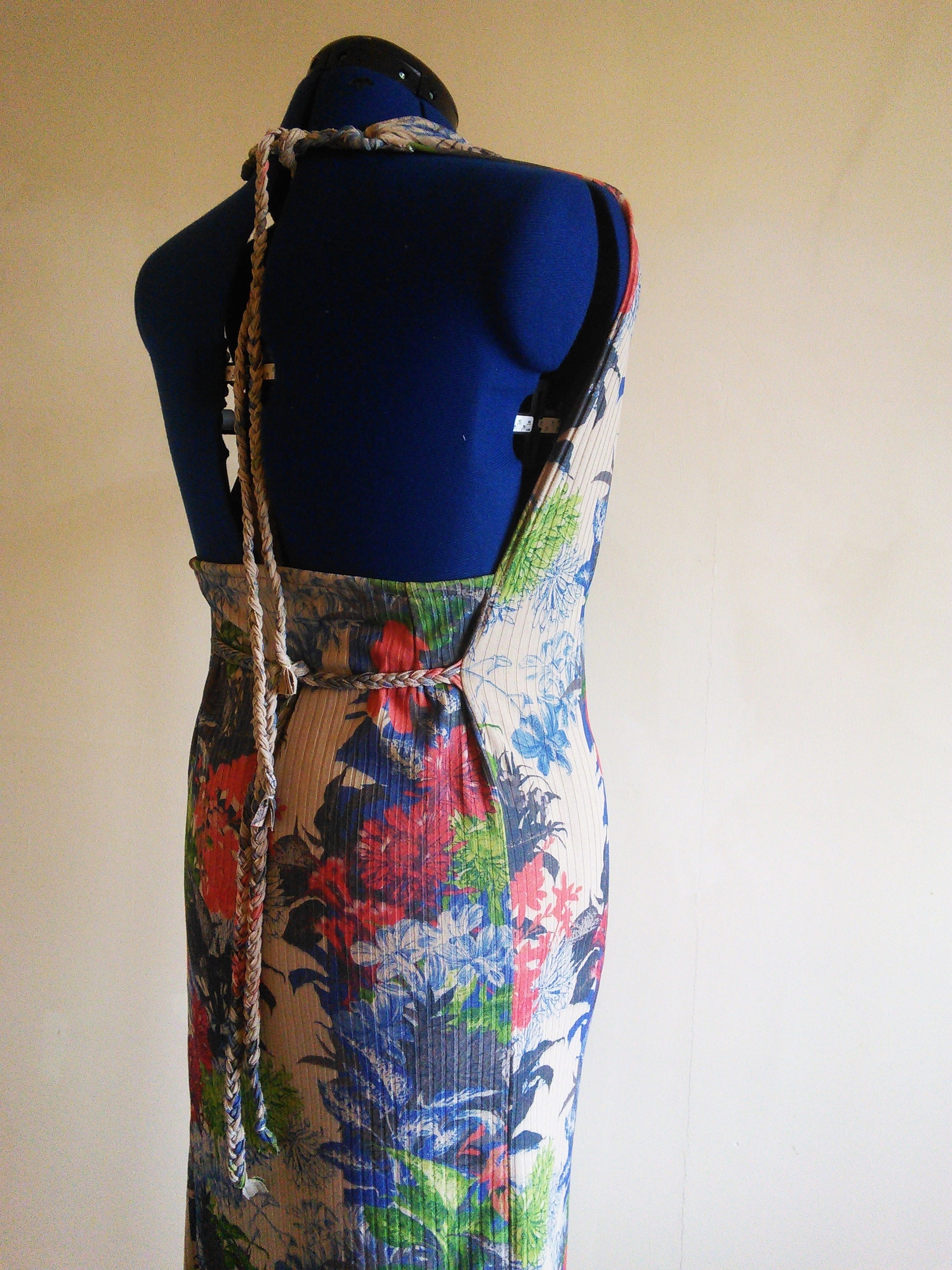 The braided ties on the back however, ensure a nice silhouette across the back waist, keeping everything in place. The waist tie is fully adjustable as is the halterneck which also has fully adjustable braided ties.