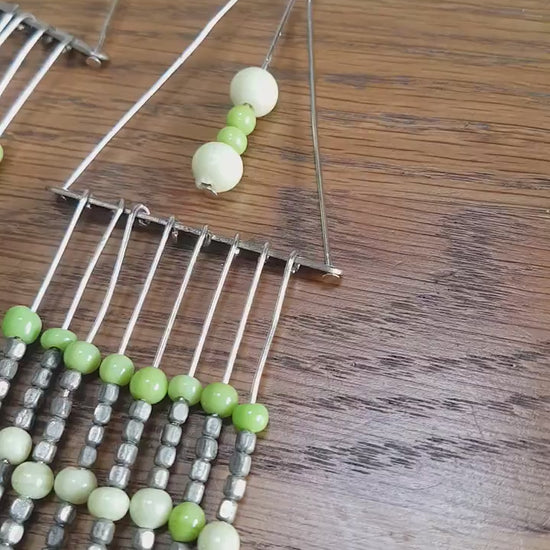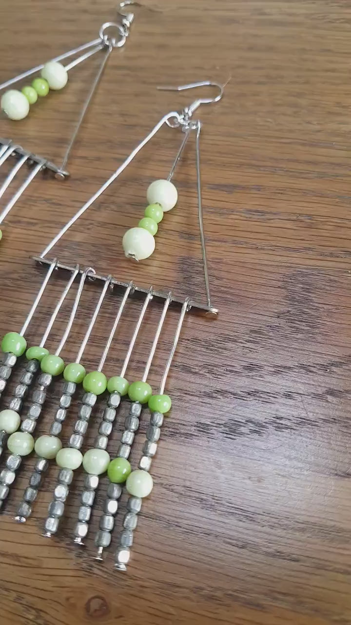 Green Bead Silver Dangle Earrings
