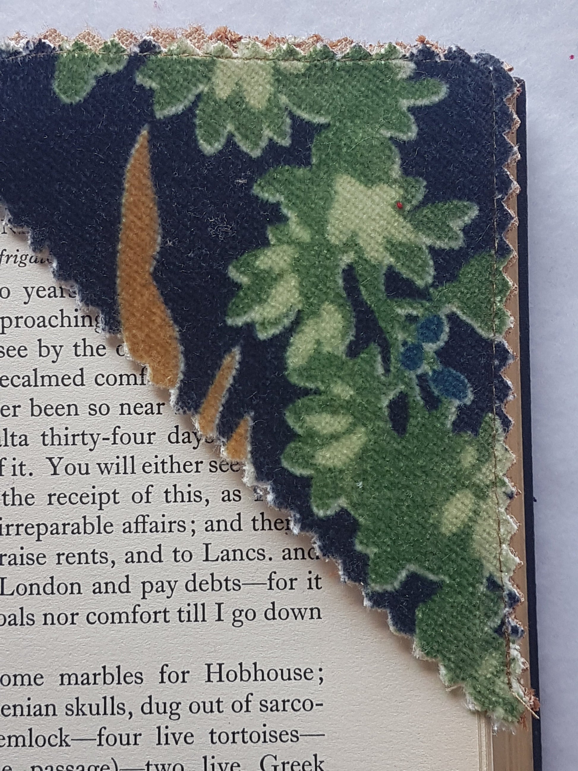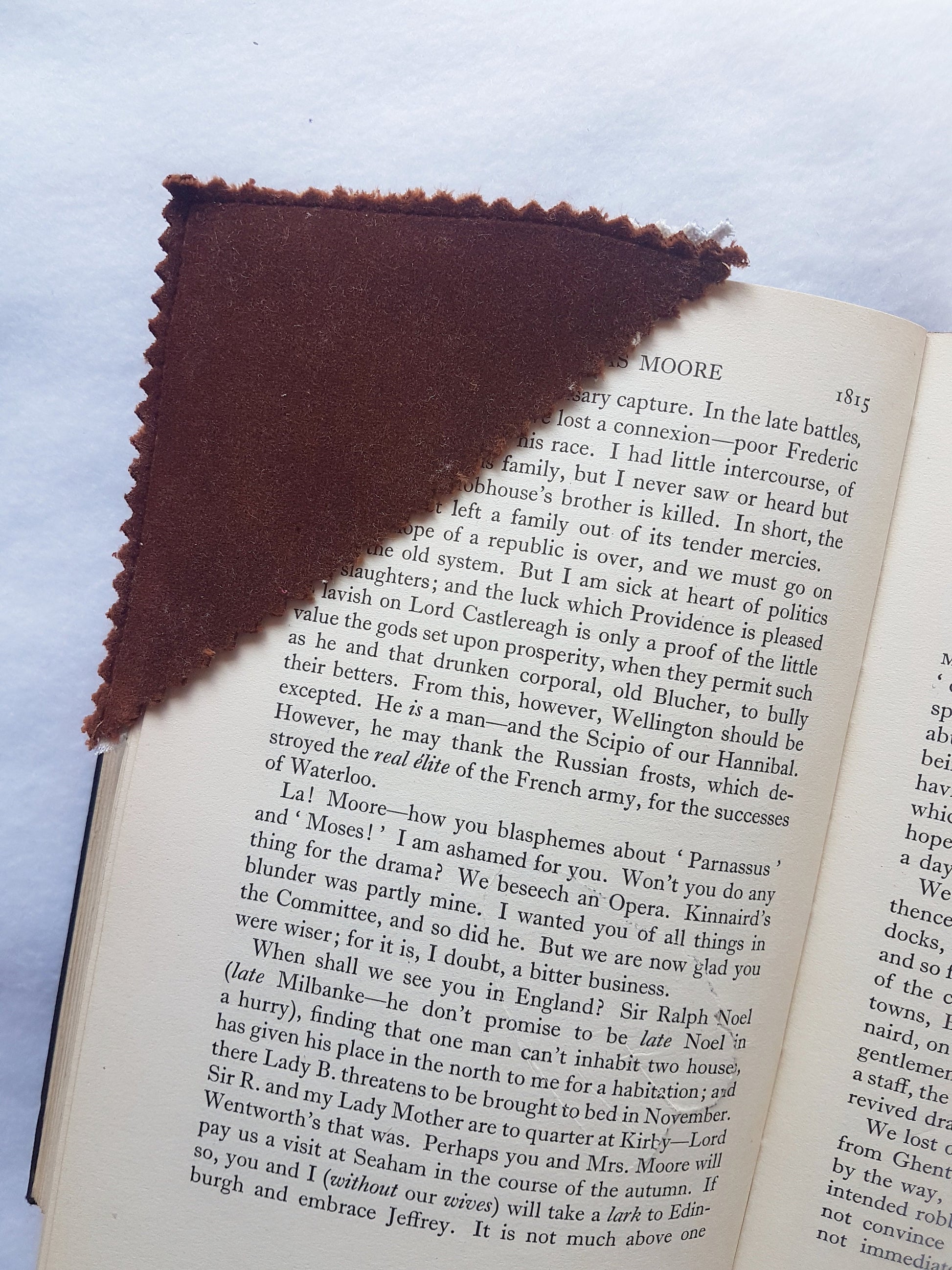 Up for sale here is a single handmade bookmark. It is made from unwanted, dead stock, upcycled soft fabrics. Both sides are in velvet. One side is an abstract pattern of dark and mid-green, grey/blue and brown, the other is tan brown. The perfect stocking filler for the book lover in your life, or as a personal touch to a book you are already gifting to someone.