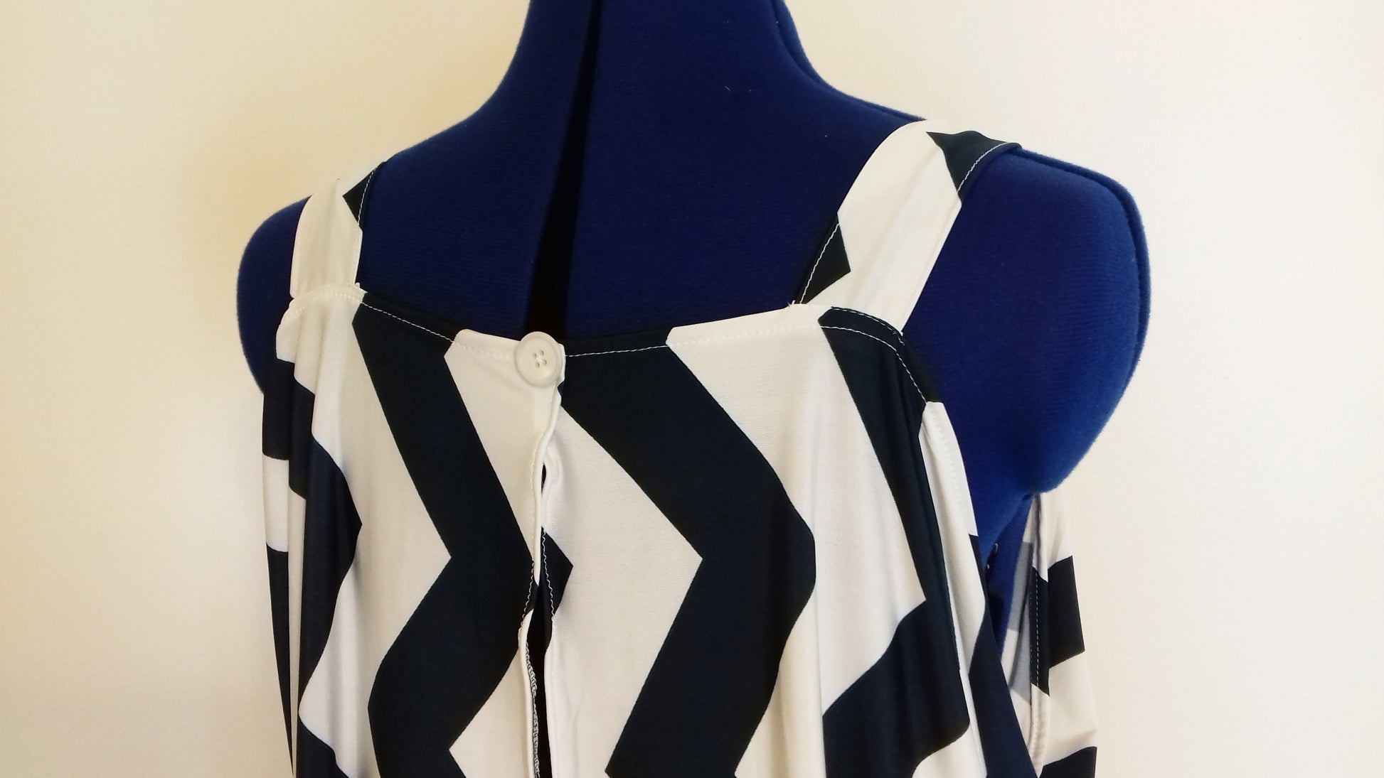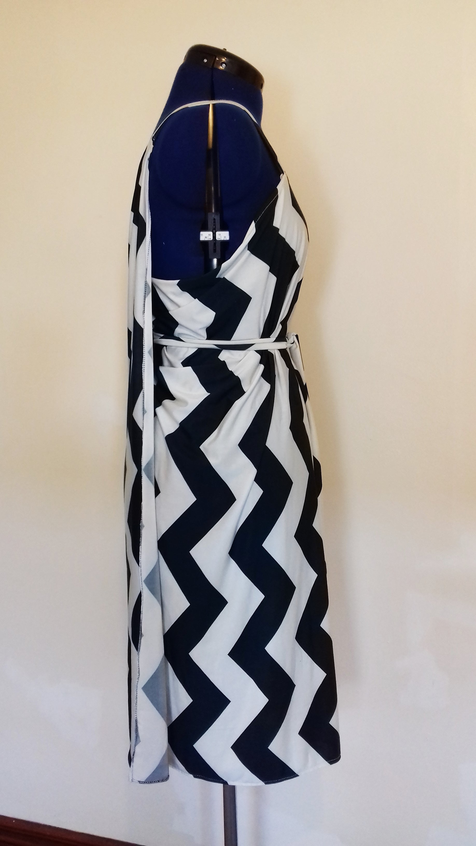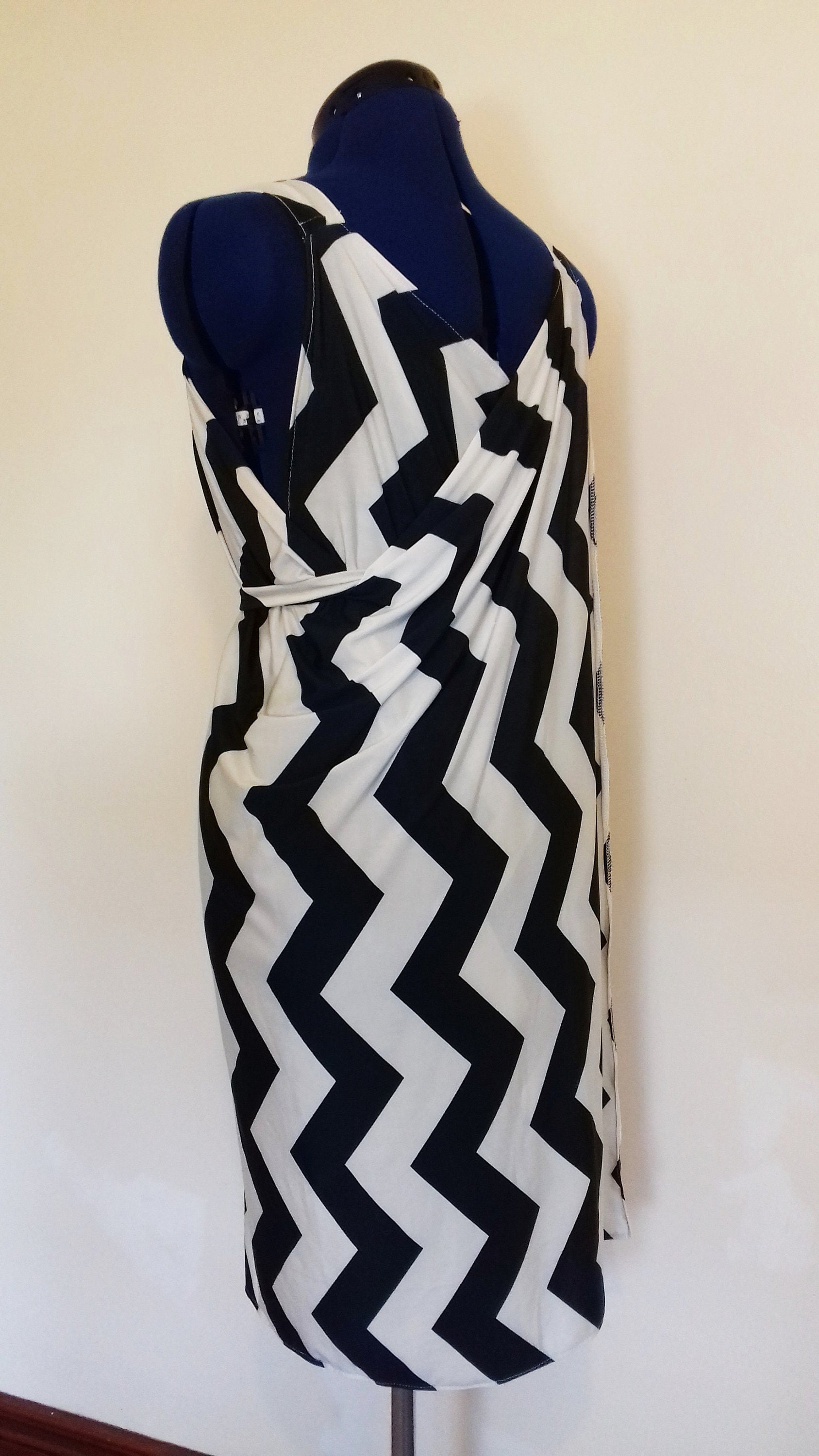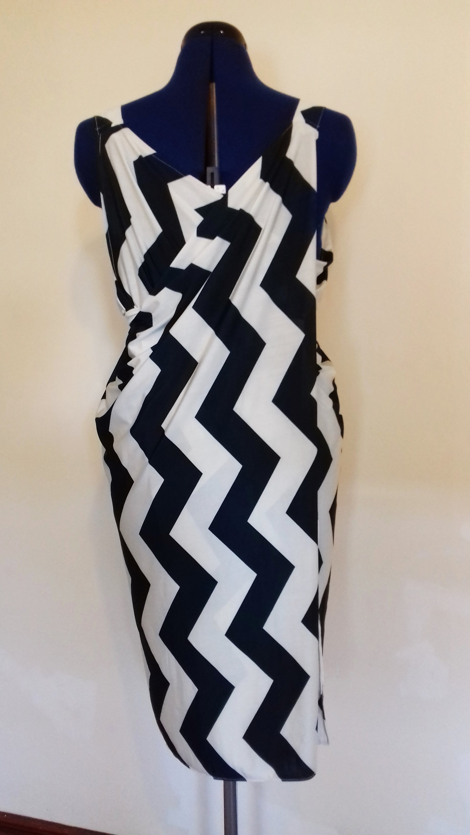 This bold dark green and white zig zag pattern handmade drape dress is made from soft stretch poly/viscose blend fabric so it feels great and hangs really well.