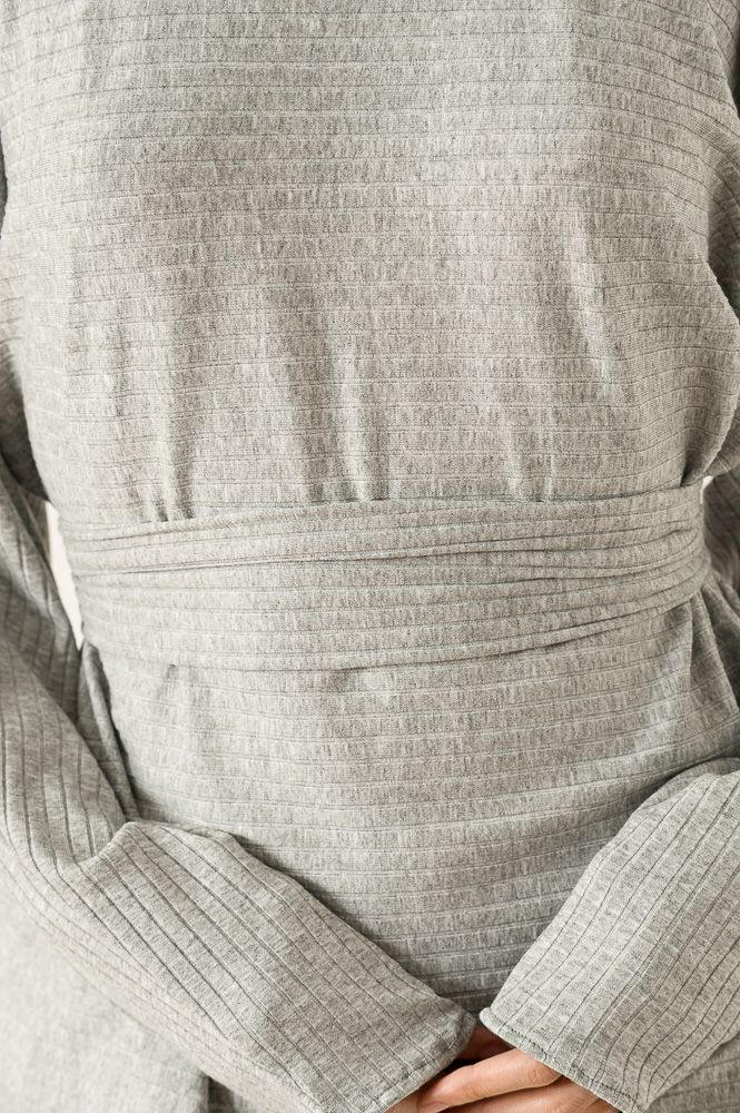 Grey Belted Keyhole Batwing Cold Shoulder Jersey Top