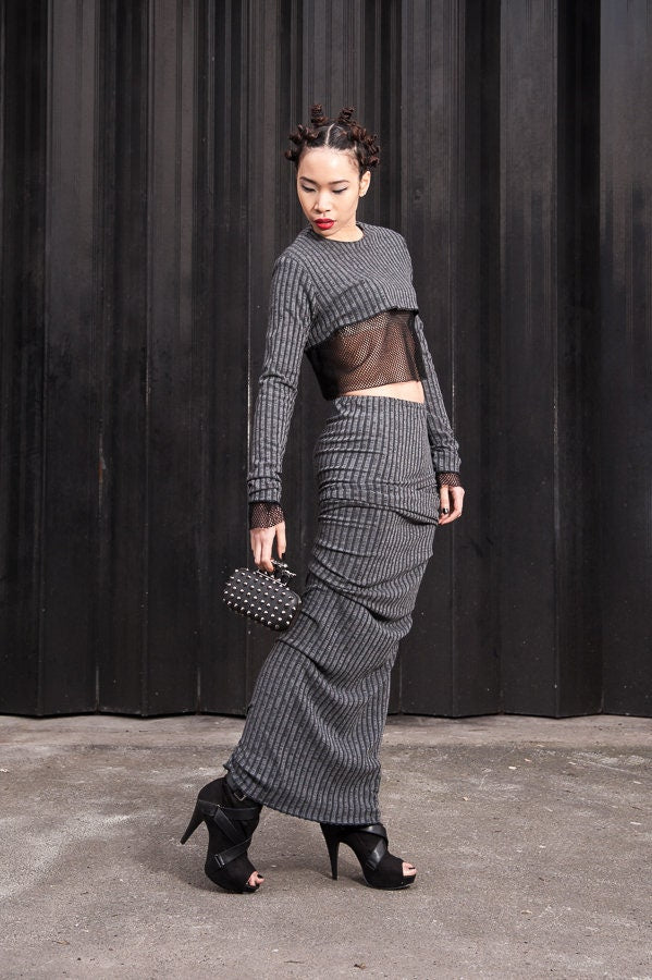 Easy Wear Grey Ribbed Jersey Grey Skirt Top Set