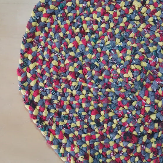 Handmade Braided Coaster Grey Red Yellow Tartan