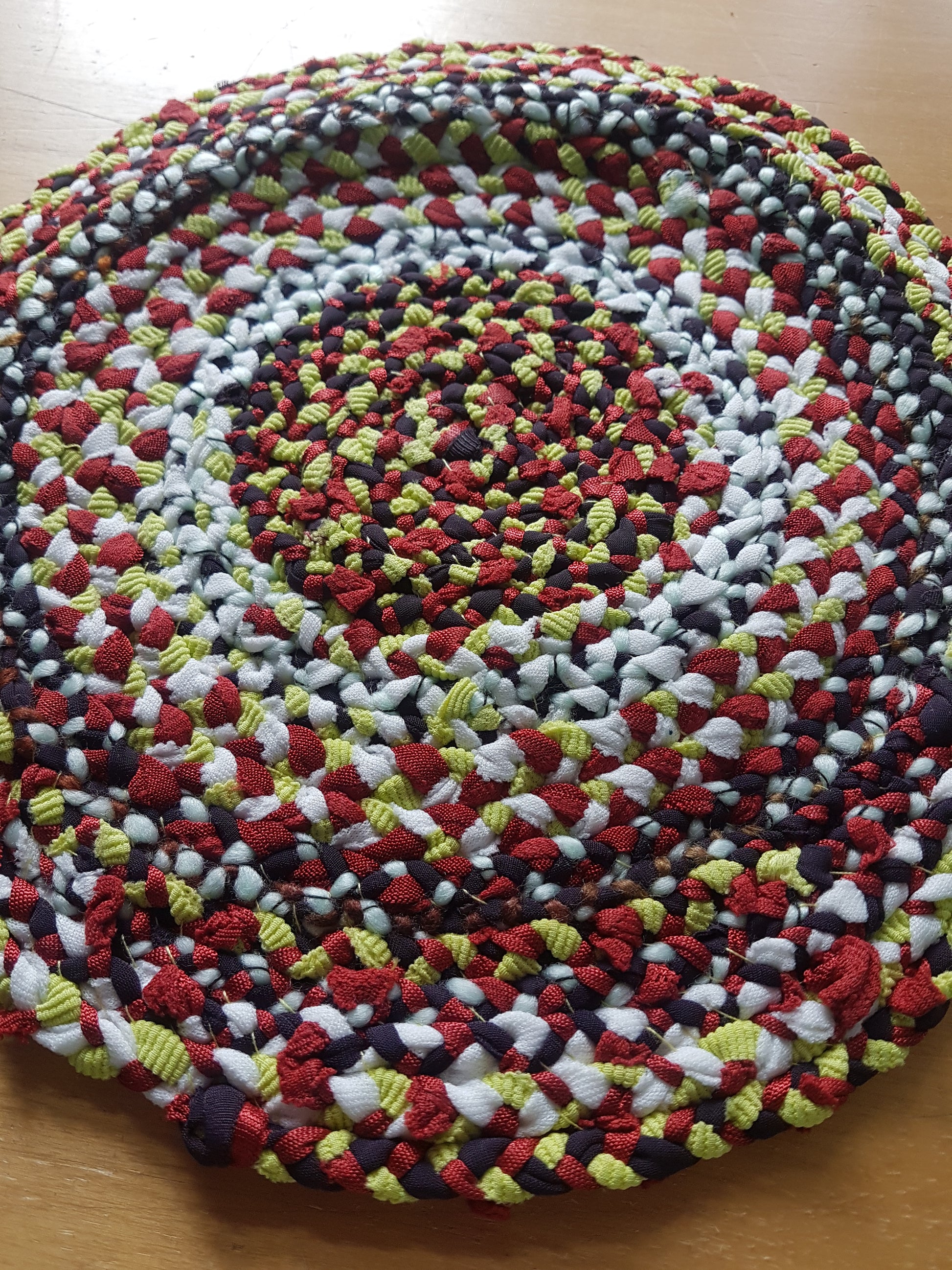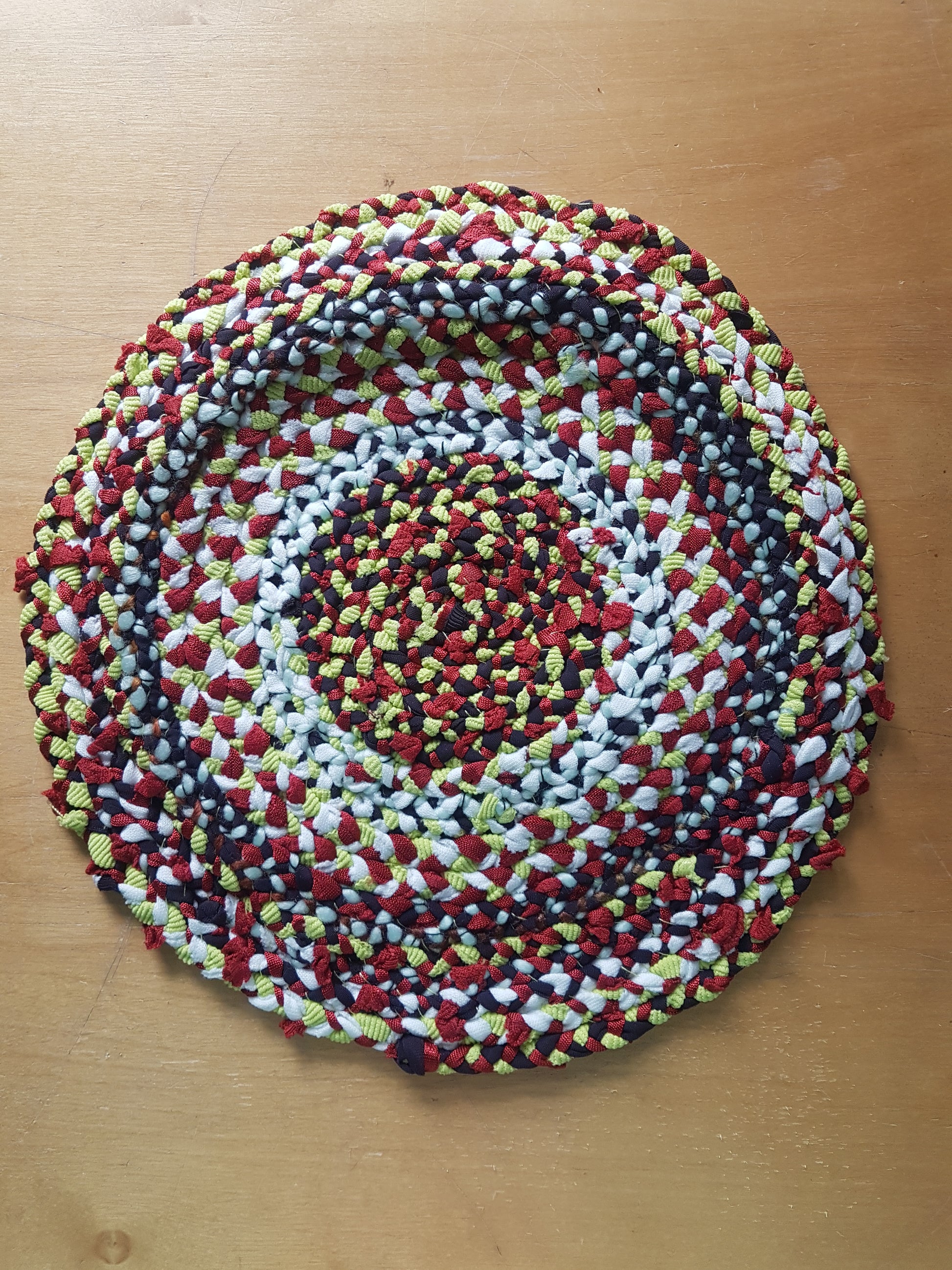 Handmade Braided Coaster Red Green White Multi Coloured
