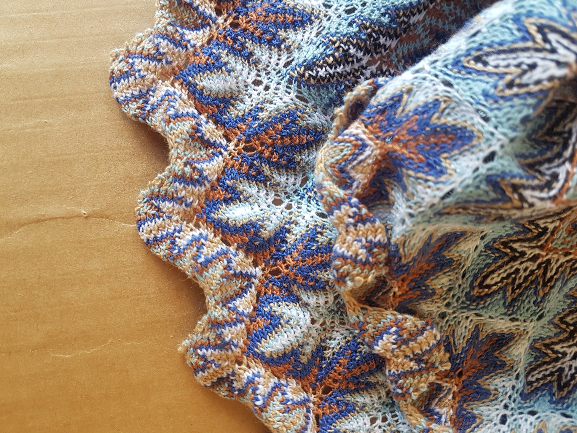 This is a double side woven machine knitted fabric in blues, white and orange hues with a fashioned edge. It would be suitable for a variety of crafts or clothing projects and is of a mid to heavy weight and lovely quality. It is 150 cm wide. Multiple purchases will be sent as one length.