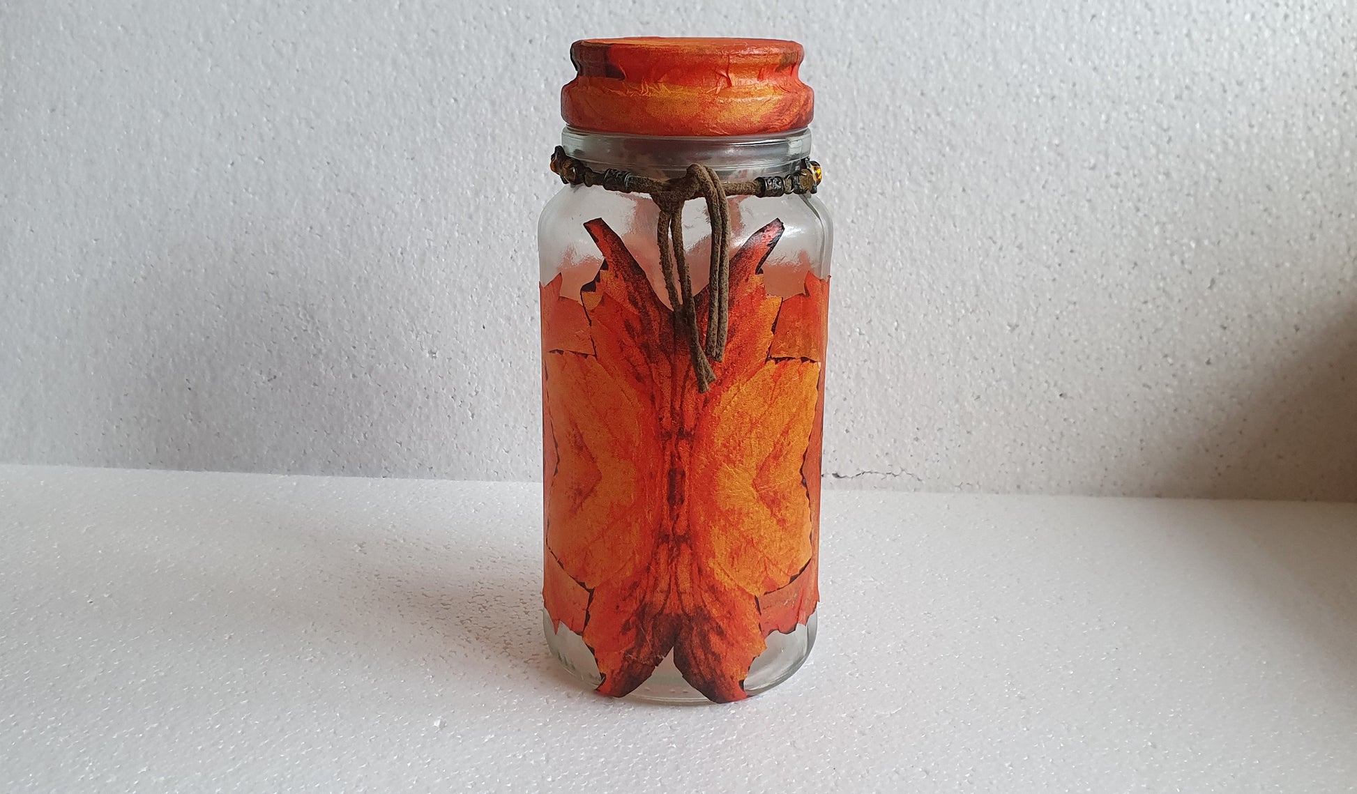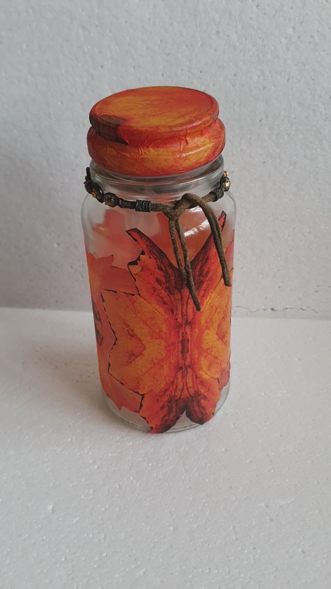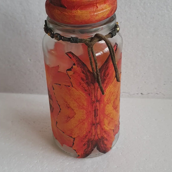 Medium Hand Decorated Glass Pin Cushion Jar Orange Flowers Leaves Autumn Crafters Gift