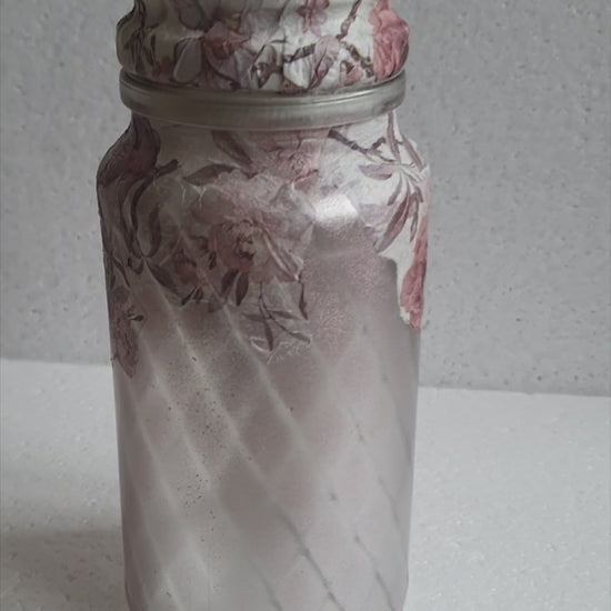 Medium Hand Decorated Glass Pin Cushion Jar Pink Floral Crafters Gift