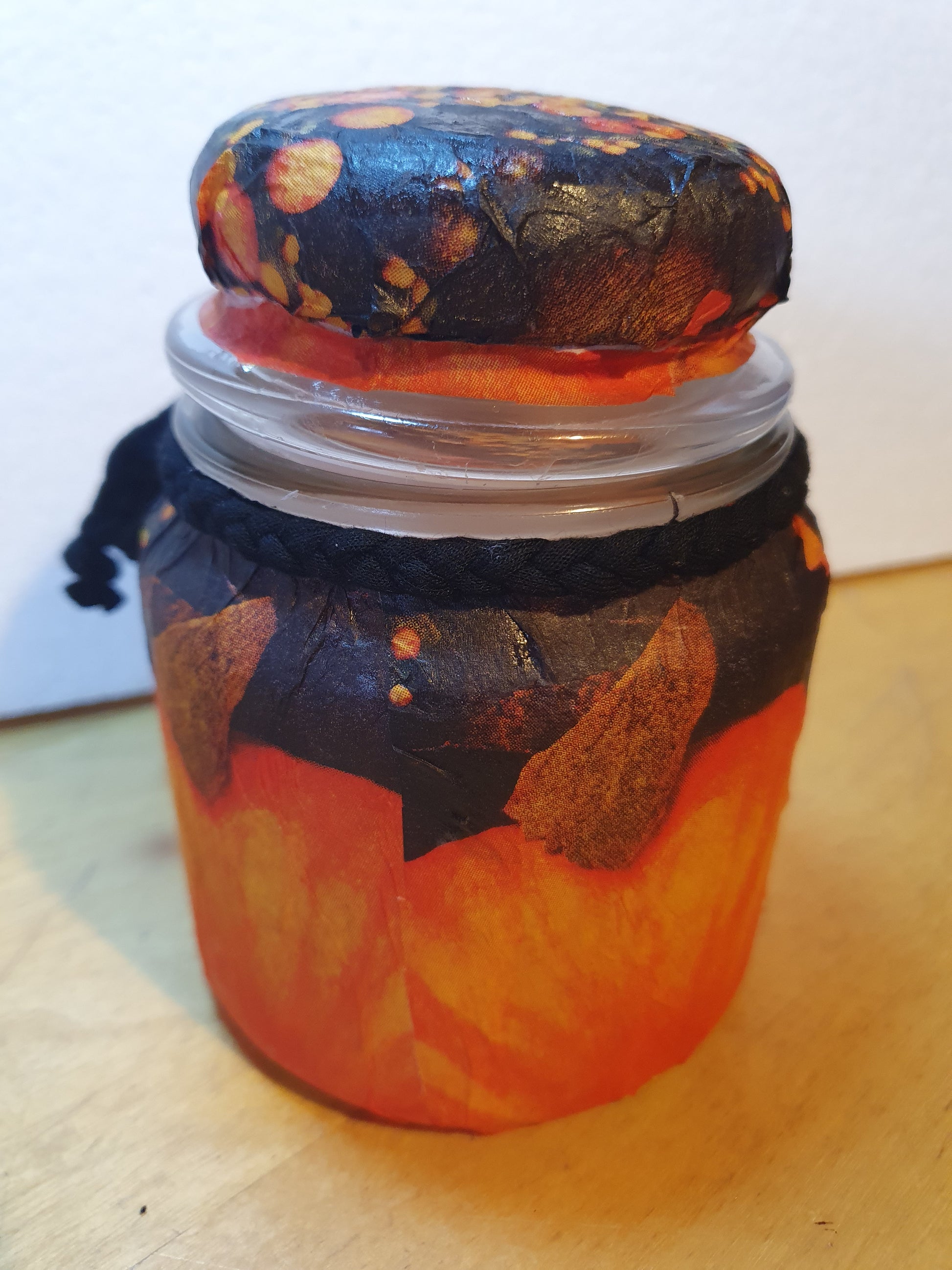 Medium Orange Black Floral Hand Decorated Candle Storage Jar With Lid Home Decor Gift