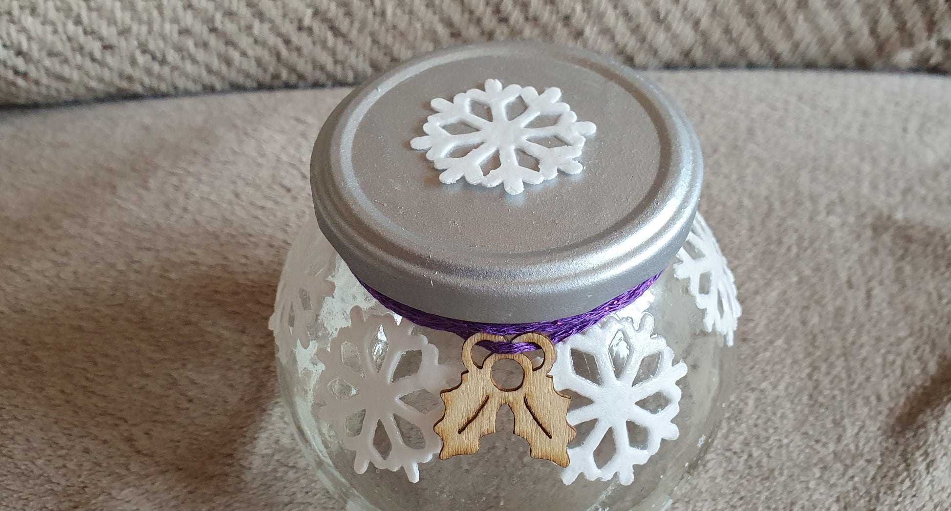 Small Christmas Winter Theme Hand Decorated Candle Jar Home Decor Gift