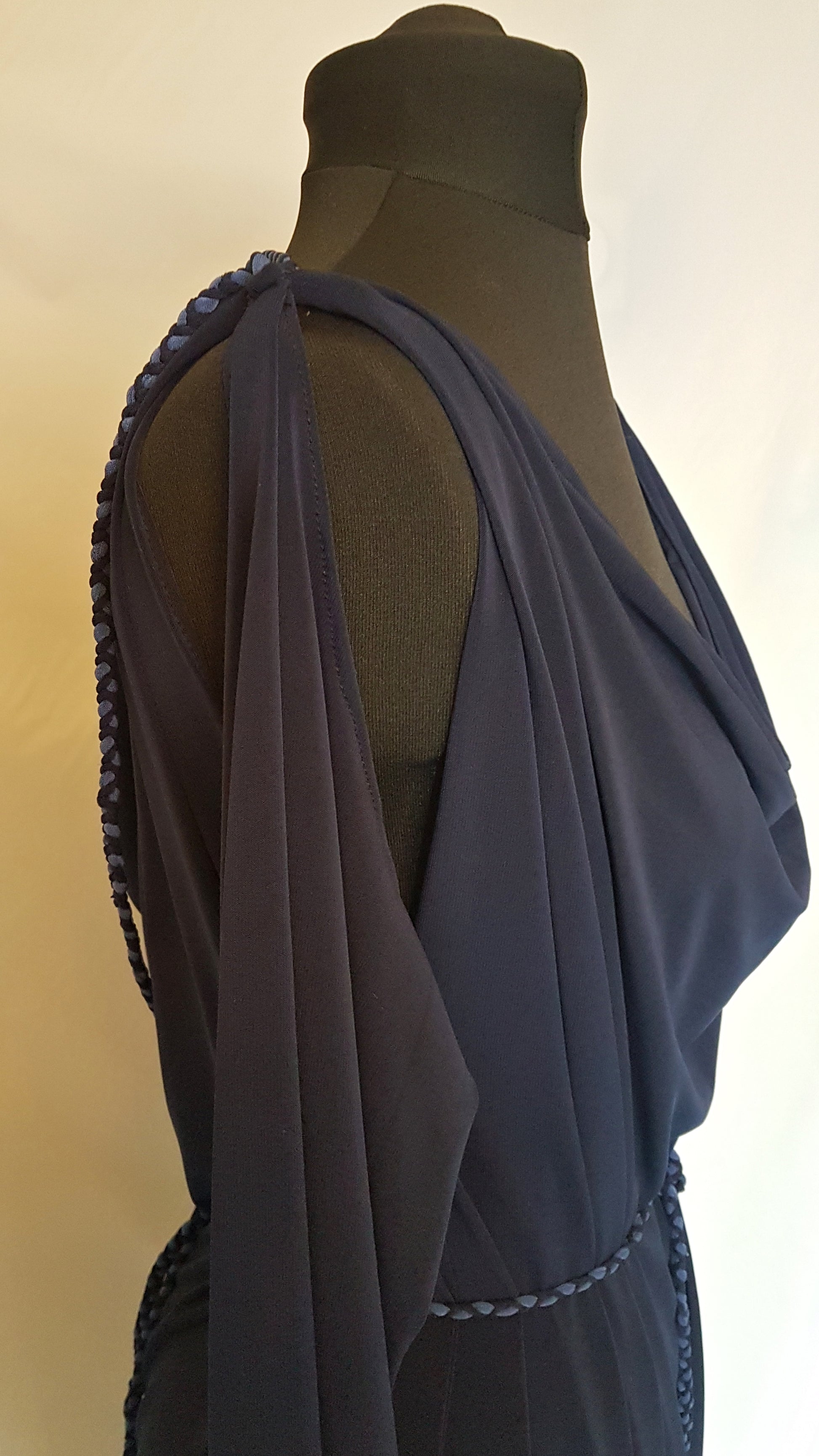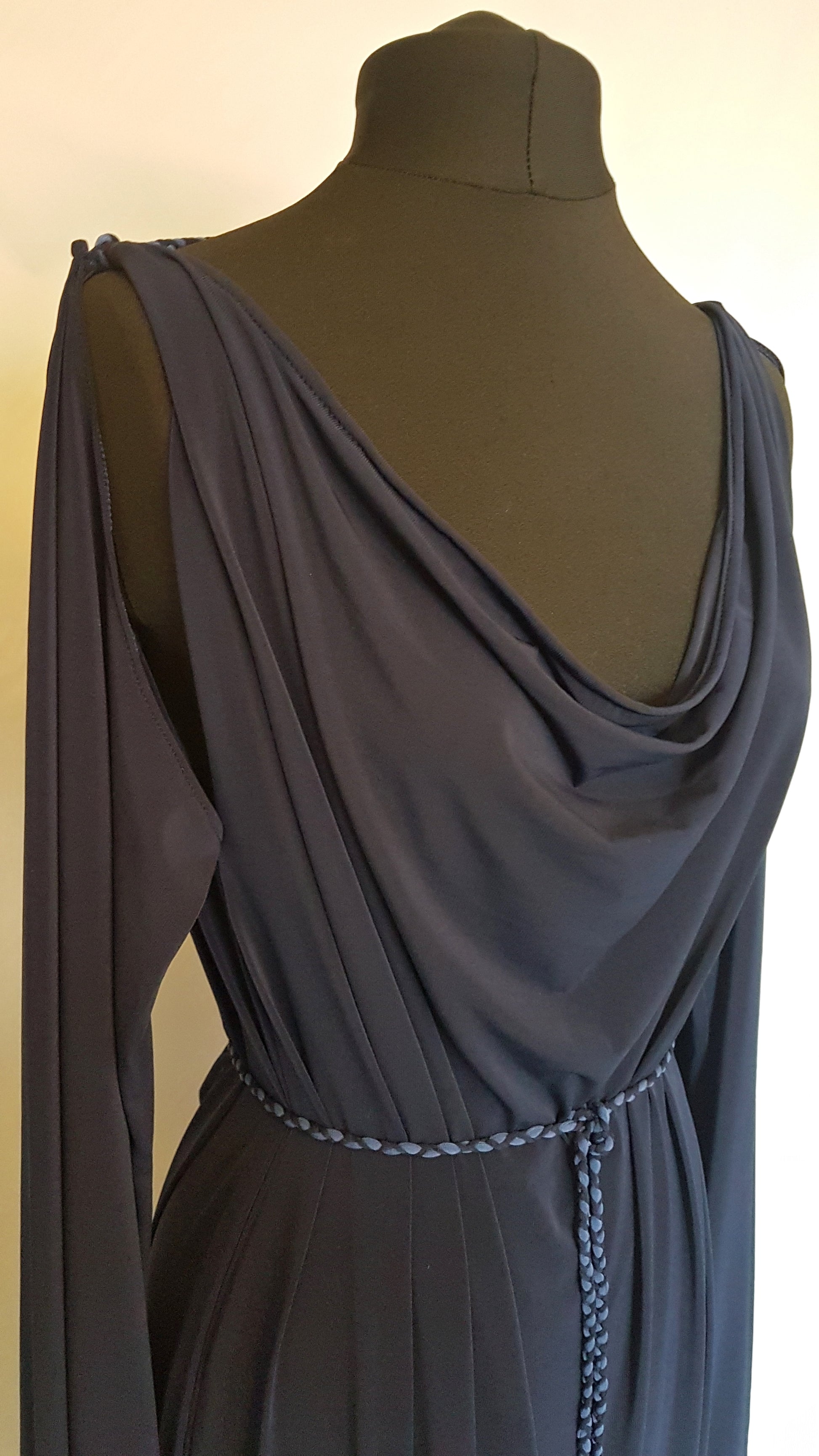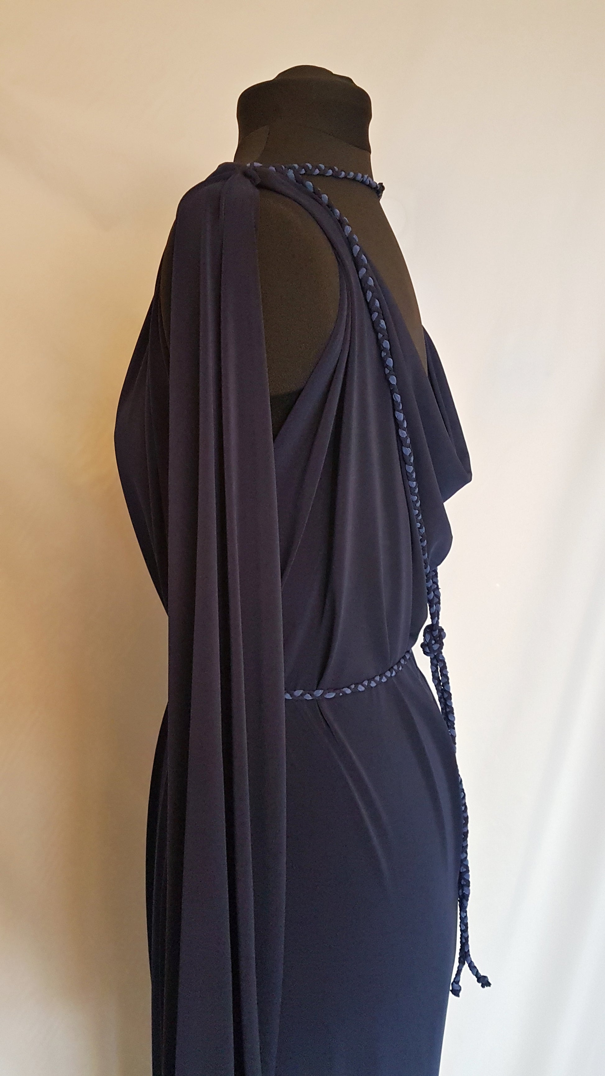This stunning floor length Grecian style drape dress is made from a soft stretch fabric which hangs perfectly. The design has a number of unique and elegant design features, including: