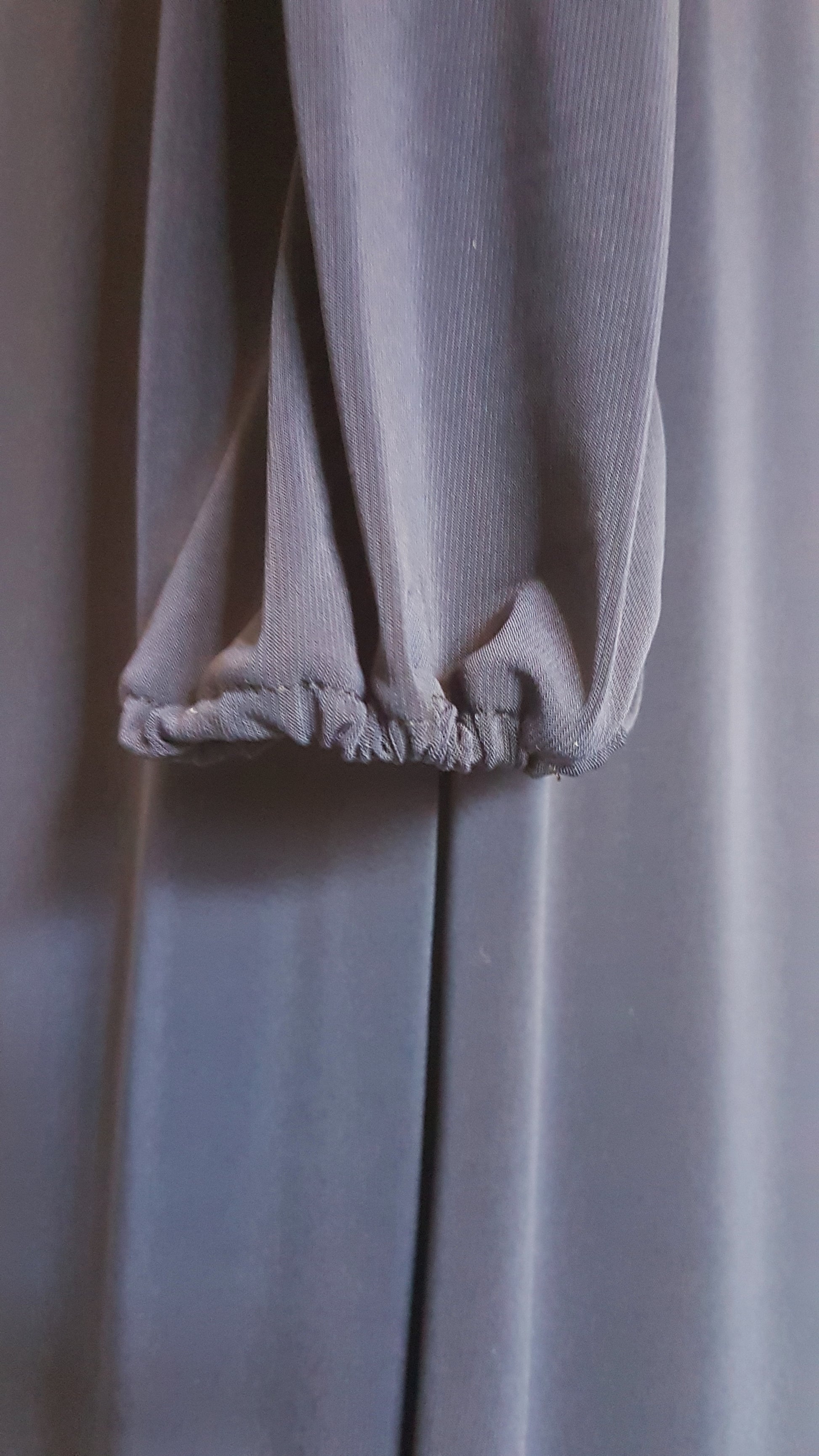 Full-length sleeve, elasticated cuffs and cold shoulder;