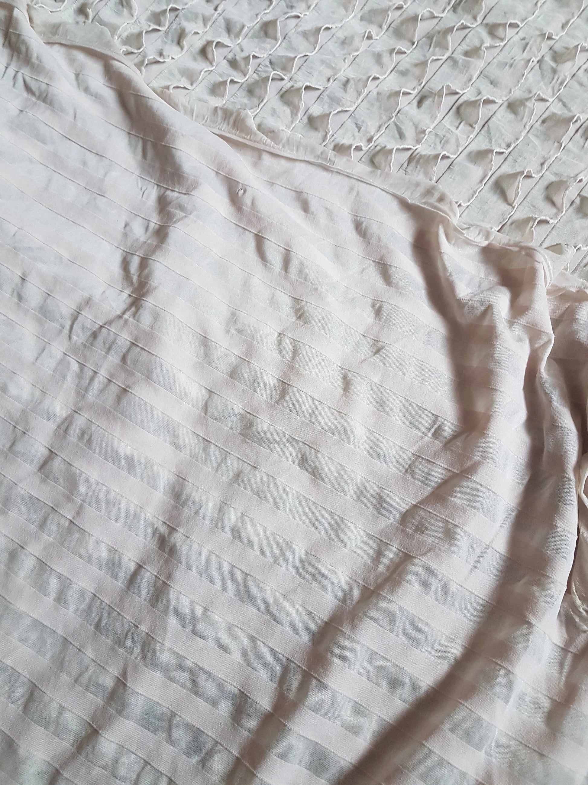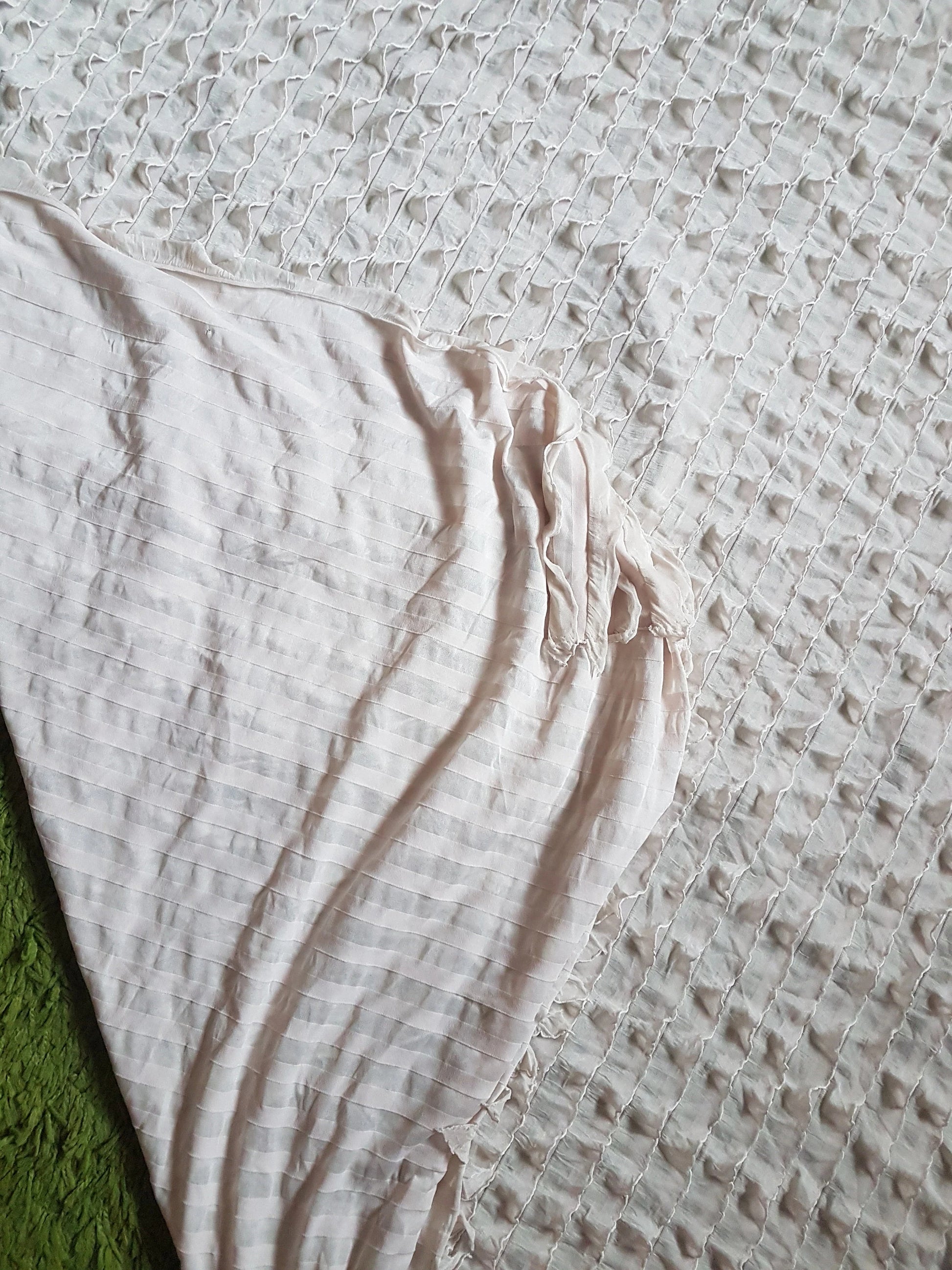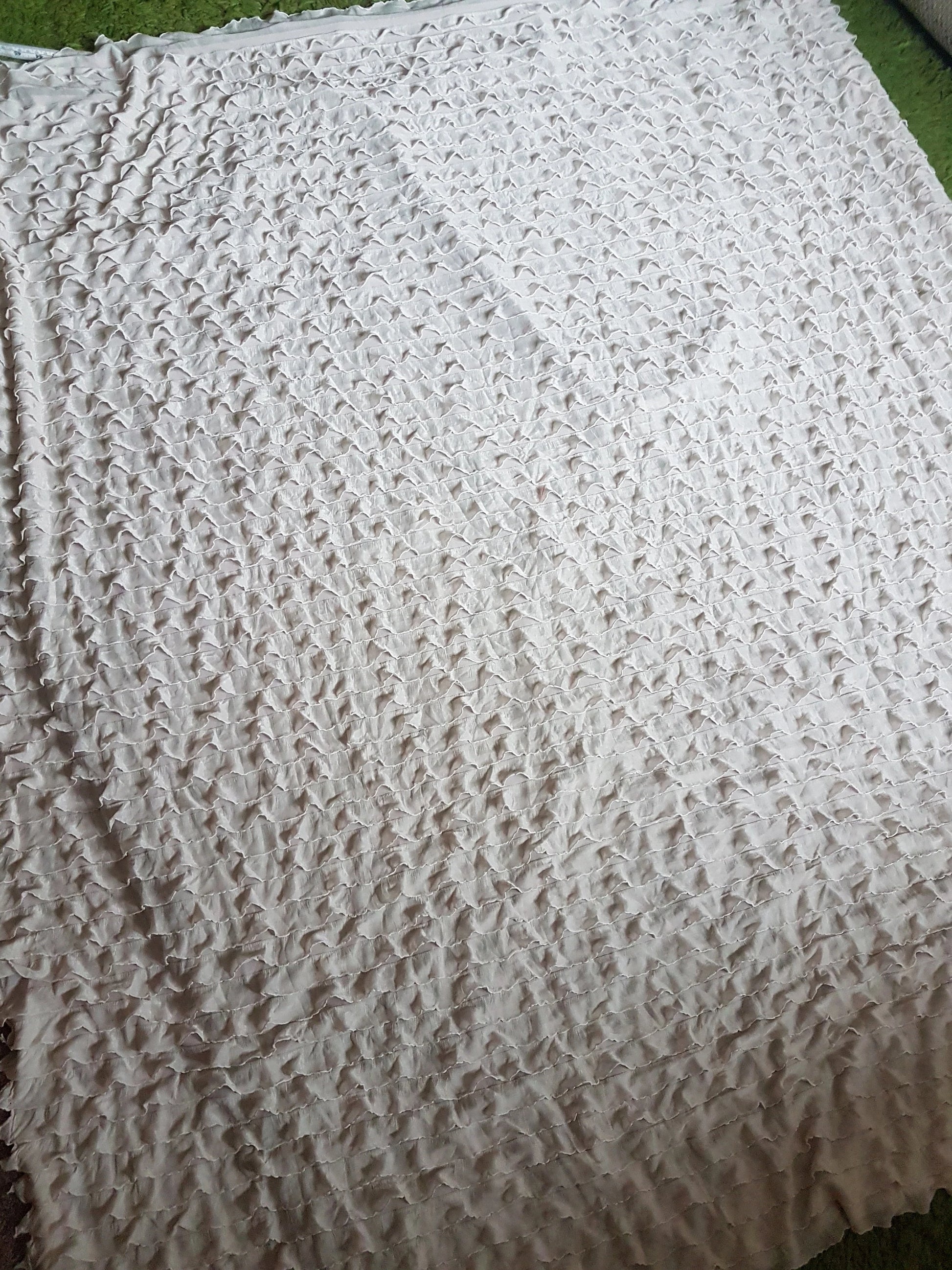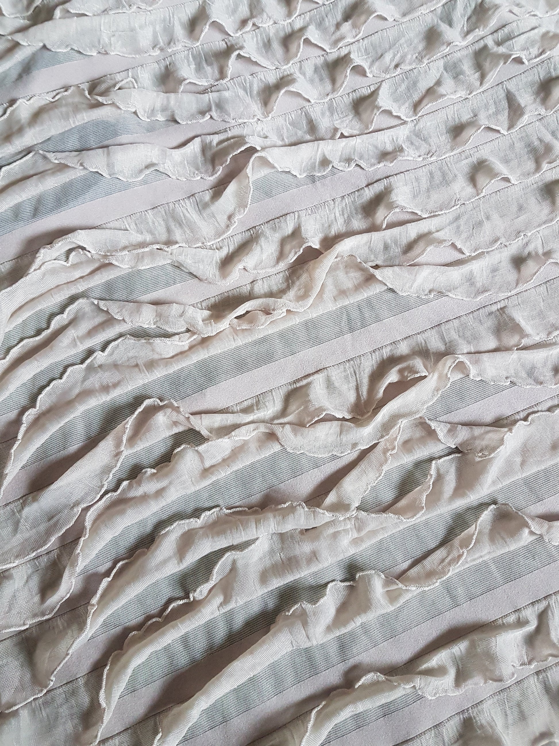 This is a fabulous nude flesh beige coloured knit fabric covered in frills. I have used it to make several full length dresses and it's a gorgeous light weight fabric, ideal for dressmaking, crafting and all sorts of other projects.