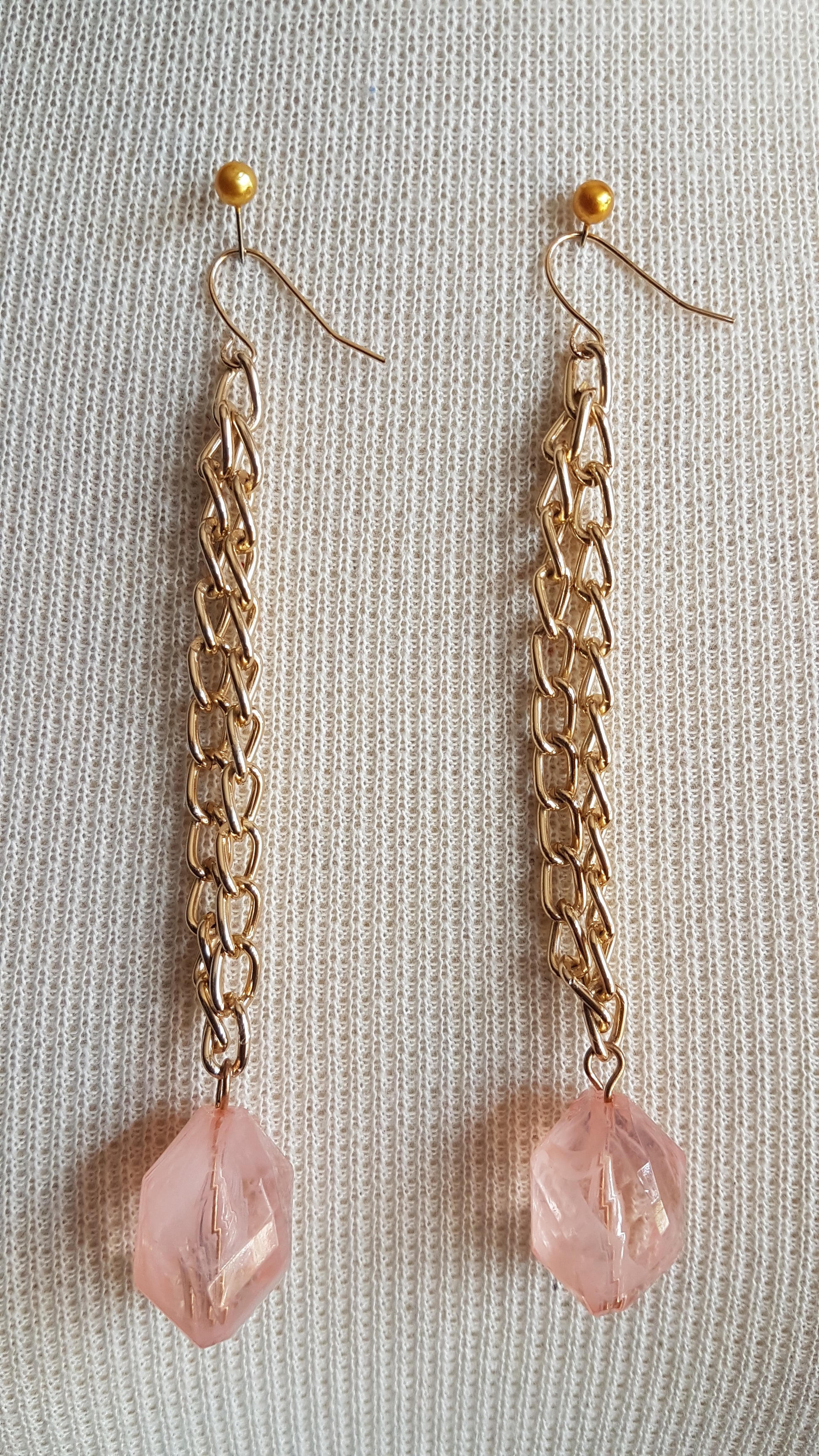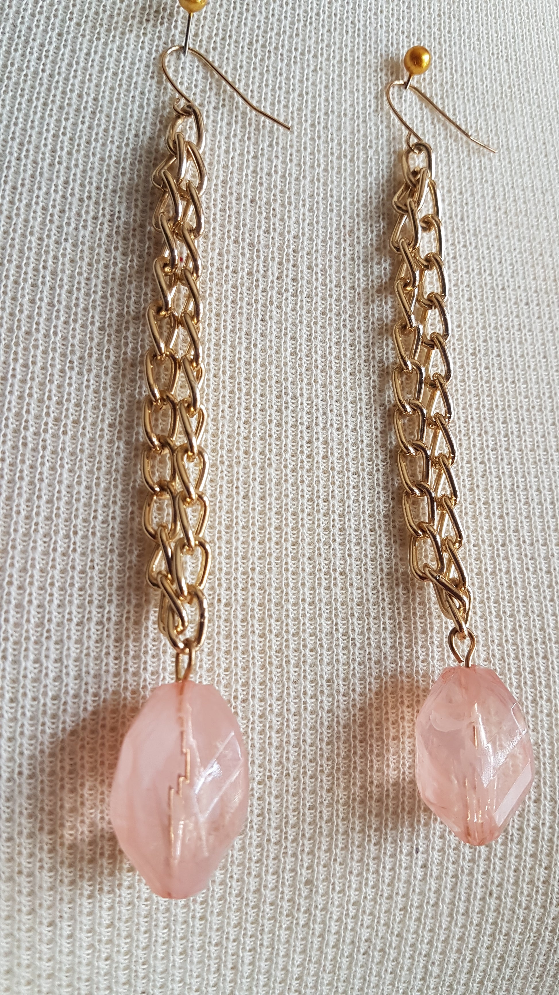 Pink And Gold Extra Long Dangle Earrings