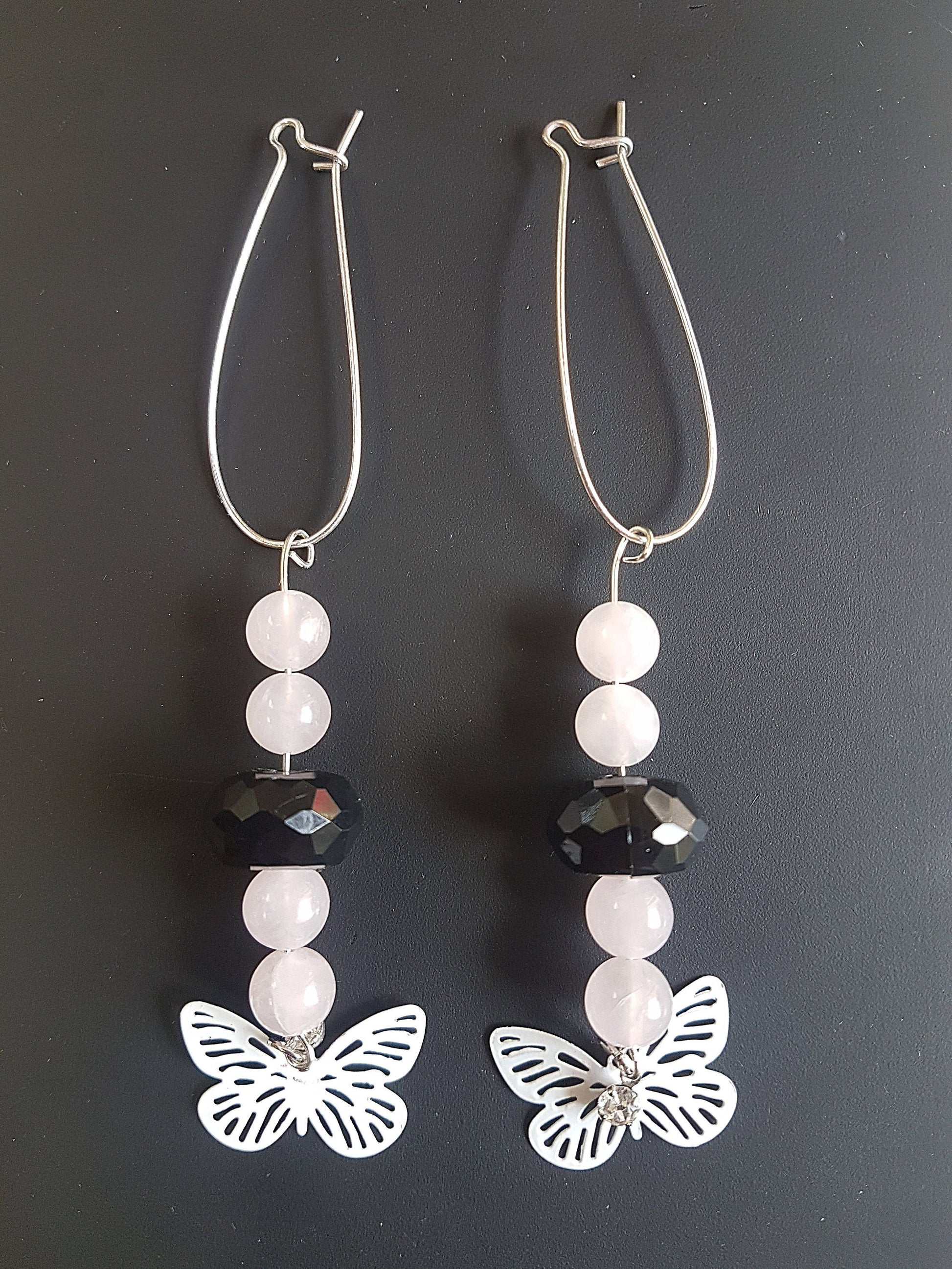 This one has a length approx 4 inches and uses a 'kidney ear wire'.