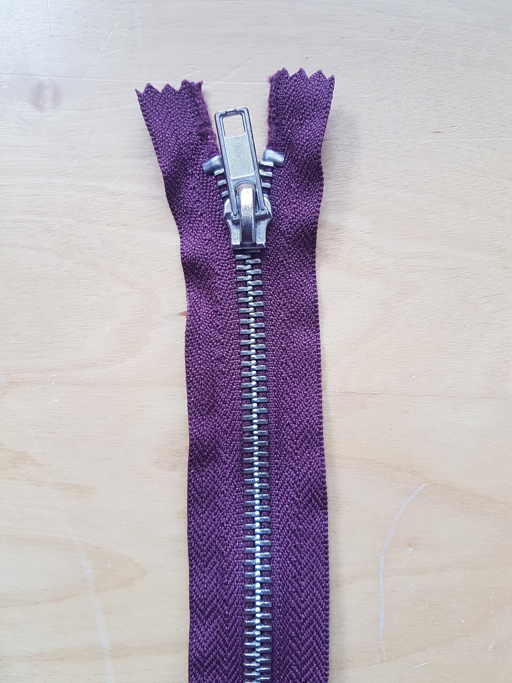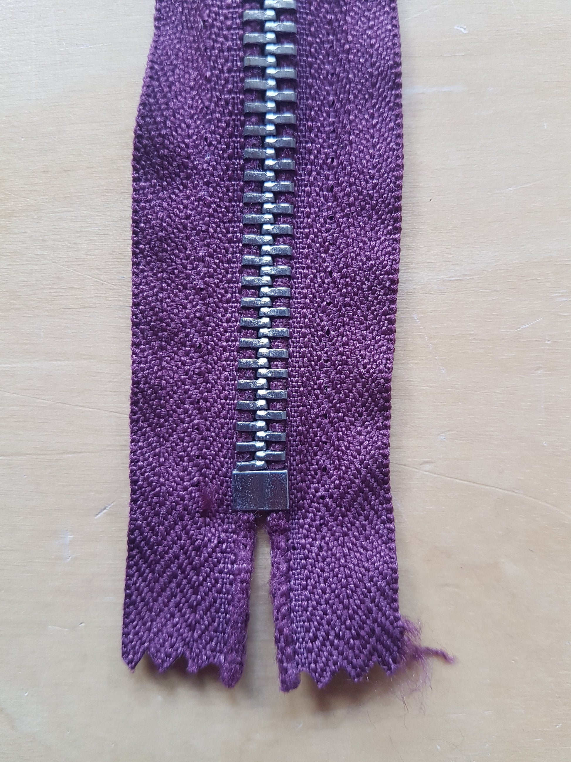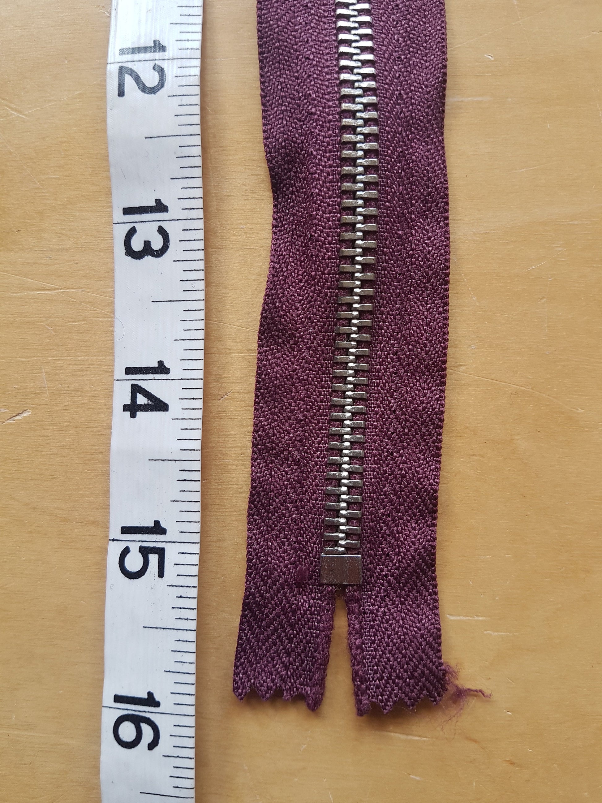 Plum / Deep Burgundy / Red silver metal zip chunky heavy 15 inch closed end