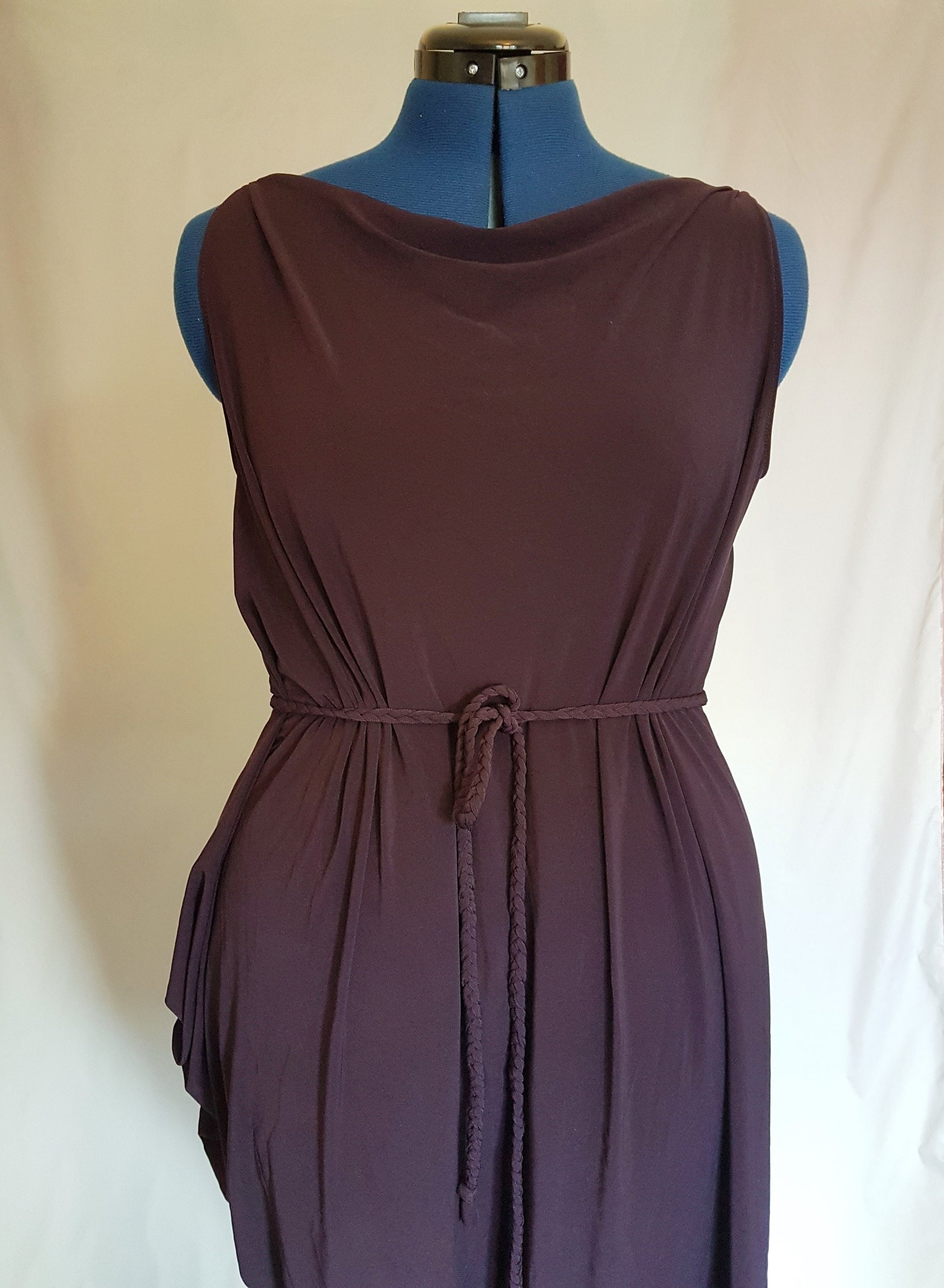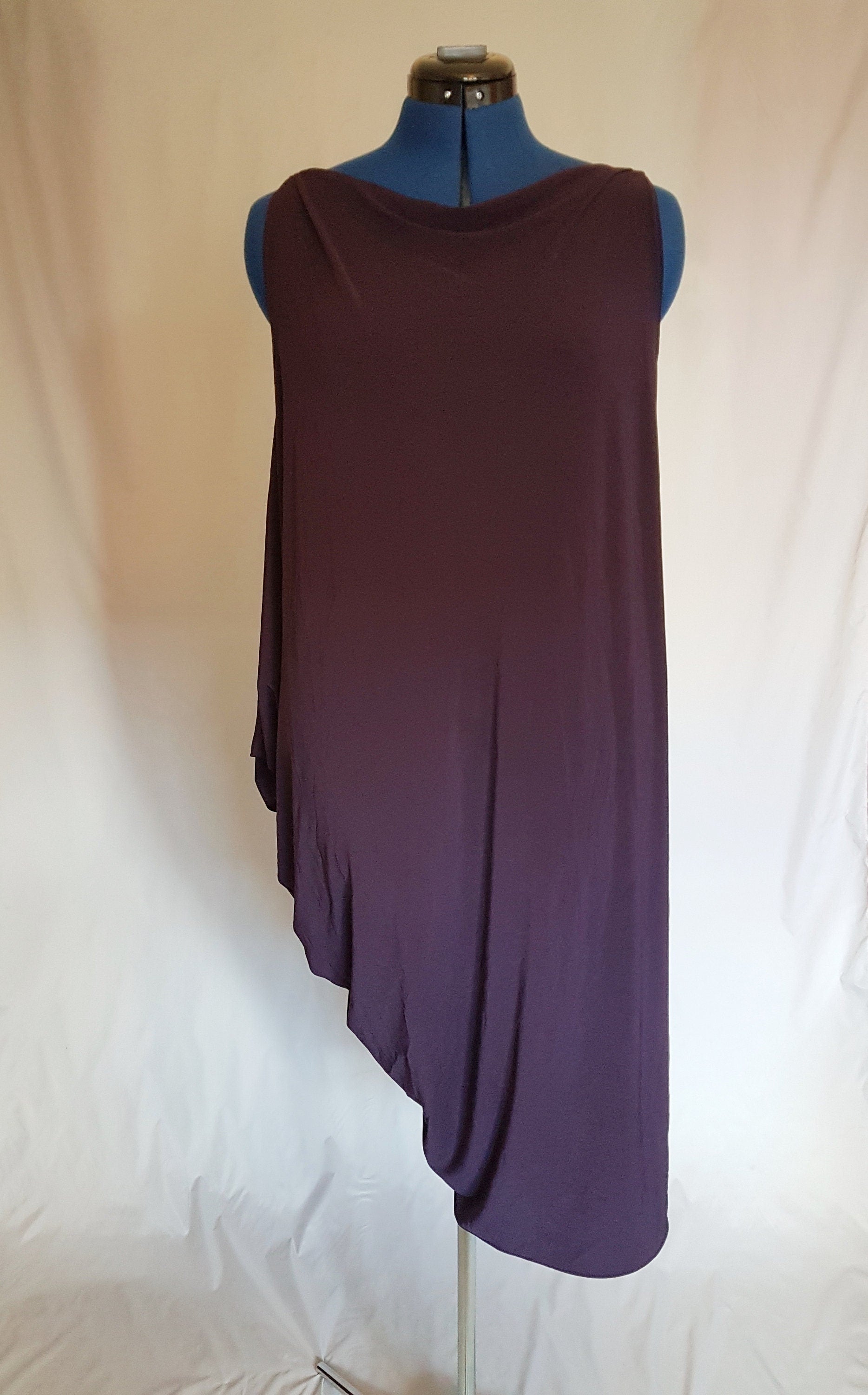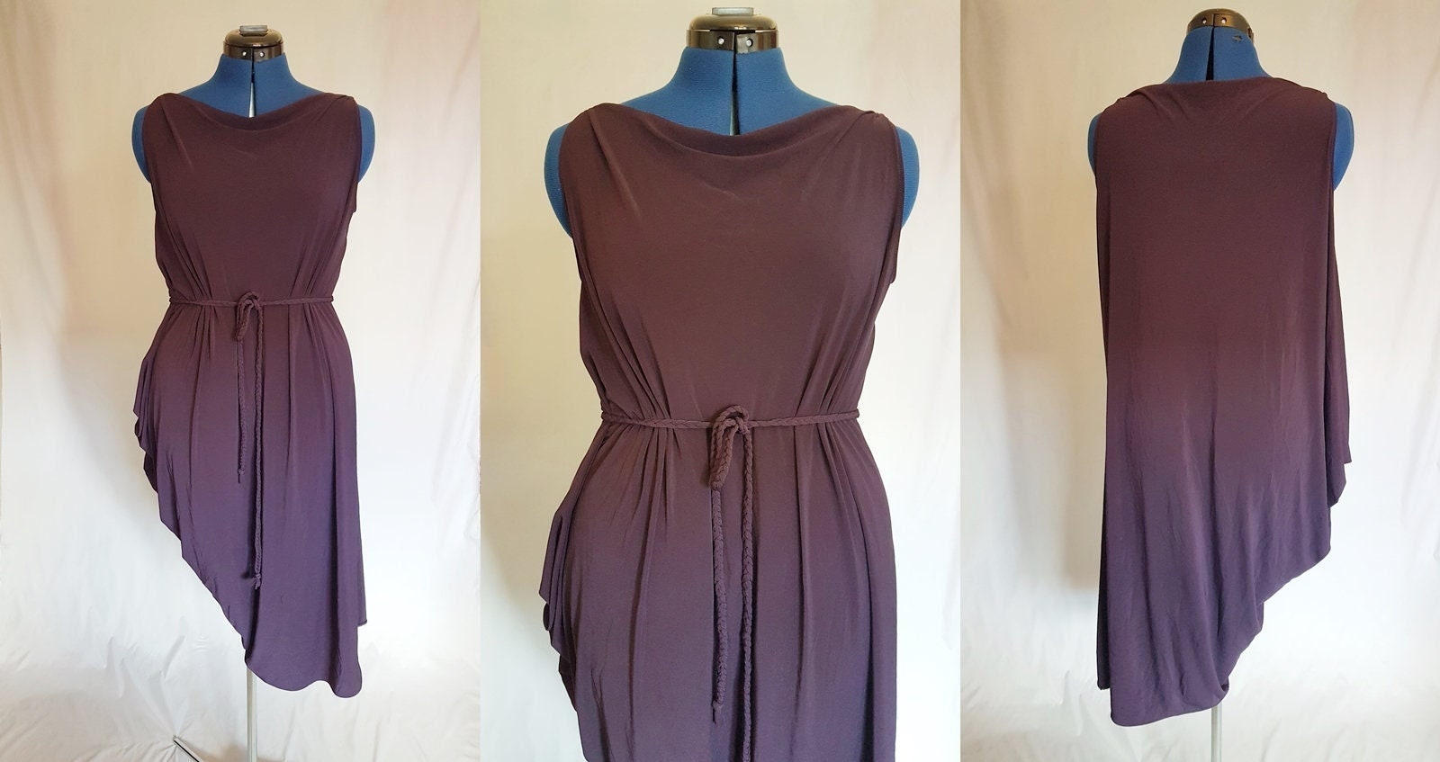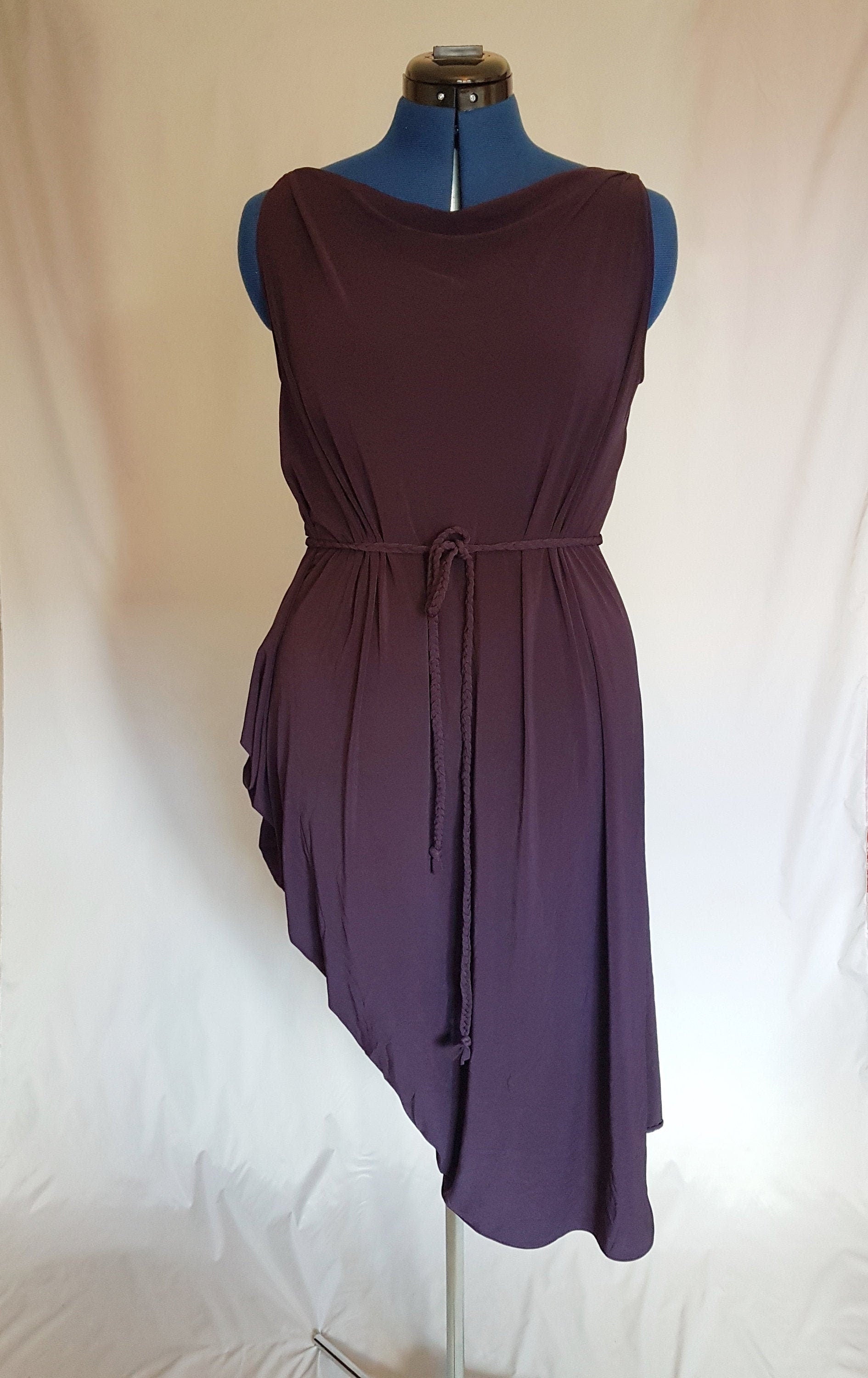 This is a gorgeous one of a kind asymmetric drape dress. It has a simple design, flattering on any bodyshape.